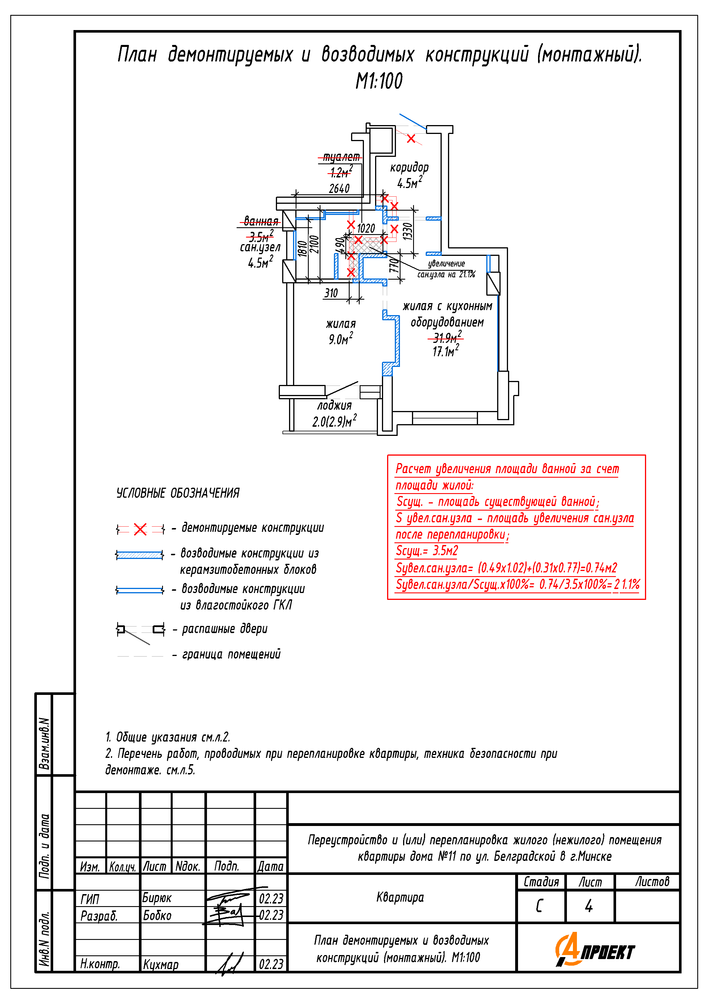 Перепланировка квартиры по ул. Белградская, 11 в ЖК «Минск Мир»