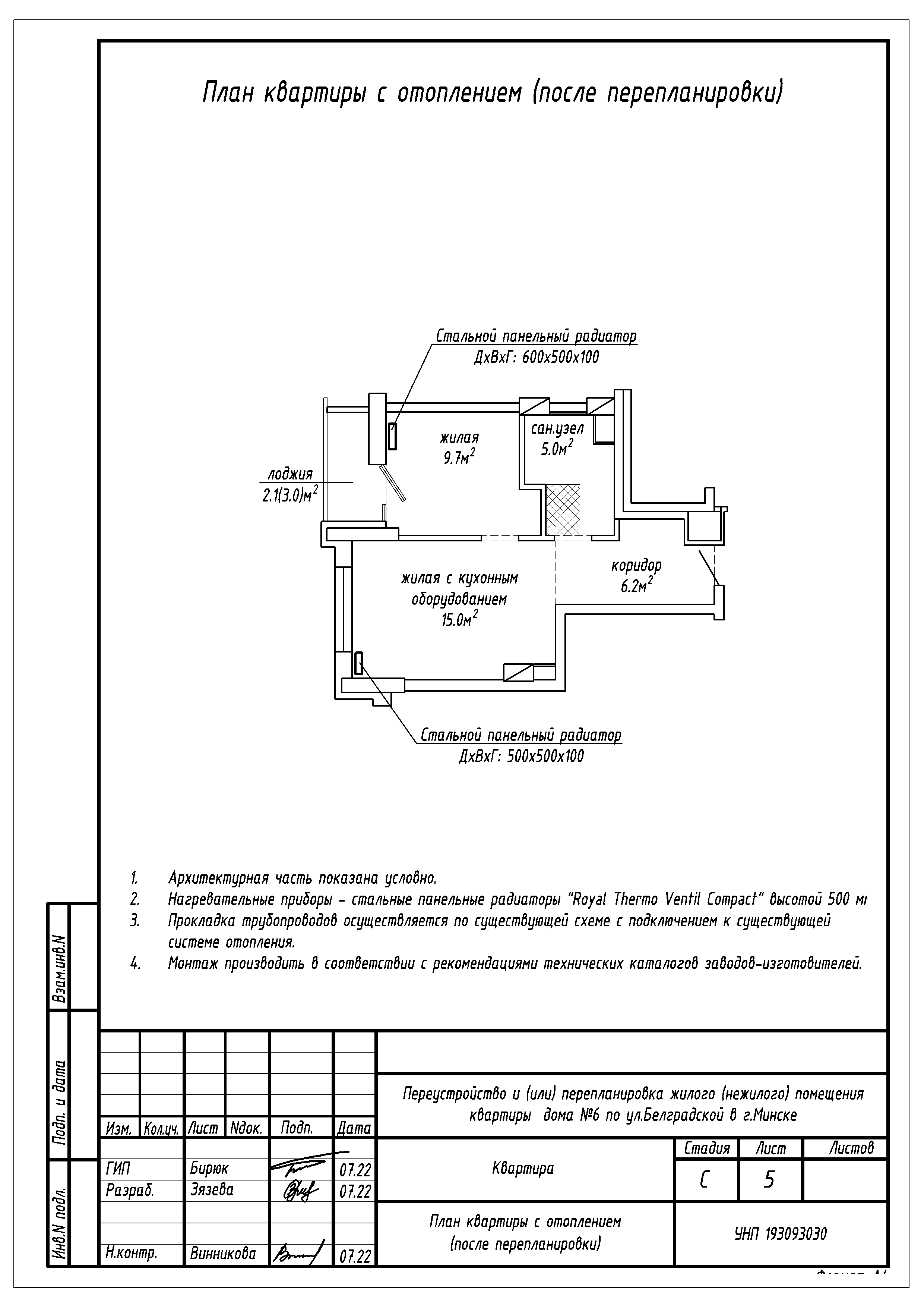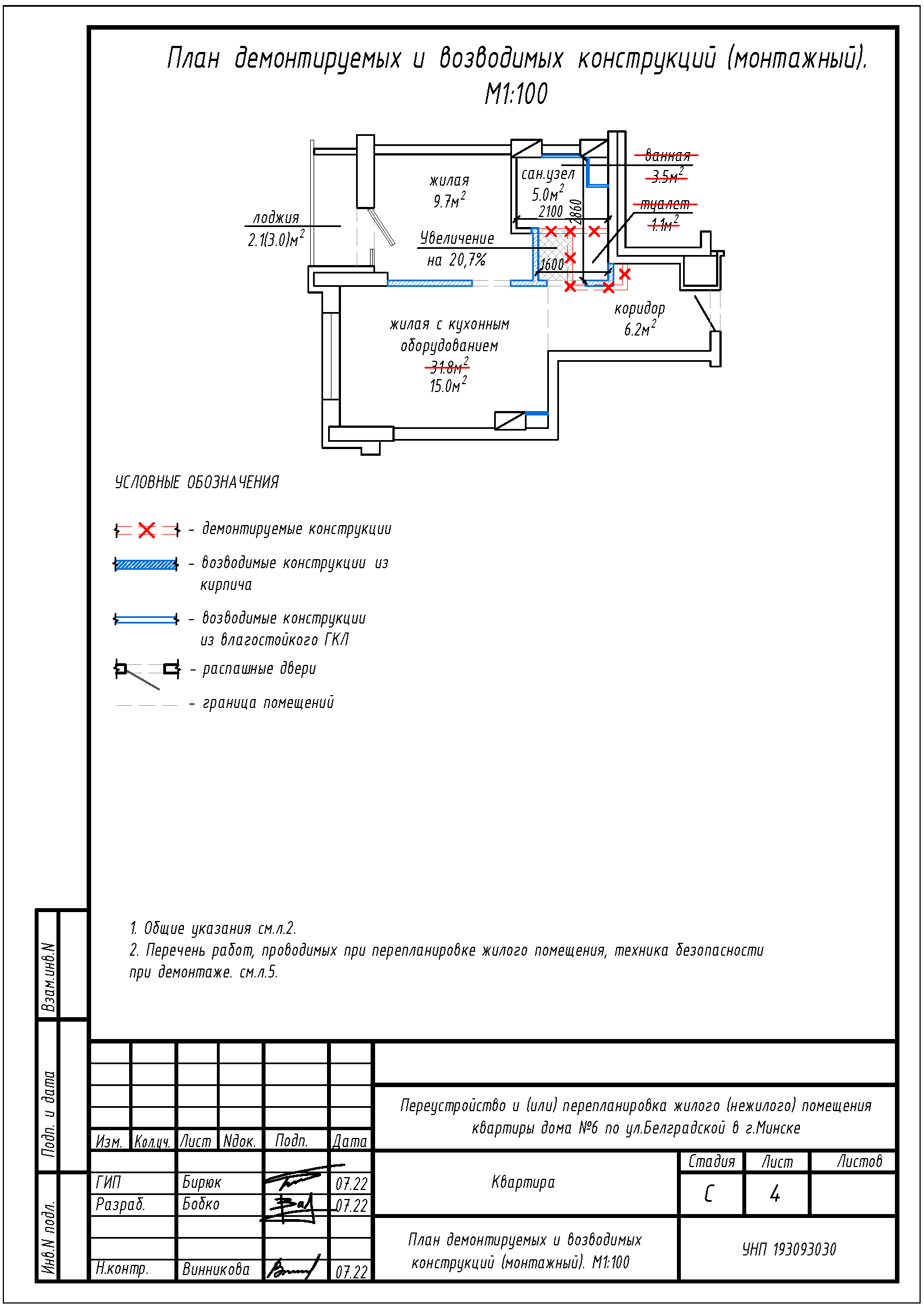 Перепланировка квартиры по ул. Белградская, 6 в ЖК «Минск Мир»