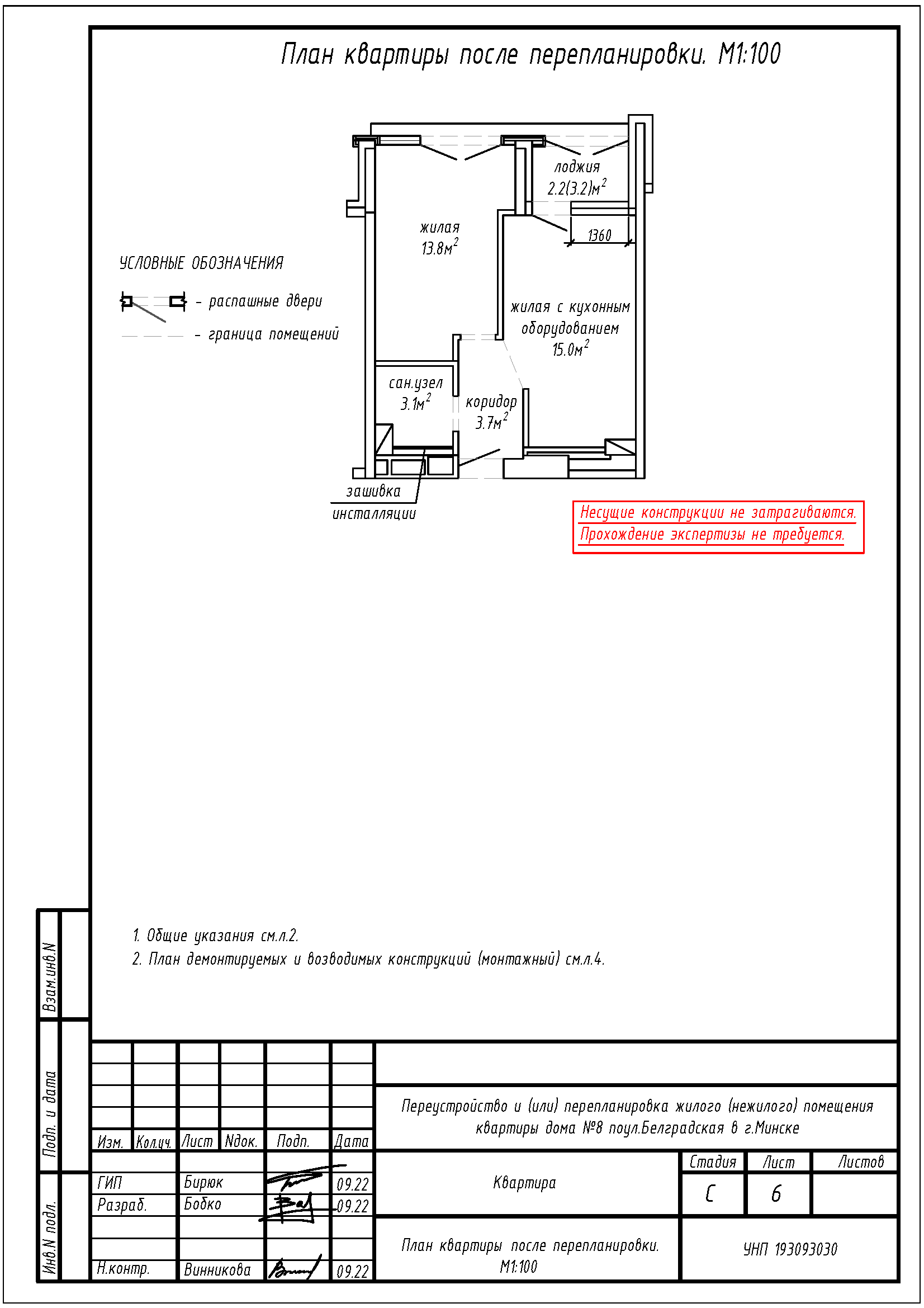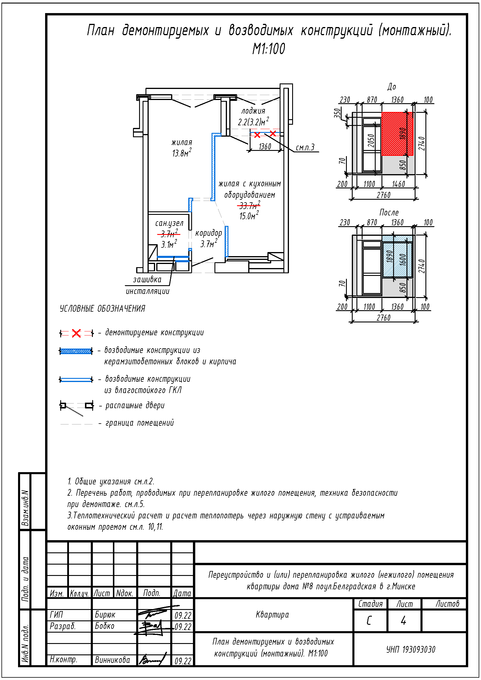 Перепланировка квартиры по ул. Белградская, 8 в ЖК «Минск Мир»