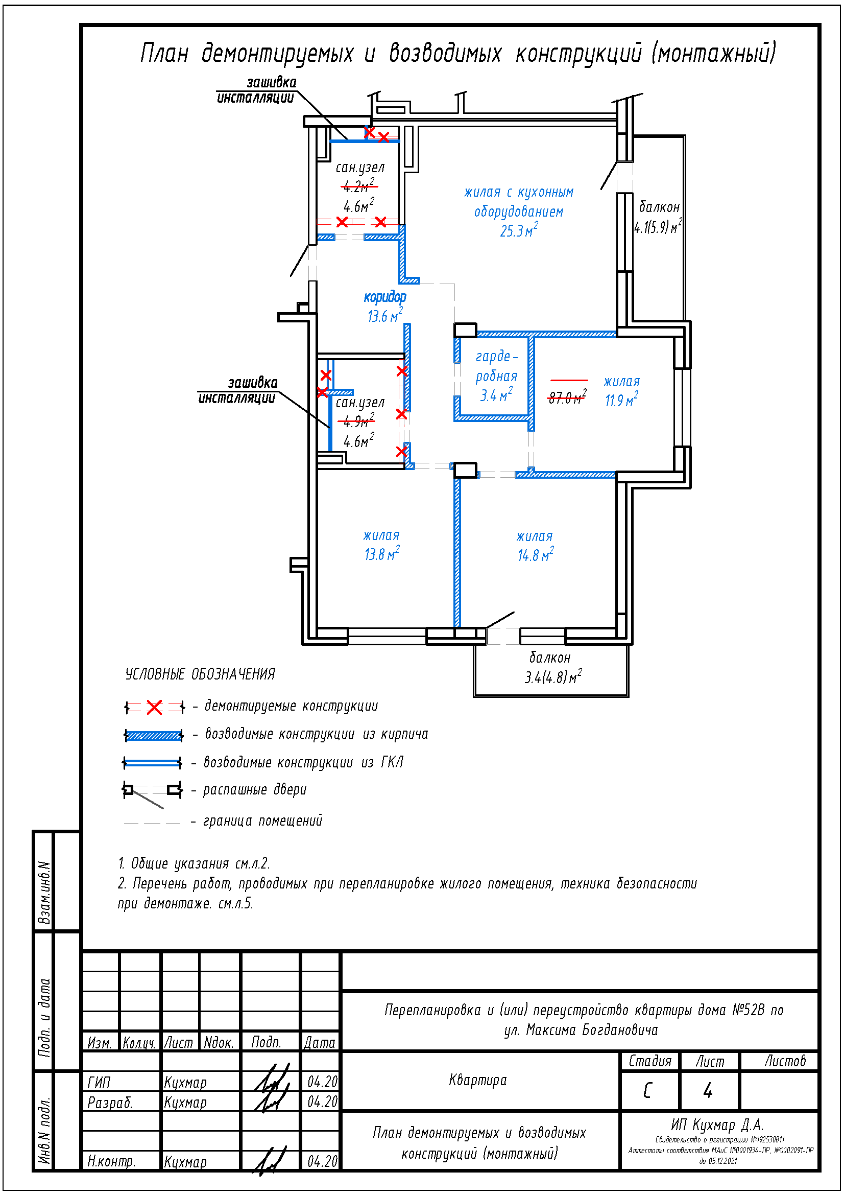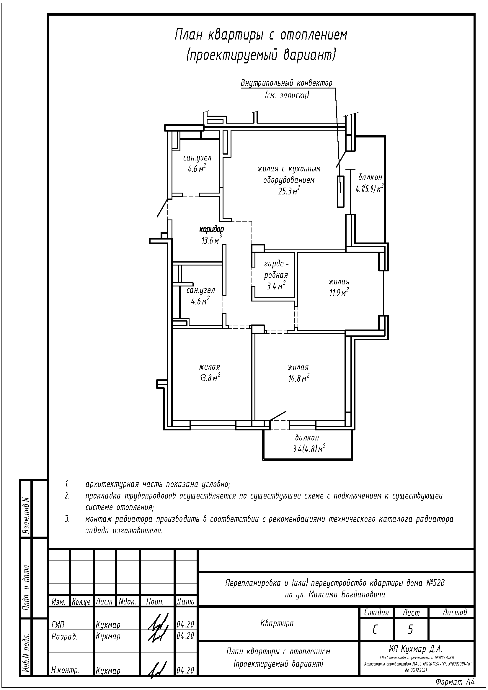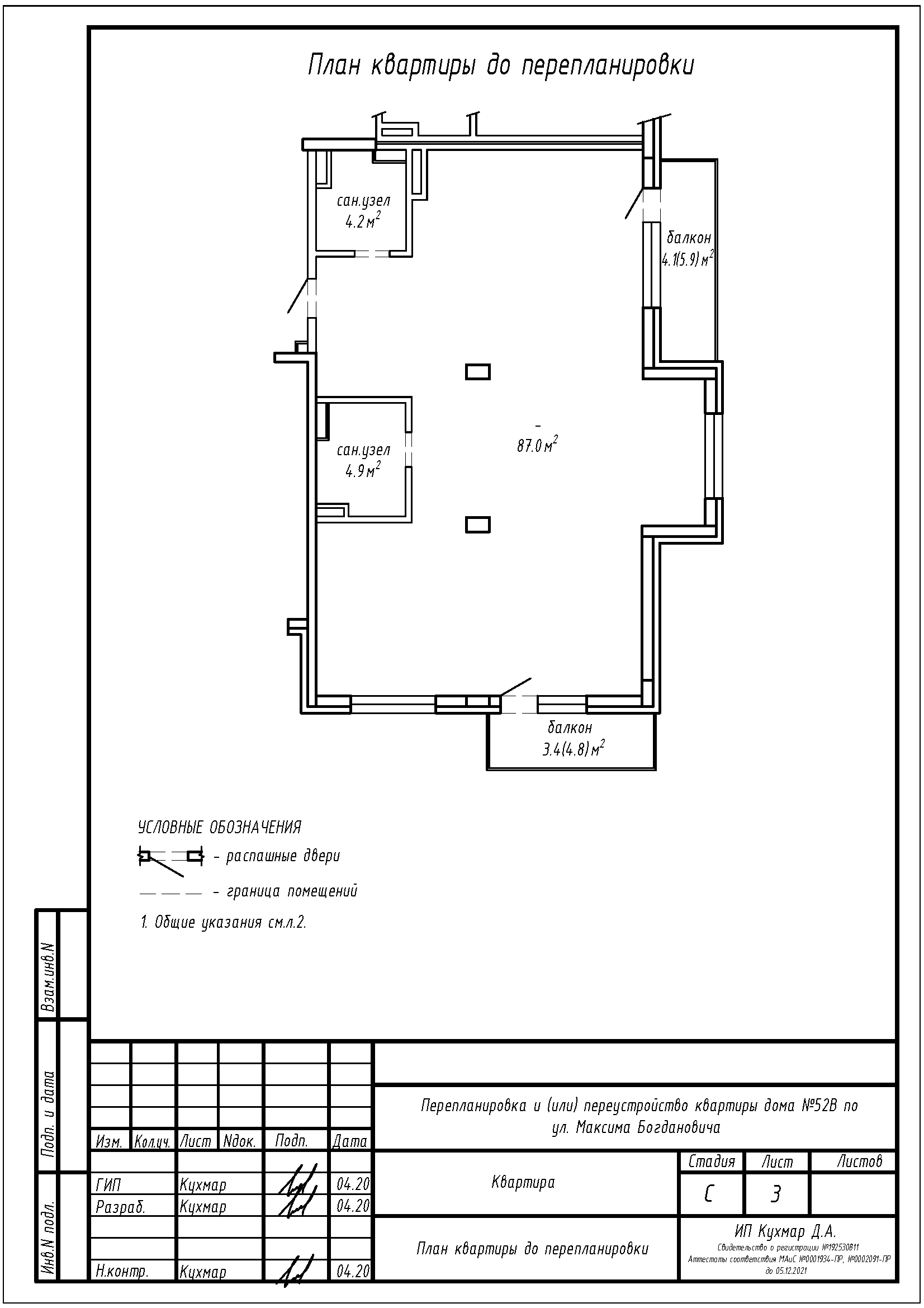 Перепланировка квартиры по ул. Максима Богдановича, 52Б в ЖК «Престижино»