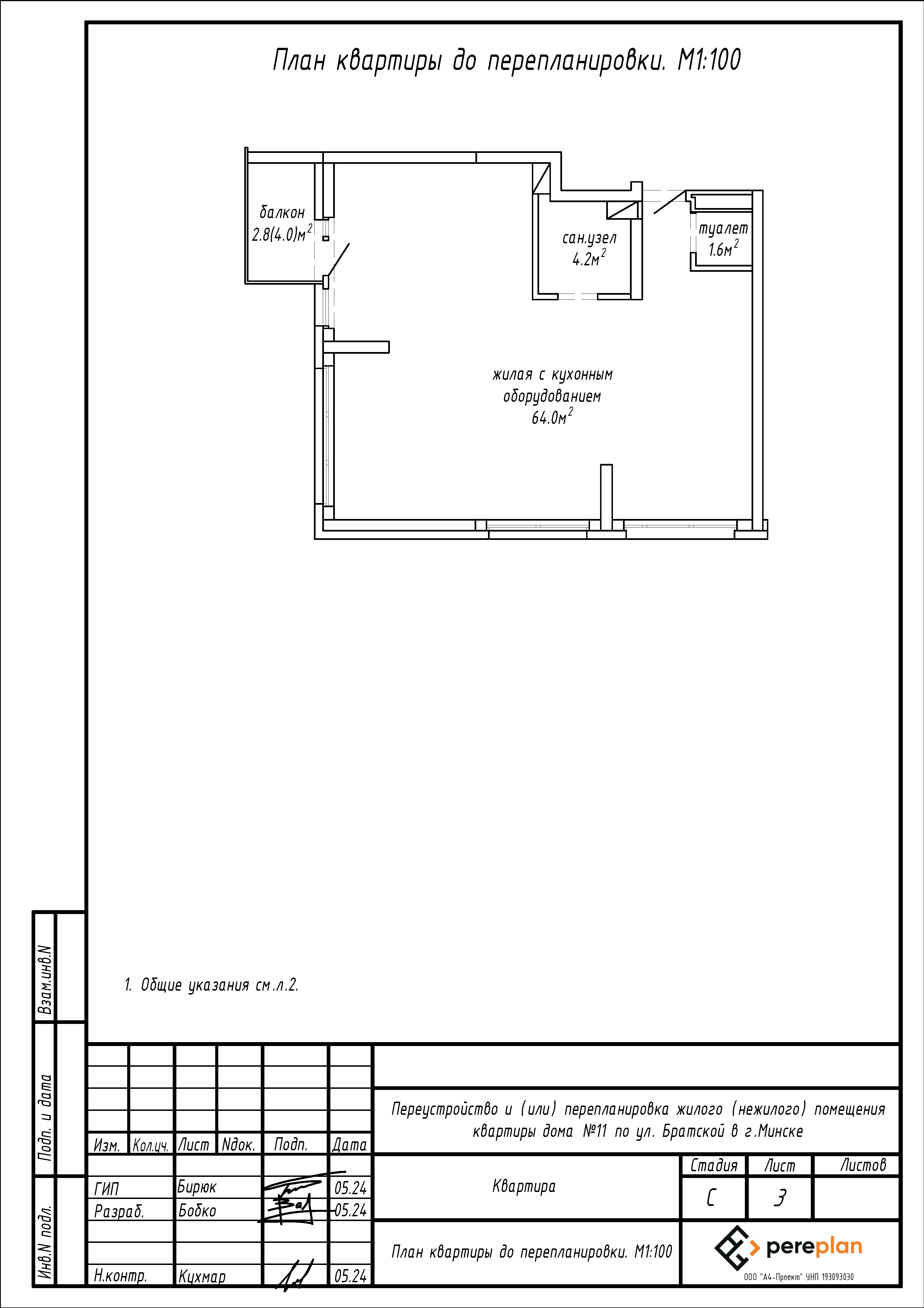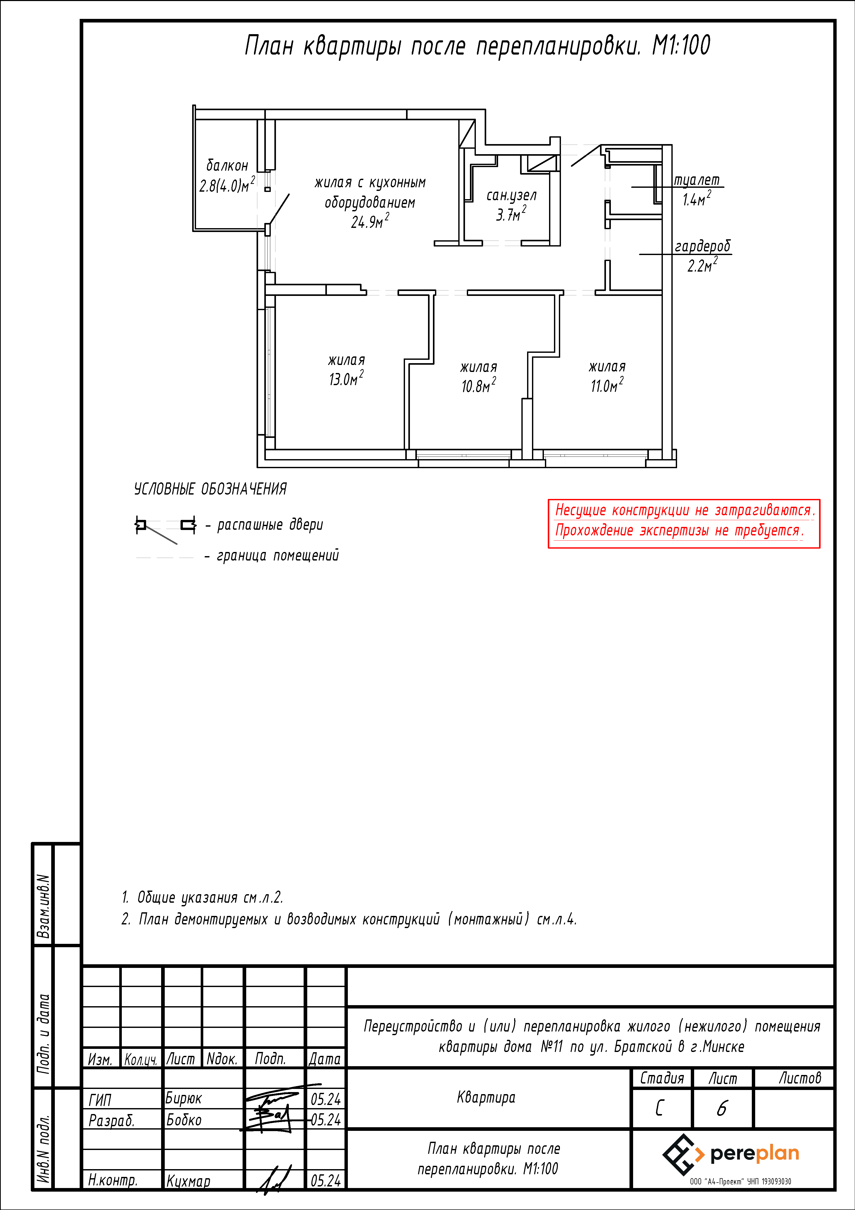 Перепланировка квартиры по ул. Братская, 11 в ЖК «Минск Мир»