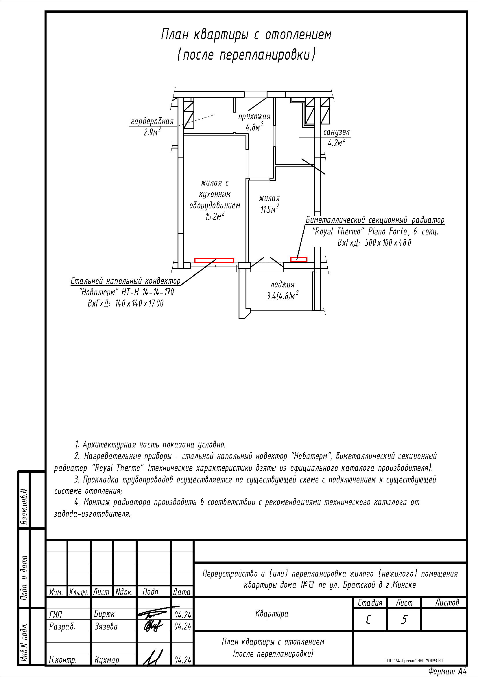 - Перенос и замена отопительных приборов.