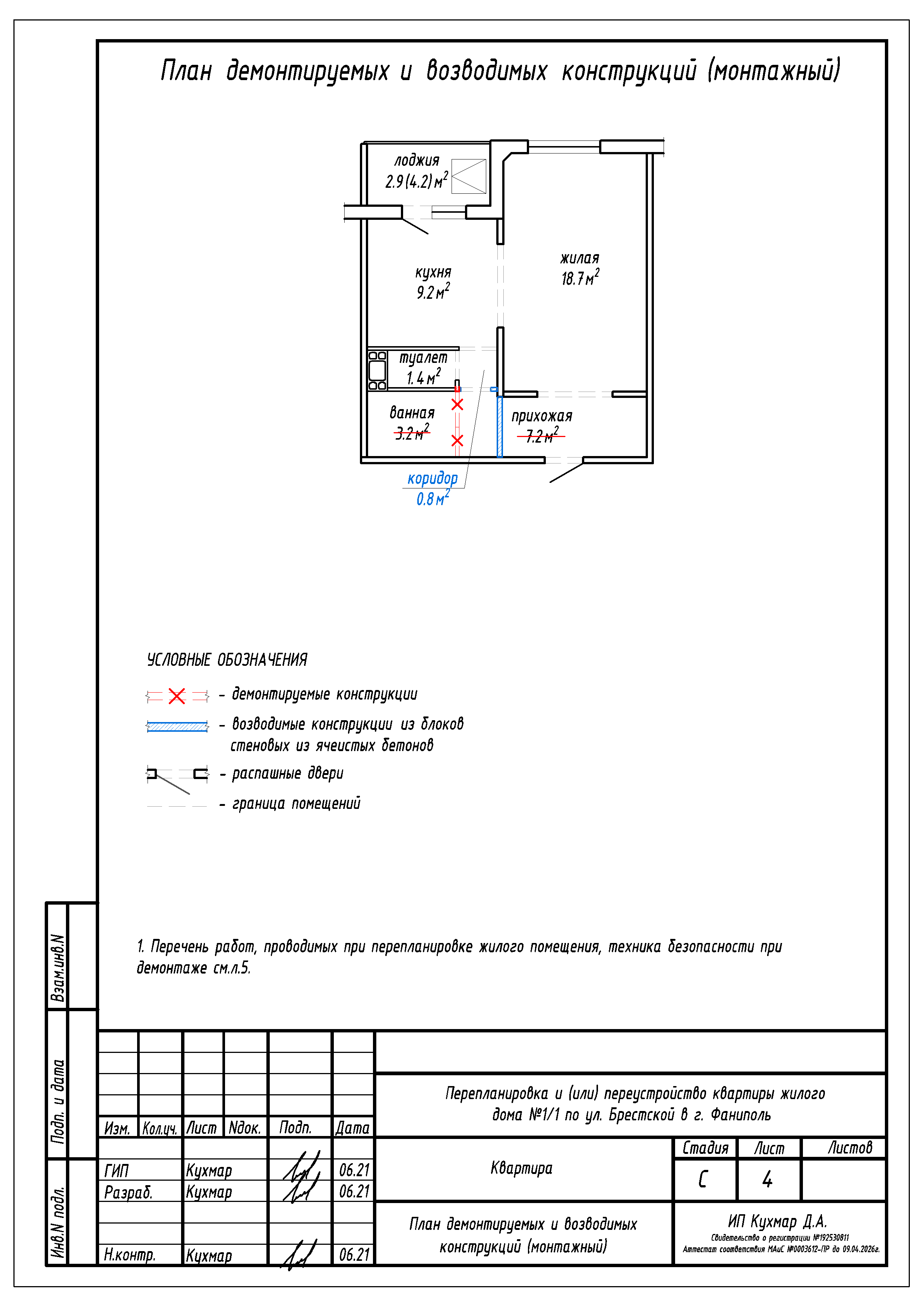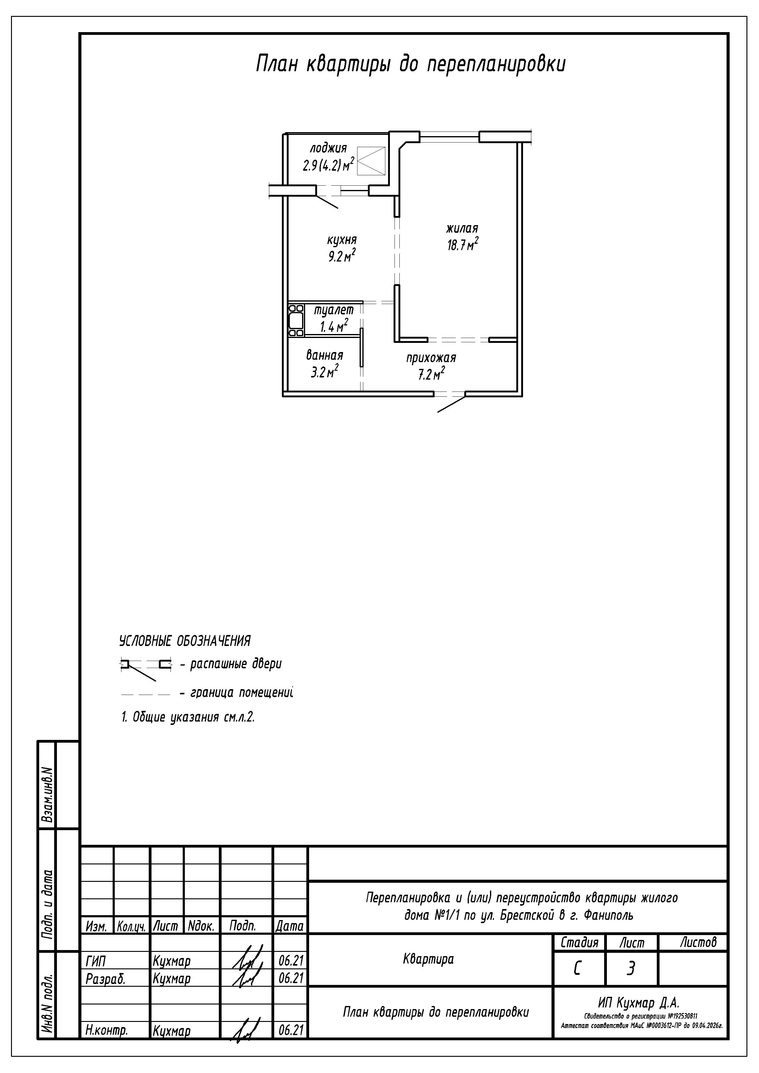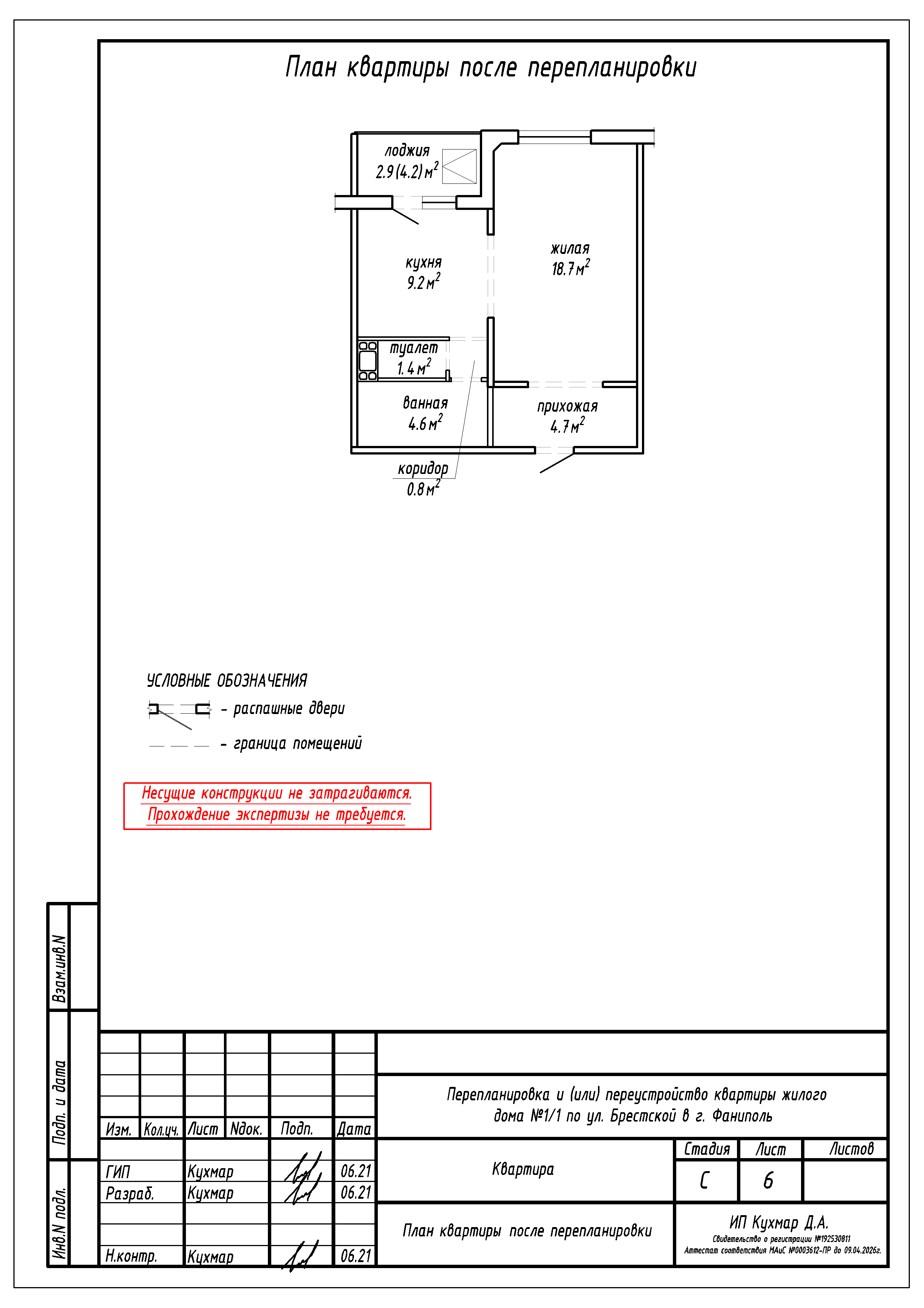 Перепланировка квартиры по ул. Брестская, 1 корпус 1 в г. Фаниполь