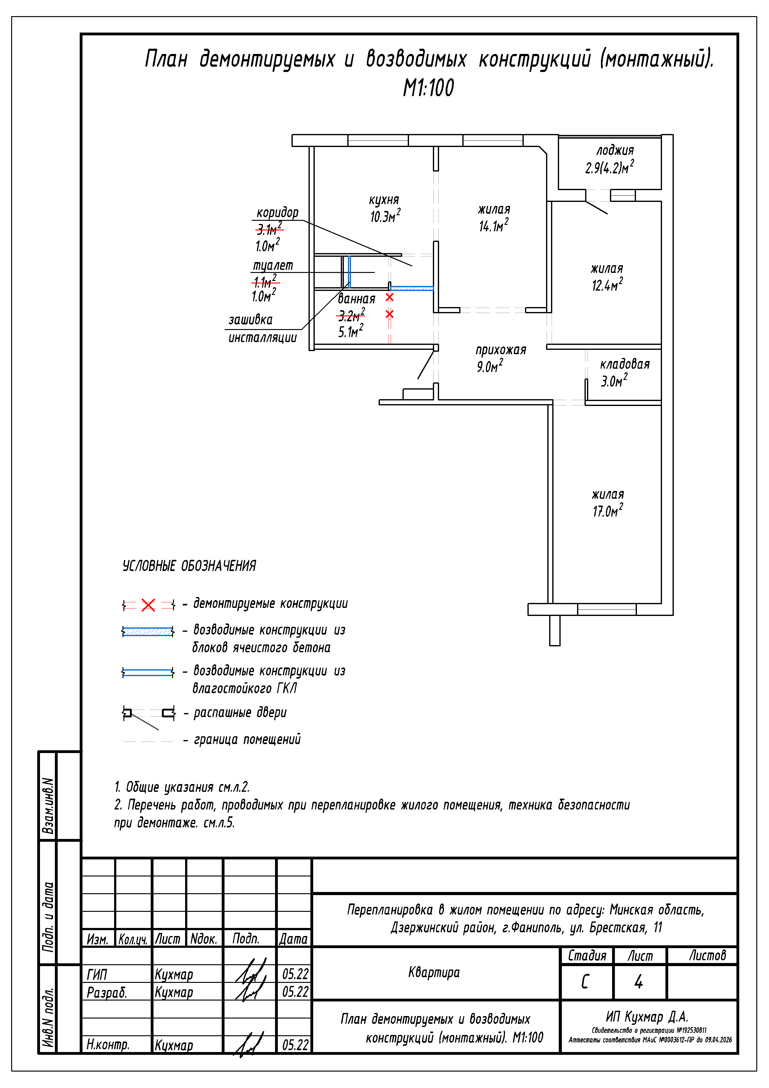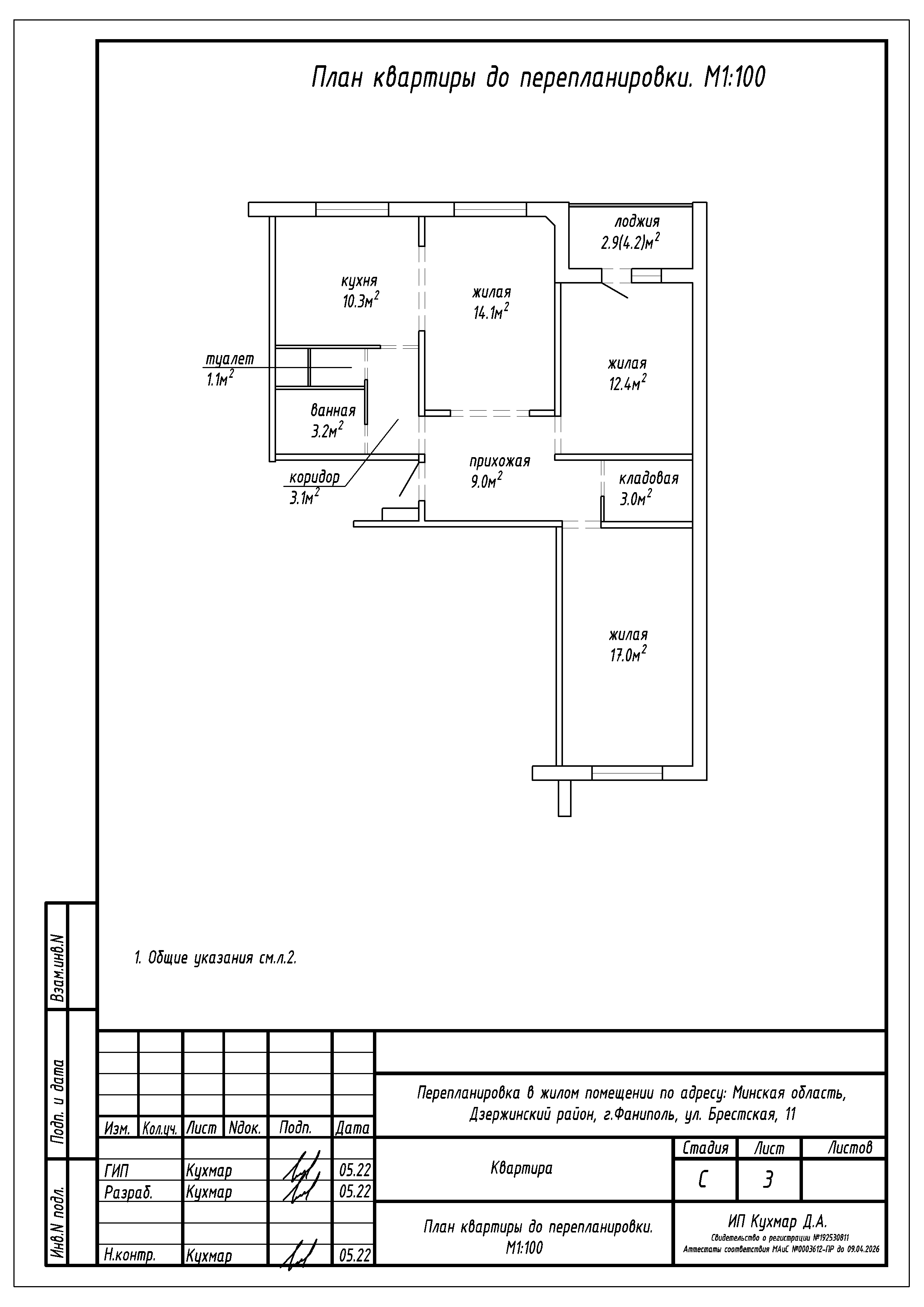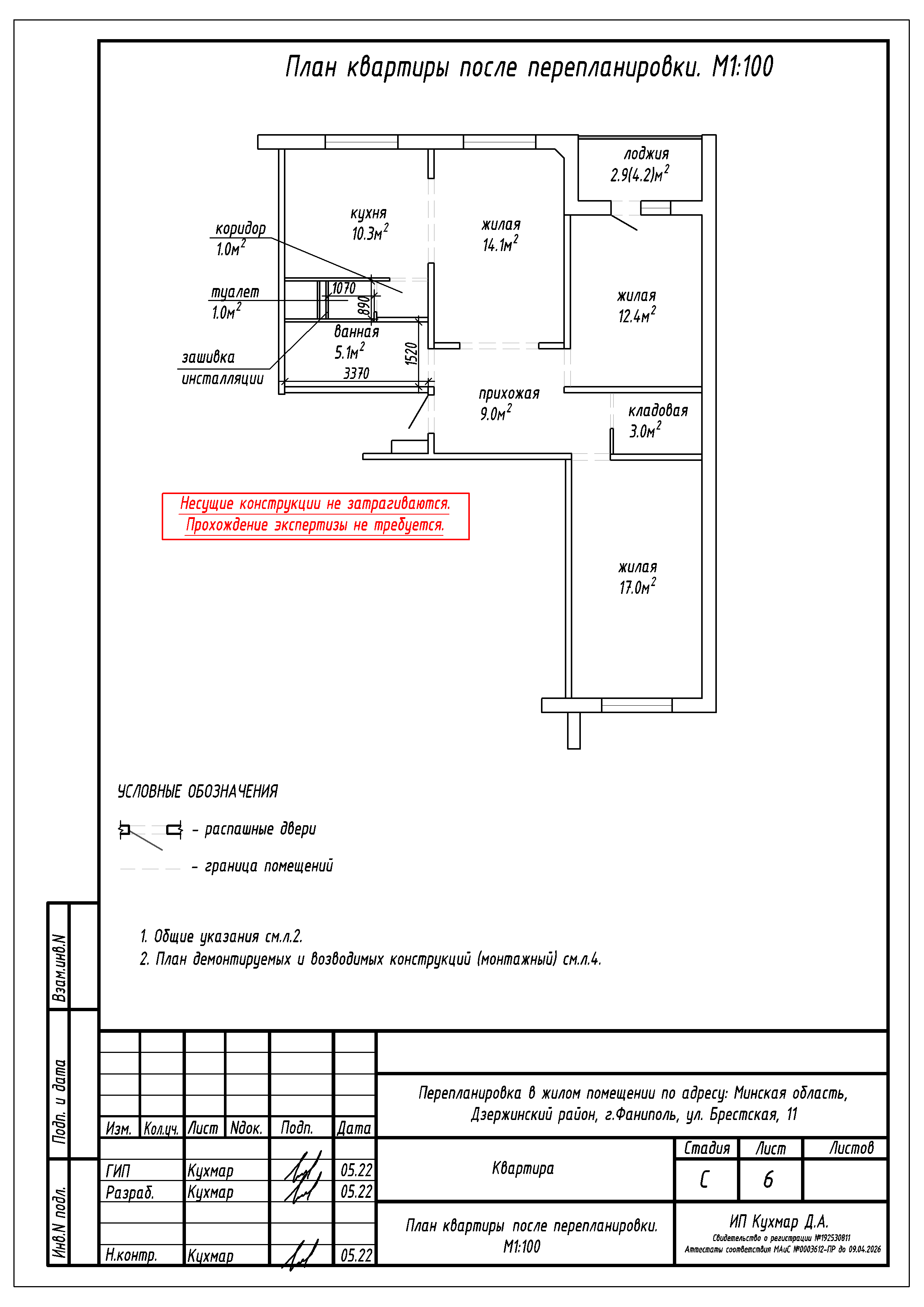 Перепланировка квартиры по ул. Брестская, 11 в г. Фаниполь
