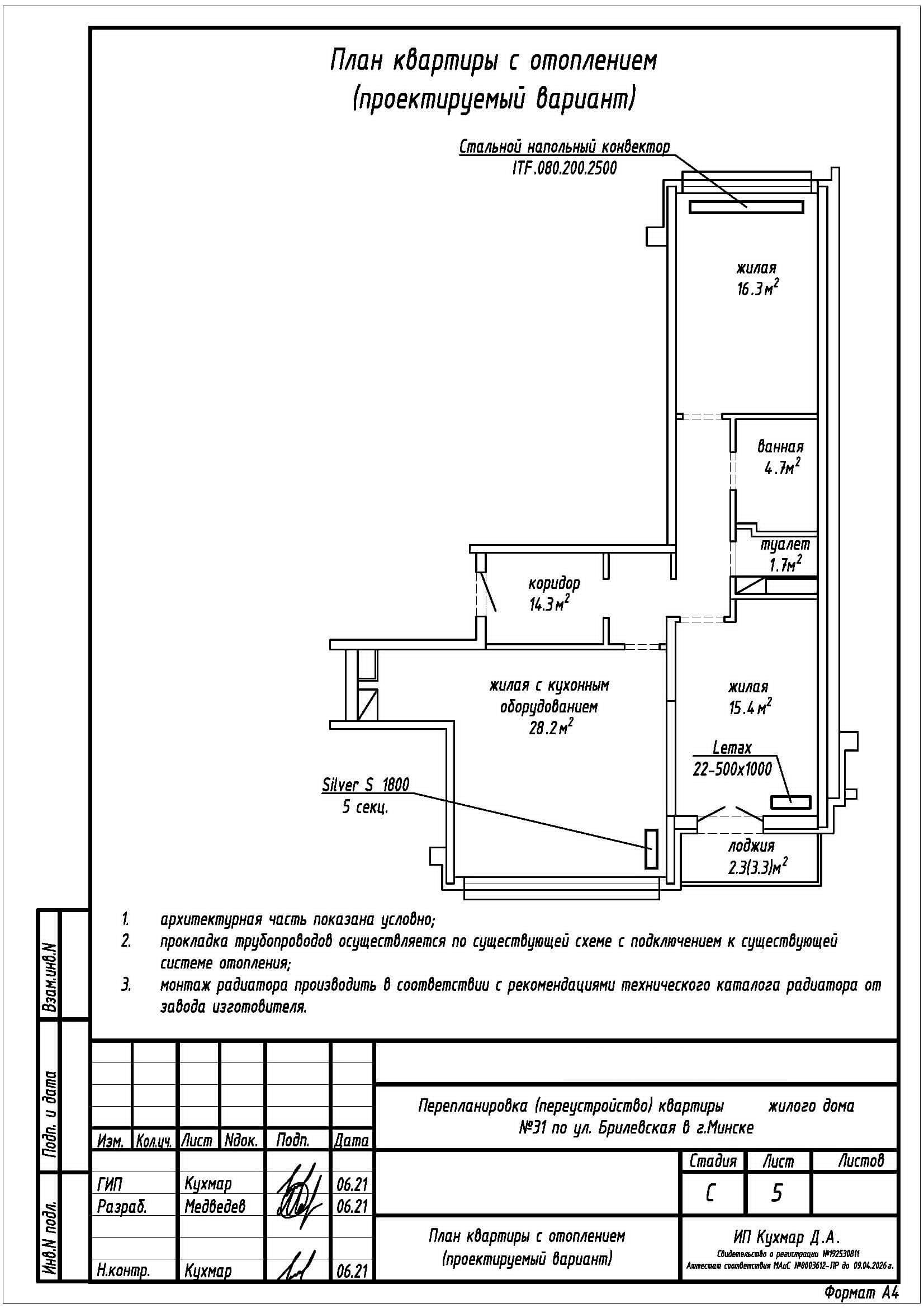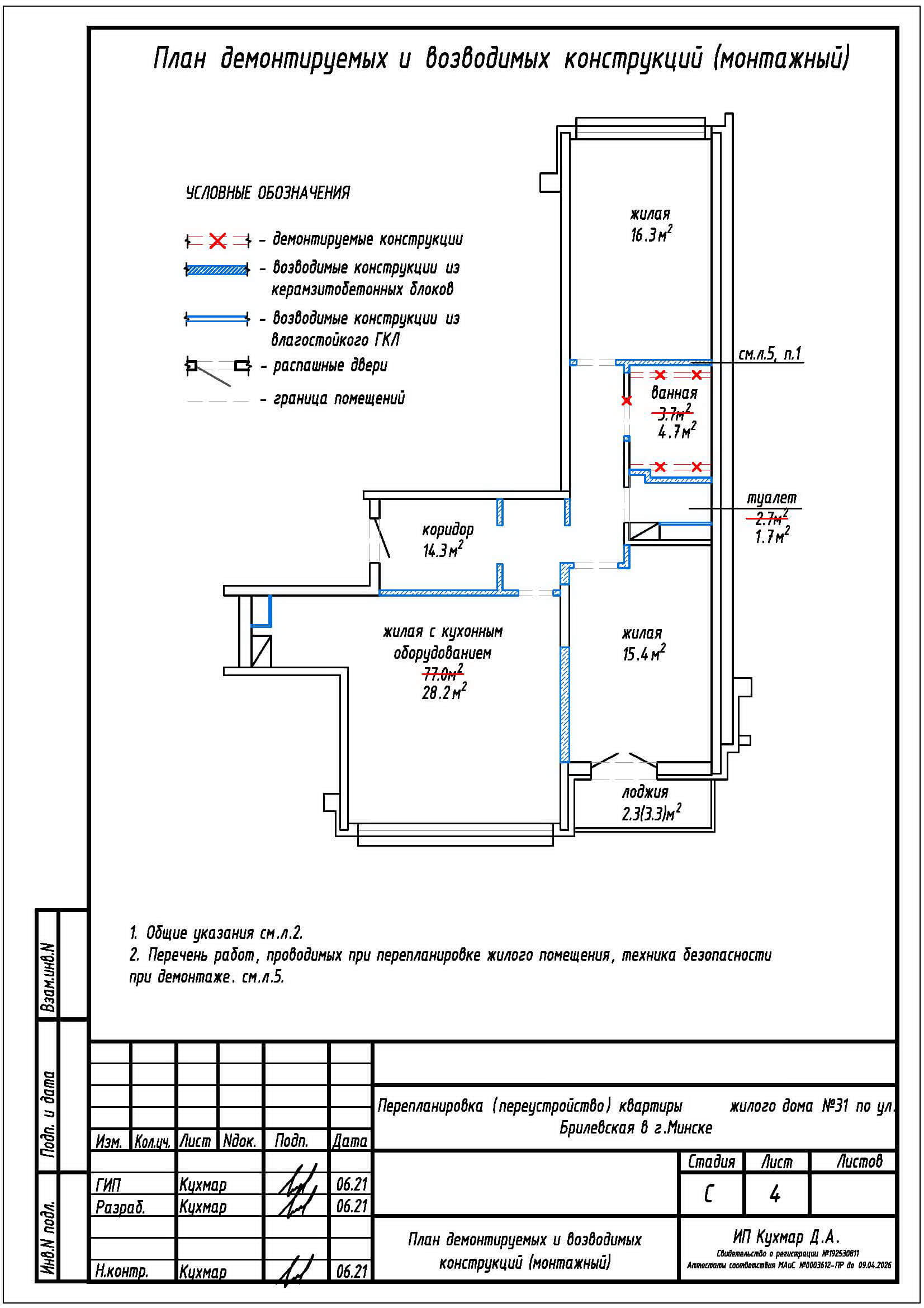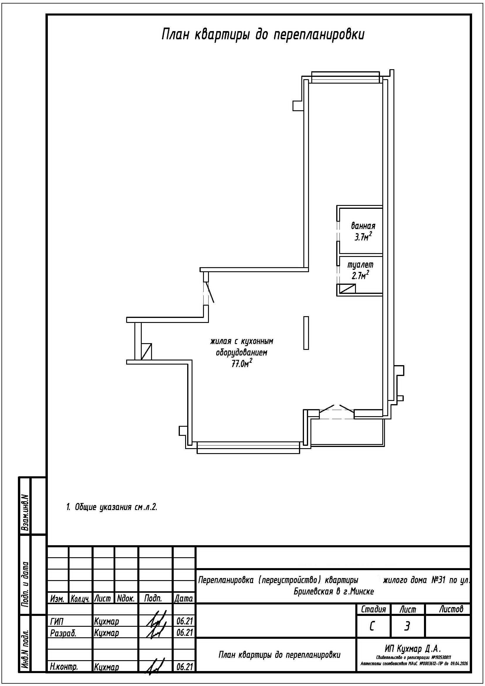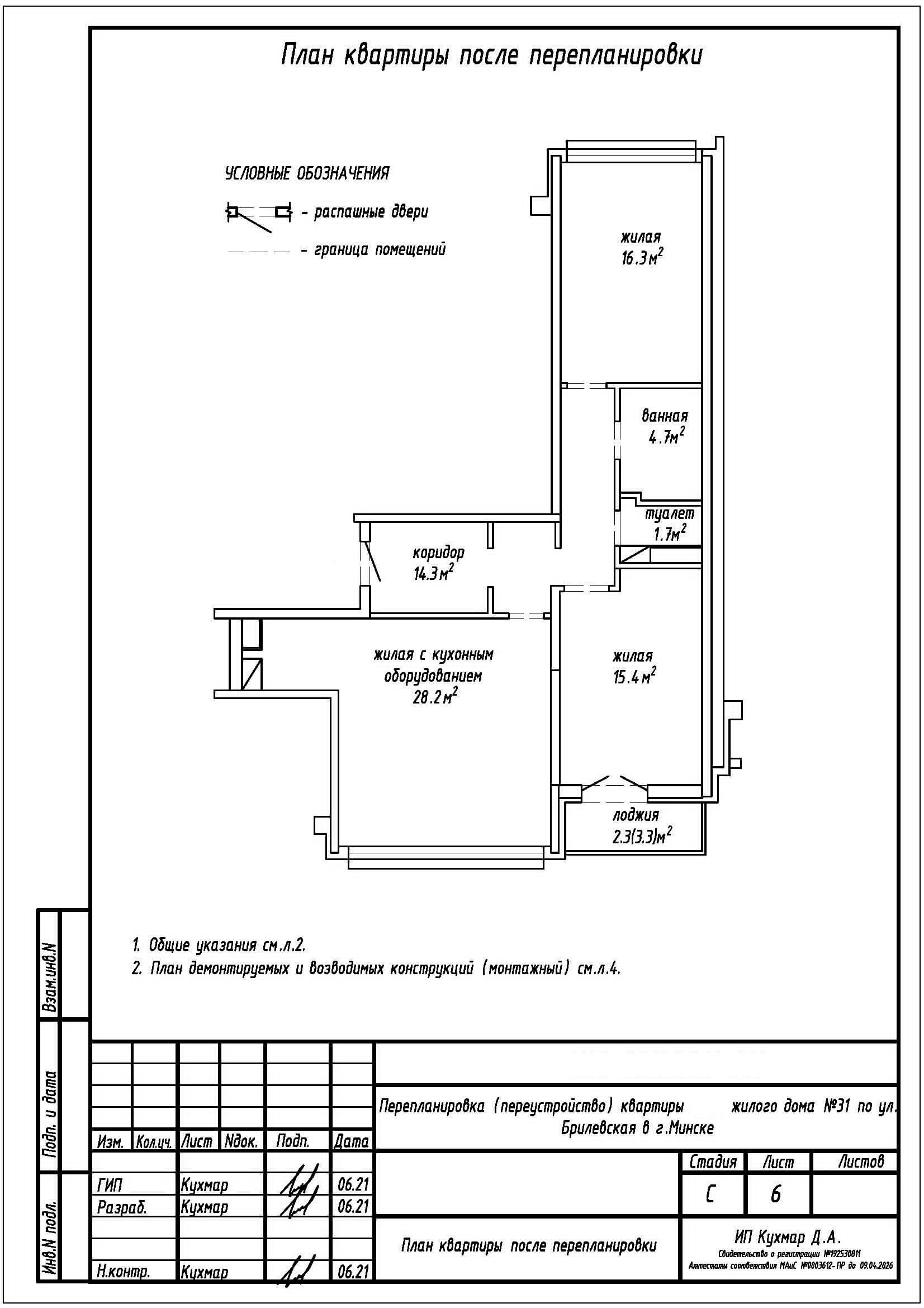 Перепланировка квартиры по ул. Брилевская, 31 в ЖК «Минск Мир»