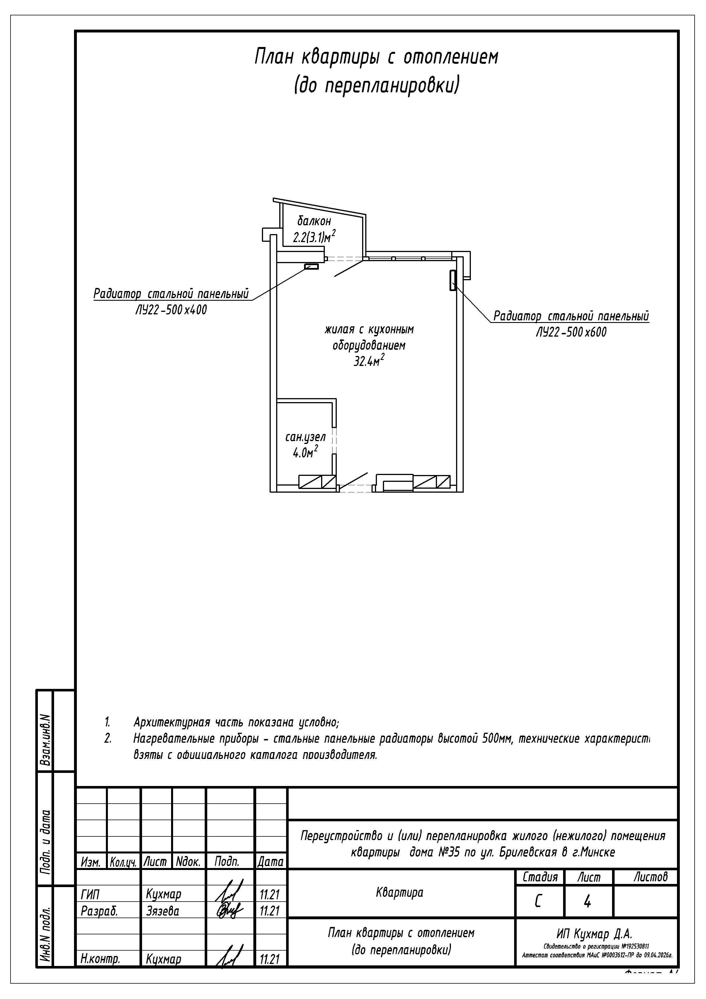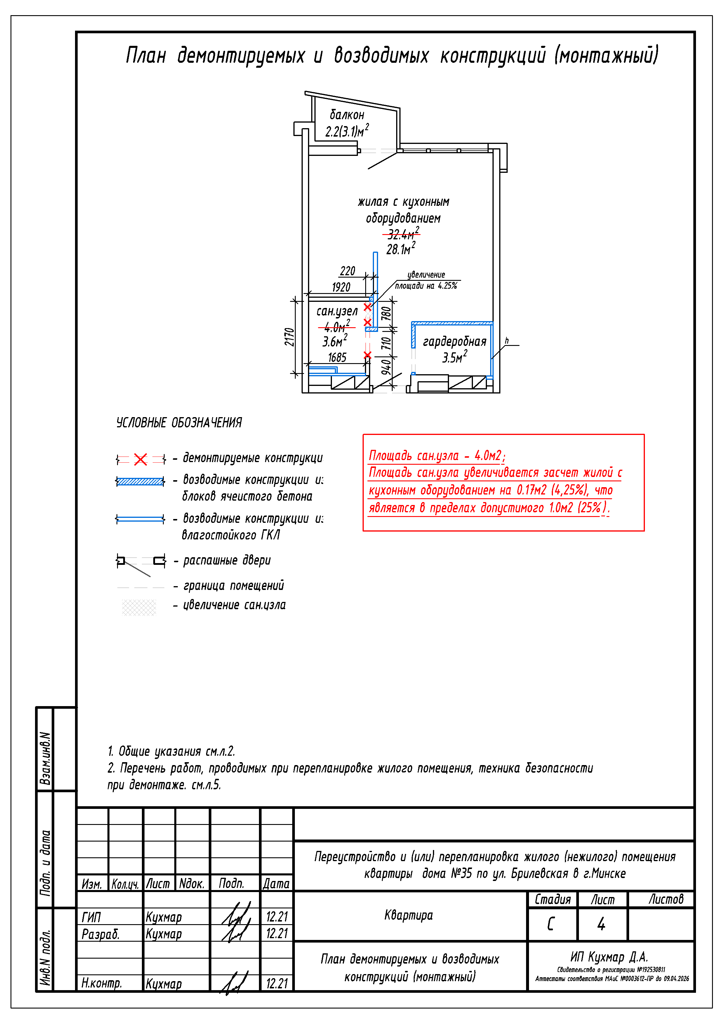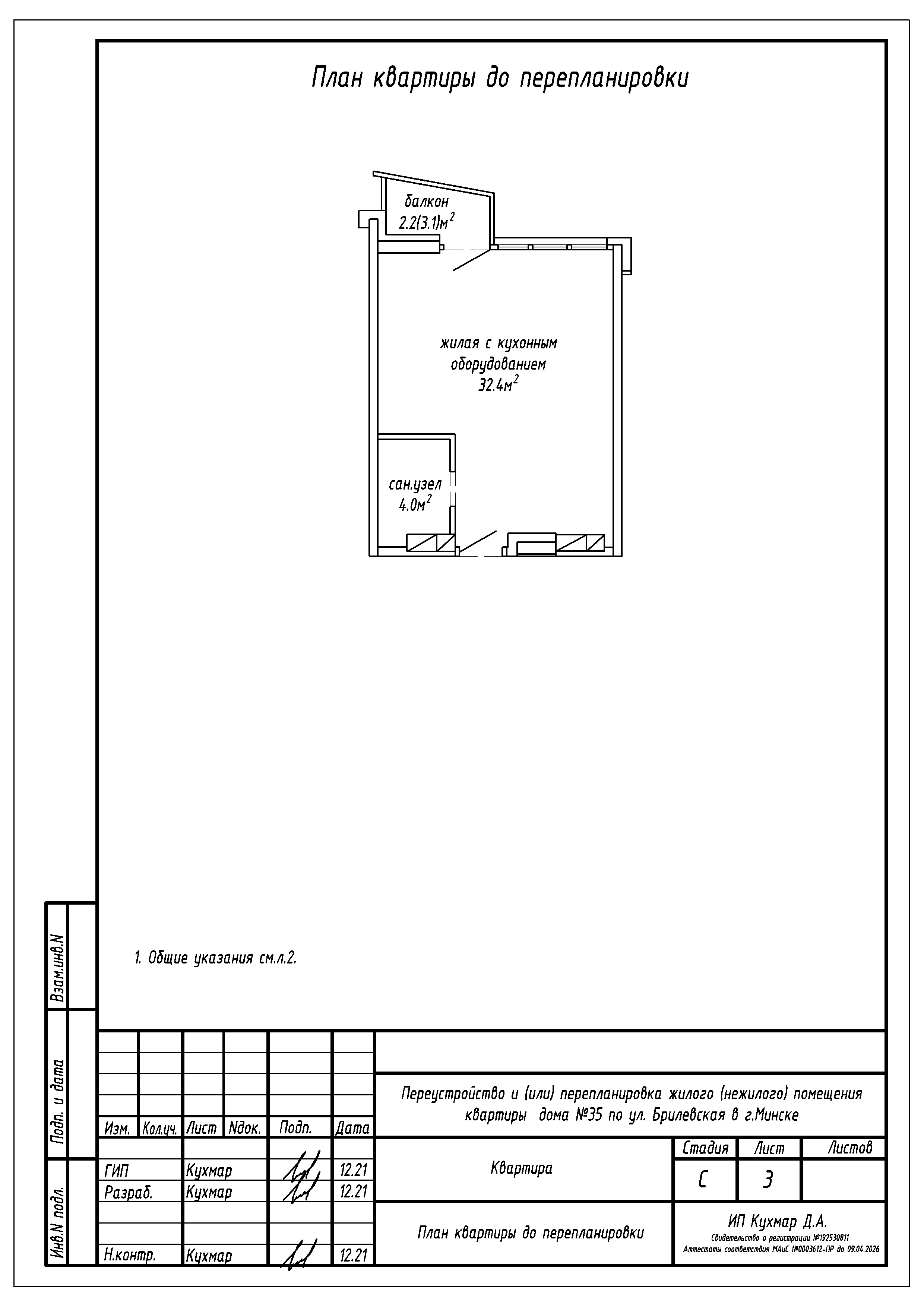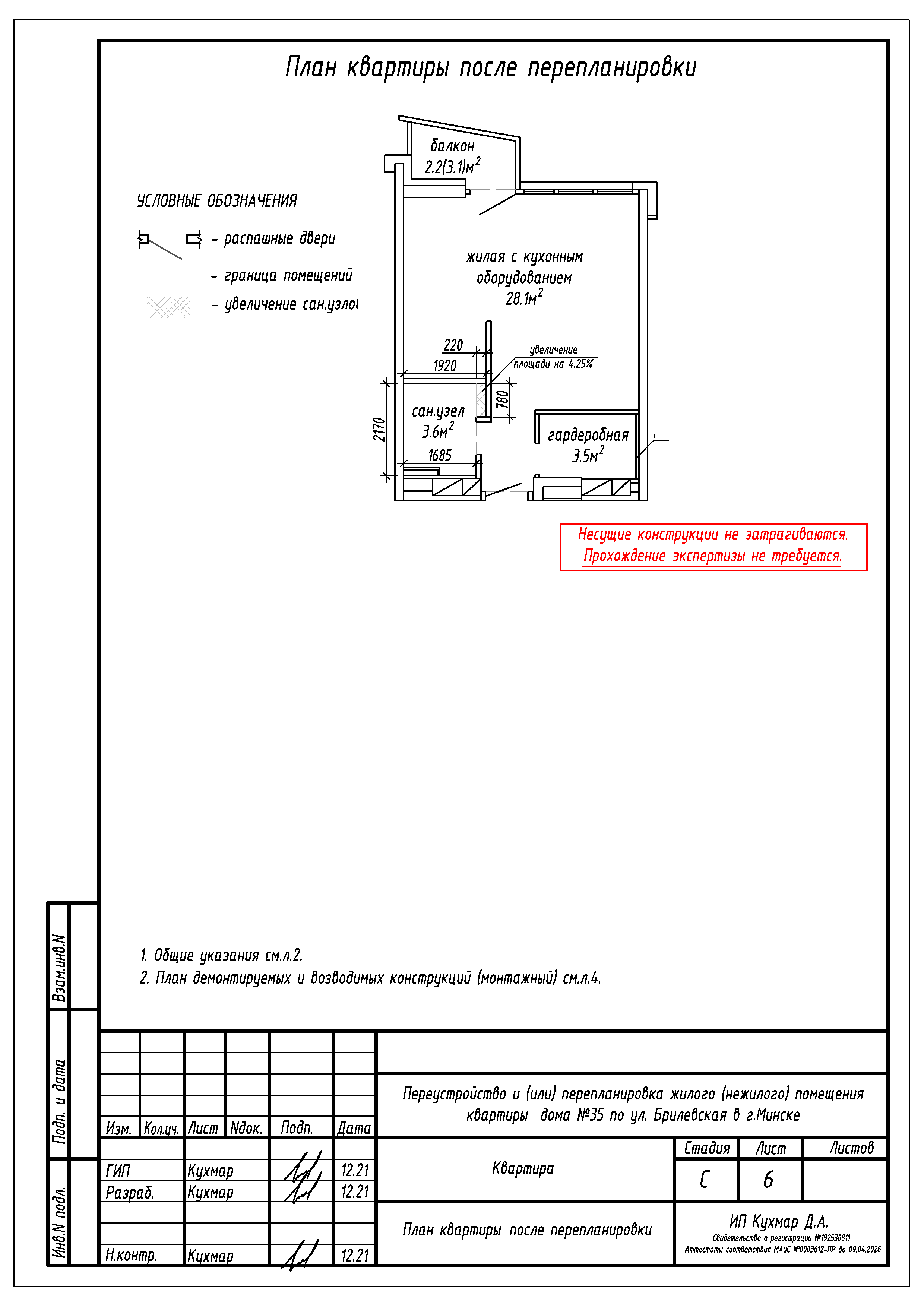 Перепланировка квартиры по ул. Брилевская, 35 ЖК «Минск Мир»
