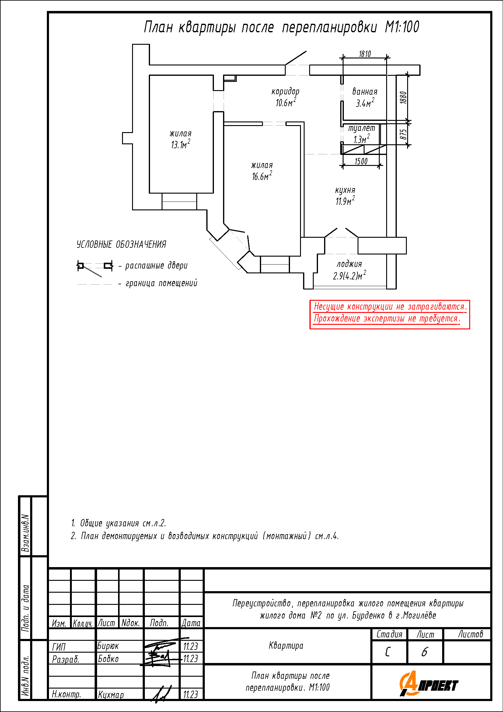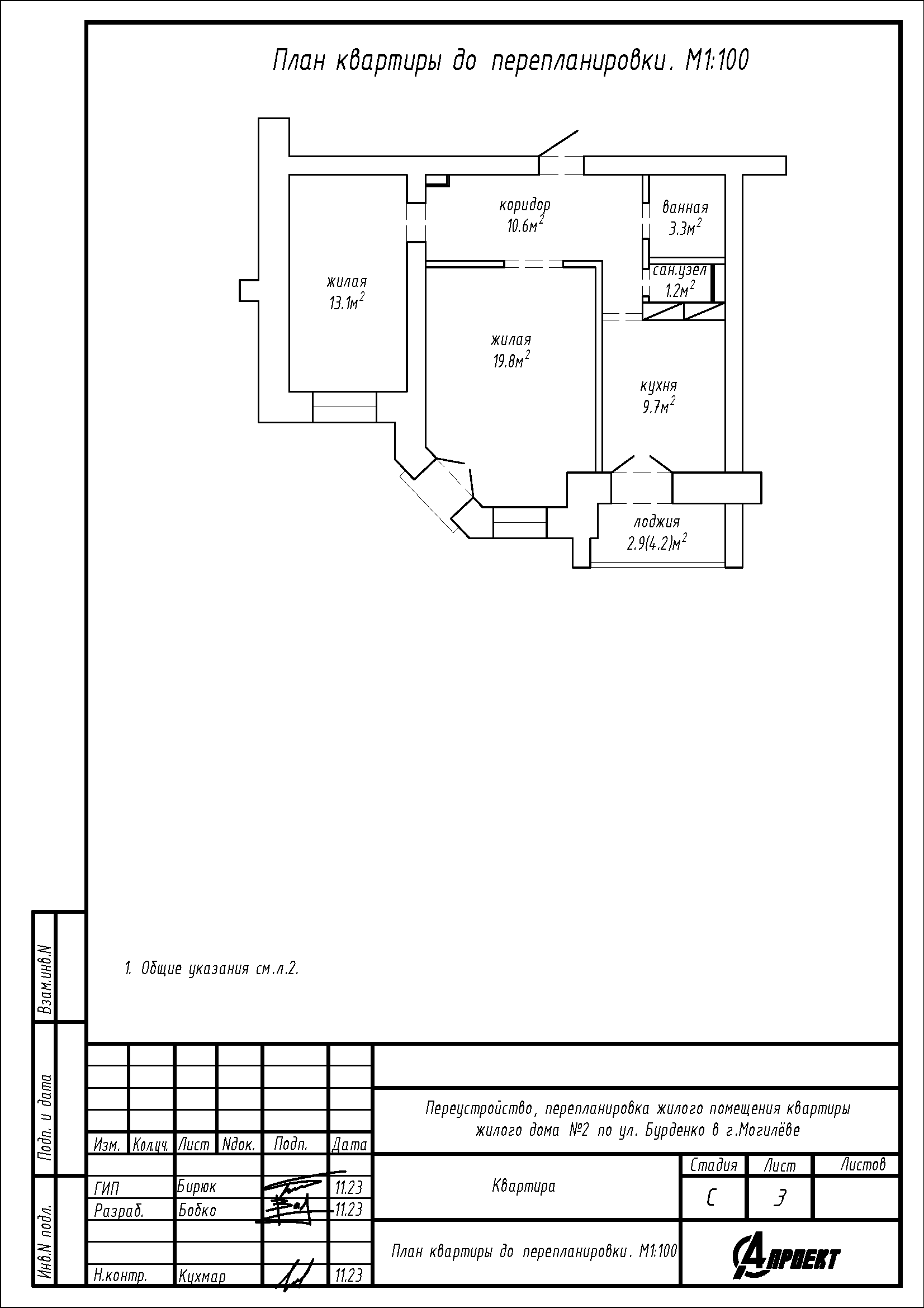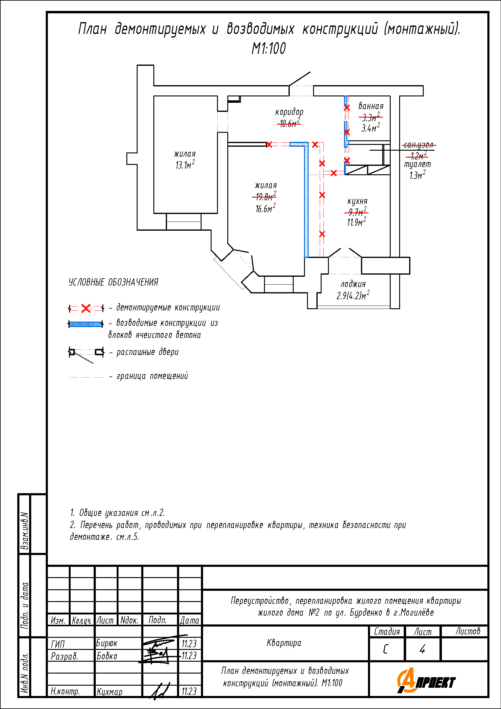 Перепланировка квартиры по ул. Бурденко, 2 в г. Могилёве
