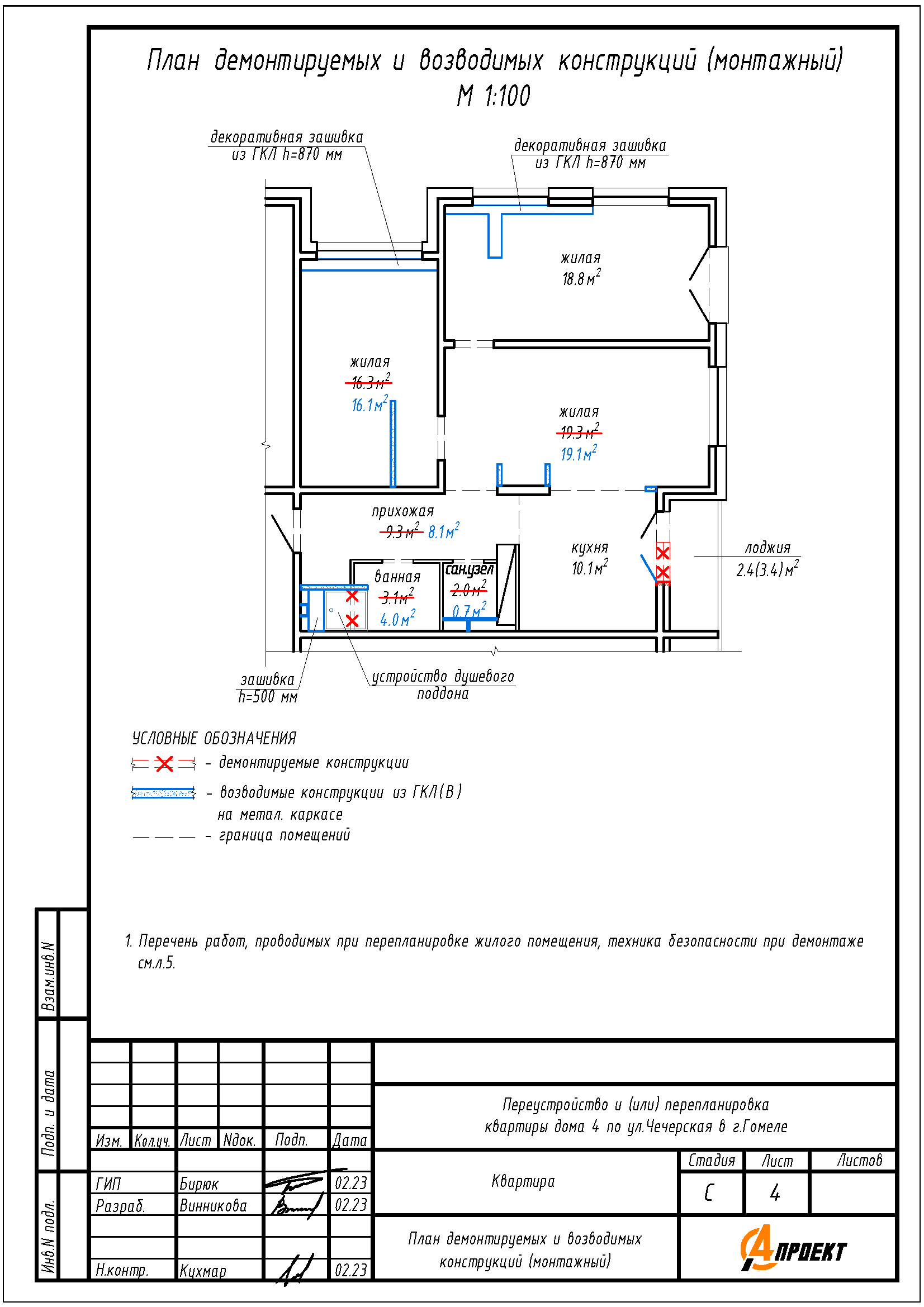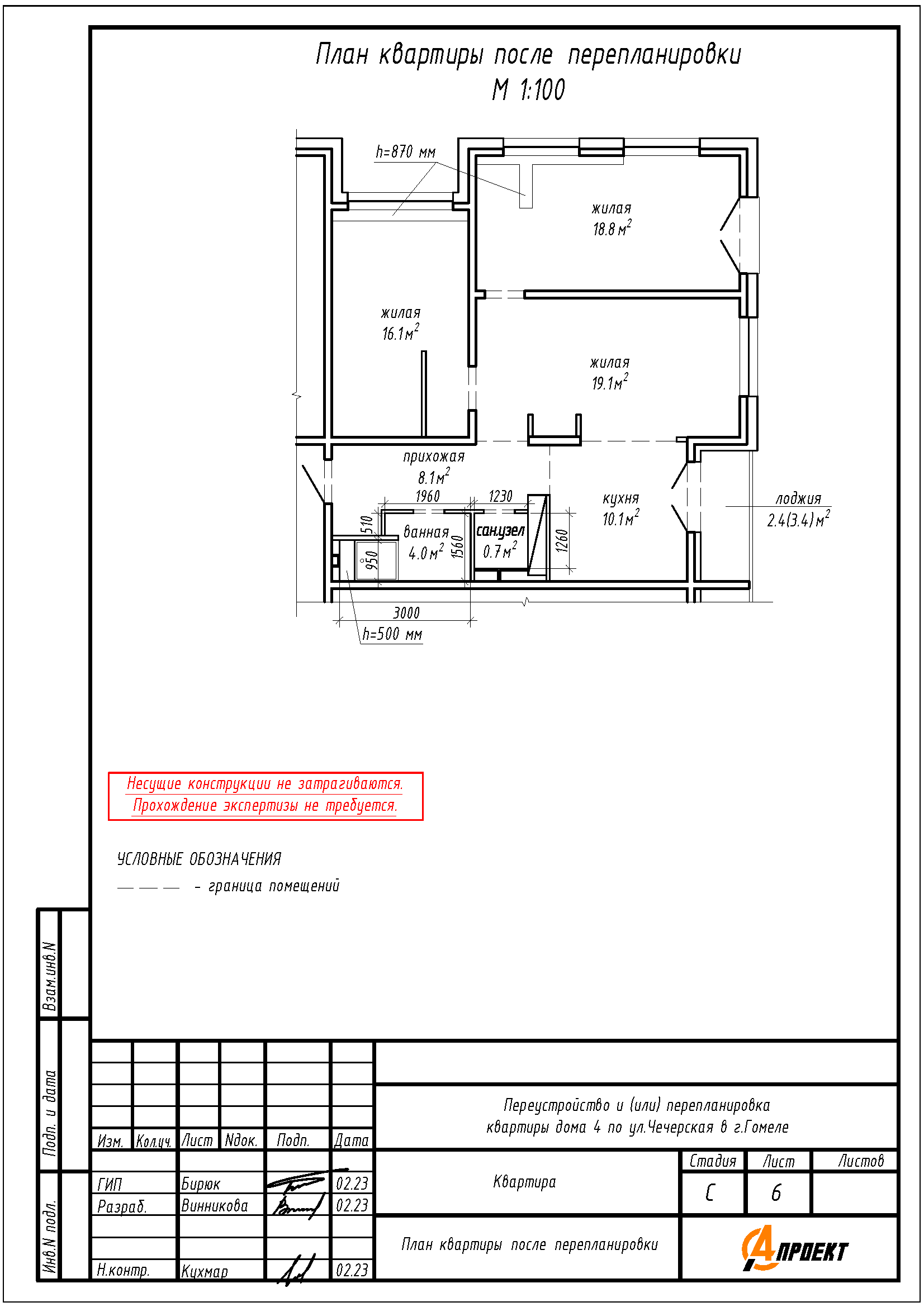 Перепланировка квартиры по ул. Чечерская, 4 в г. Гомеле