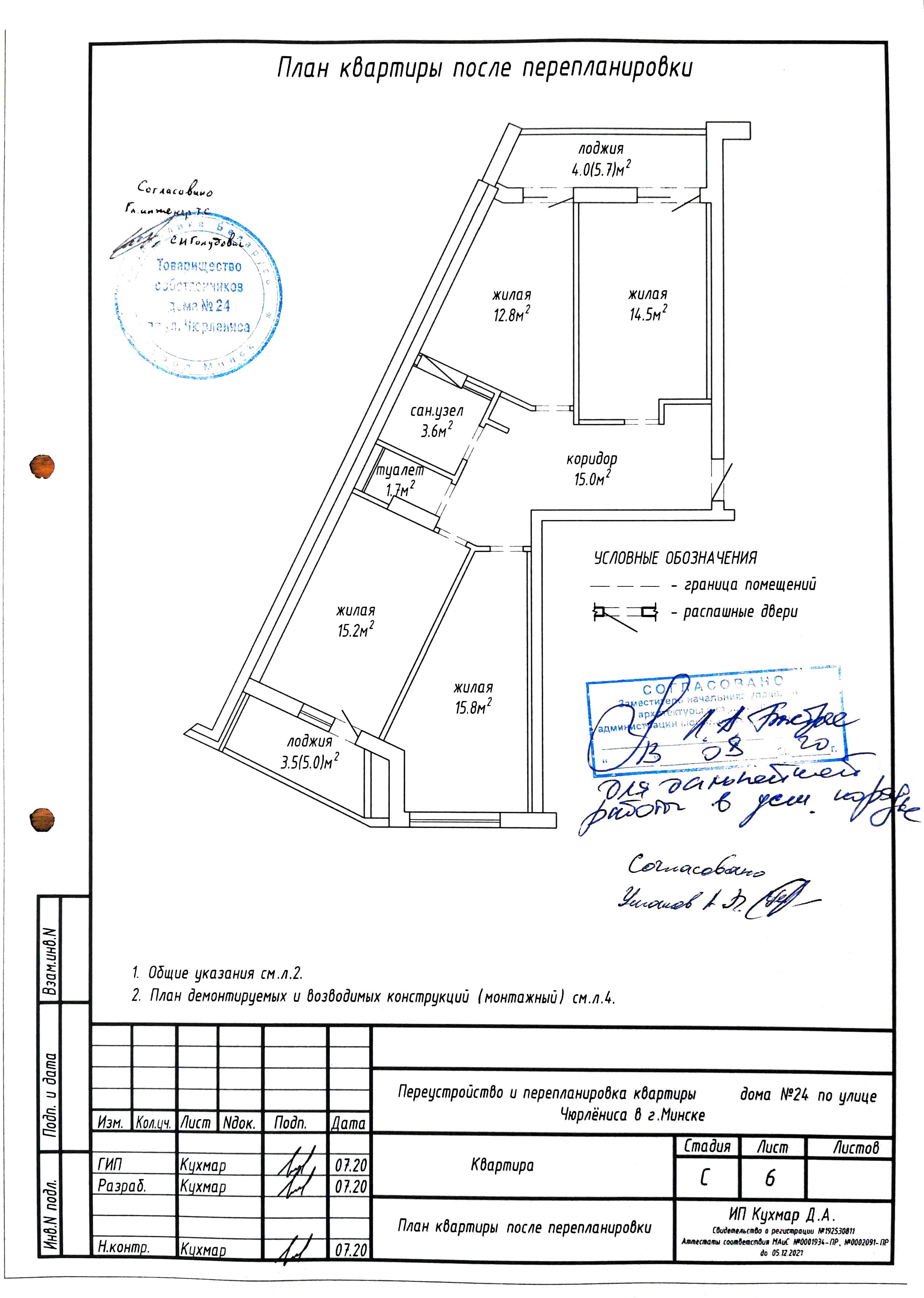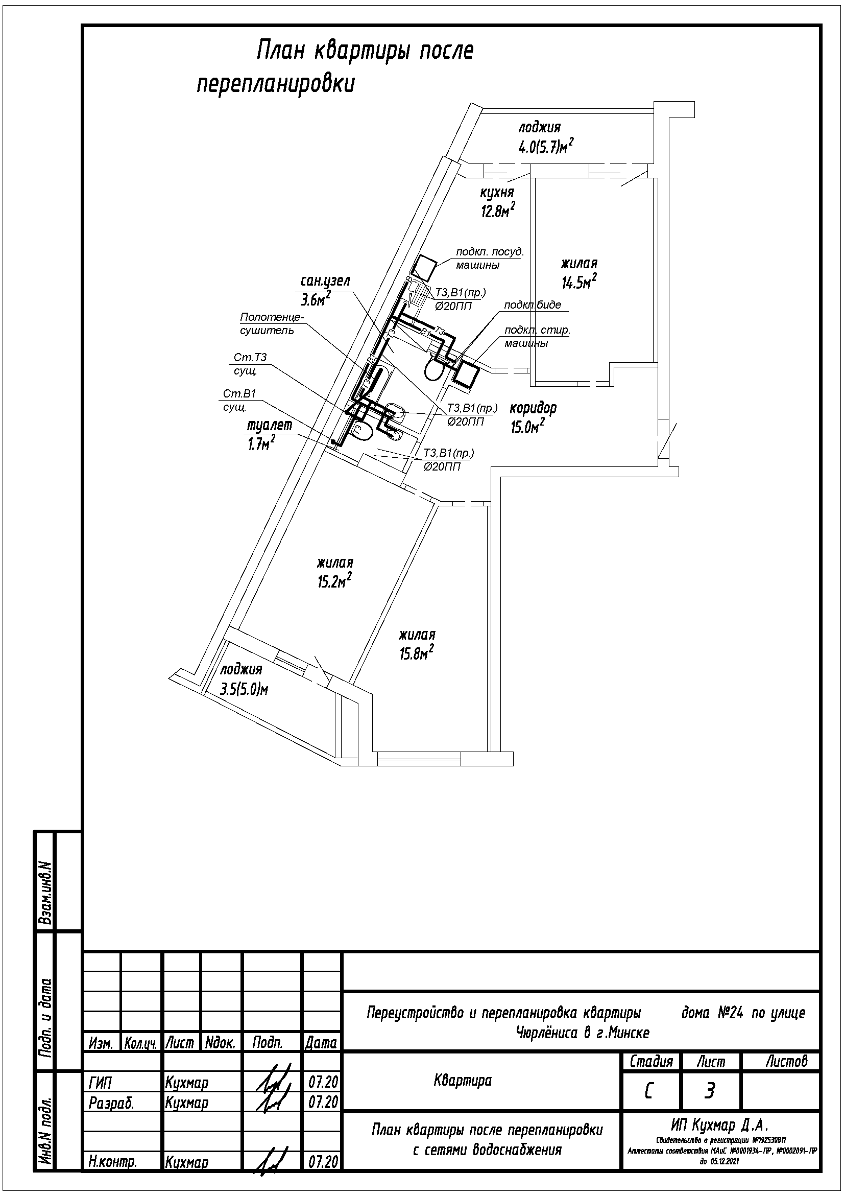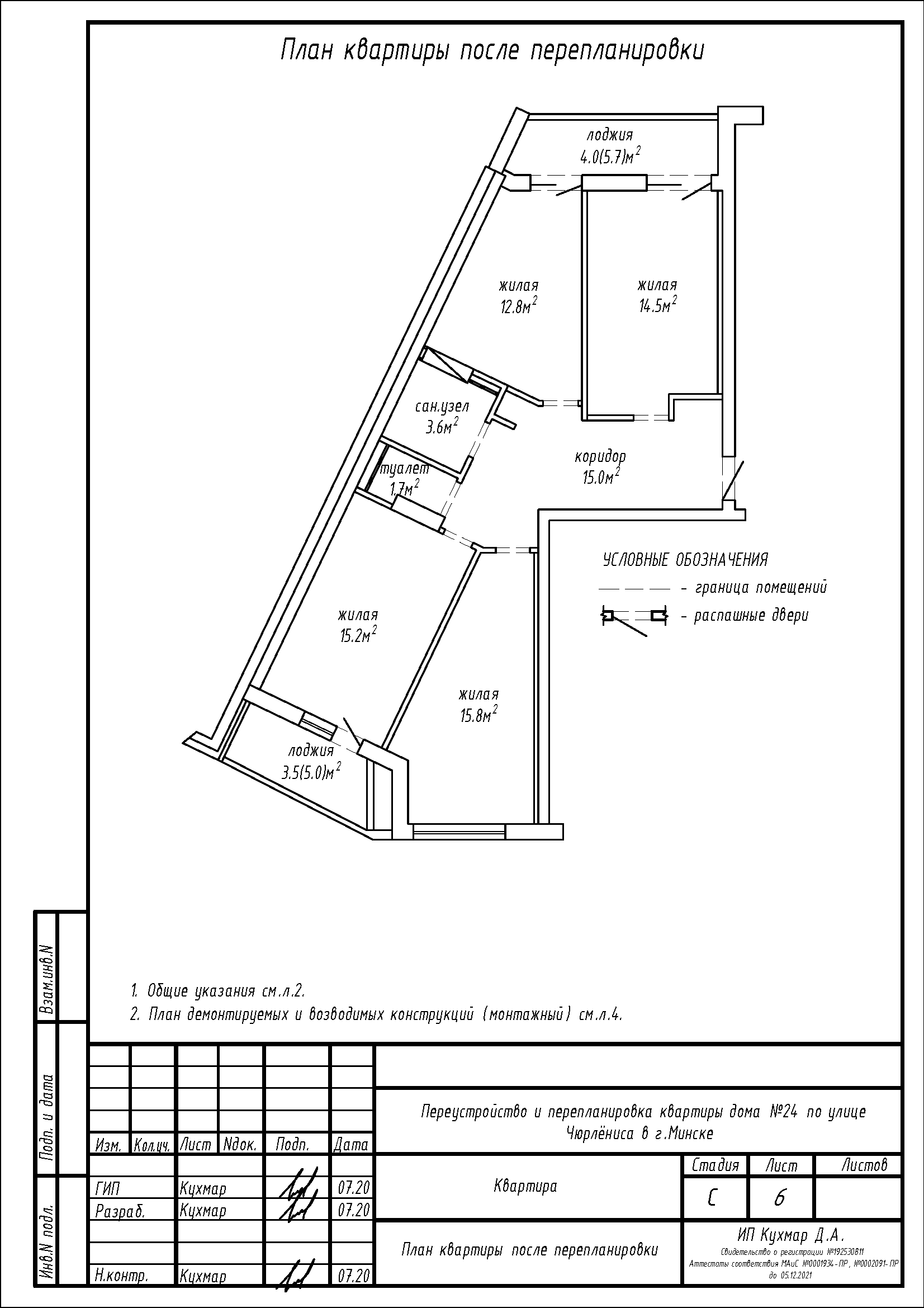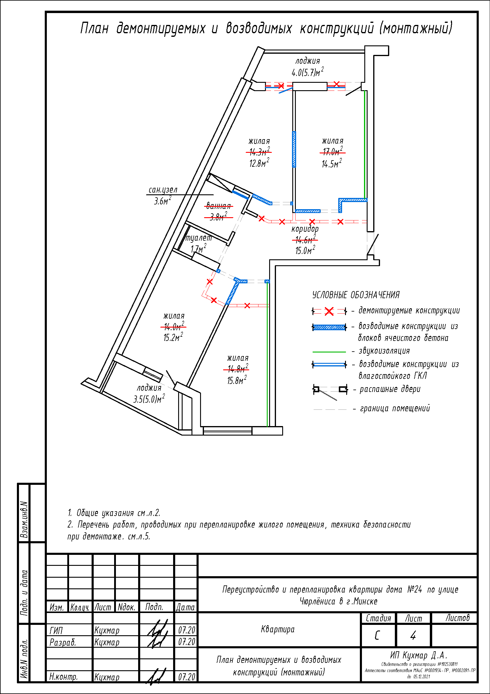 Перепланировка квартиры по ул. Чюрлёниса, 24 в г. Минске