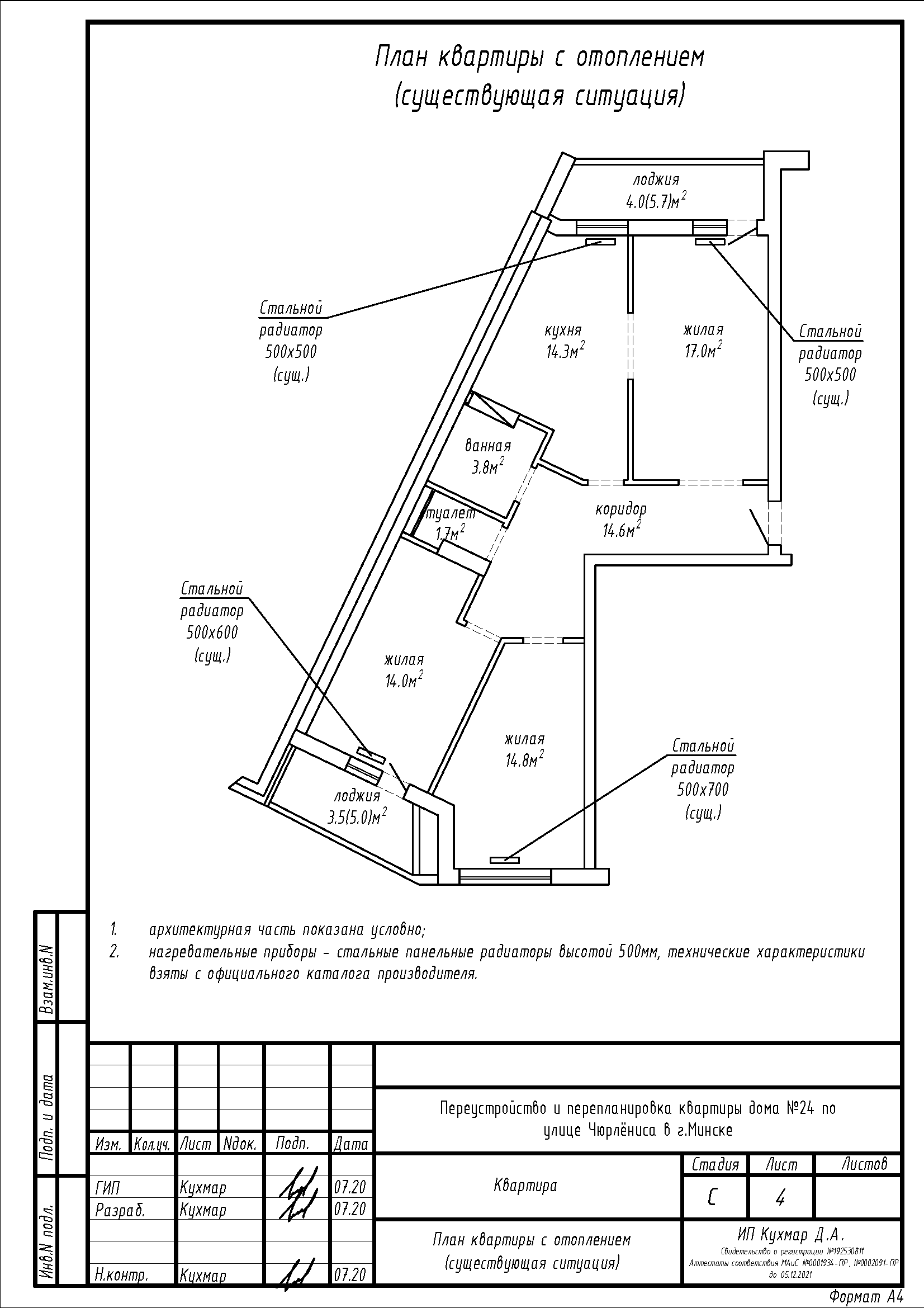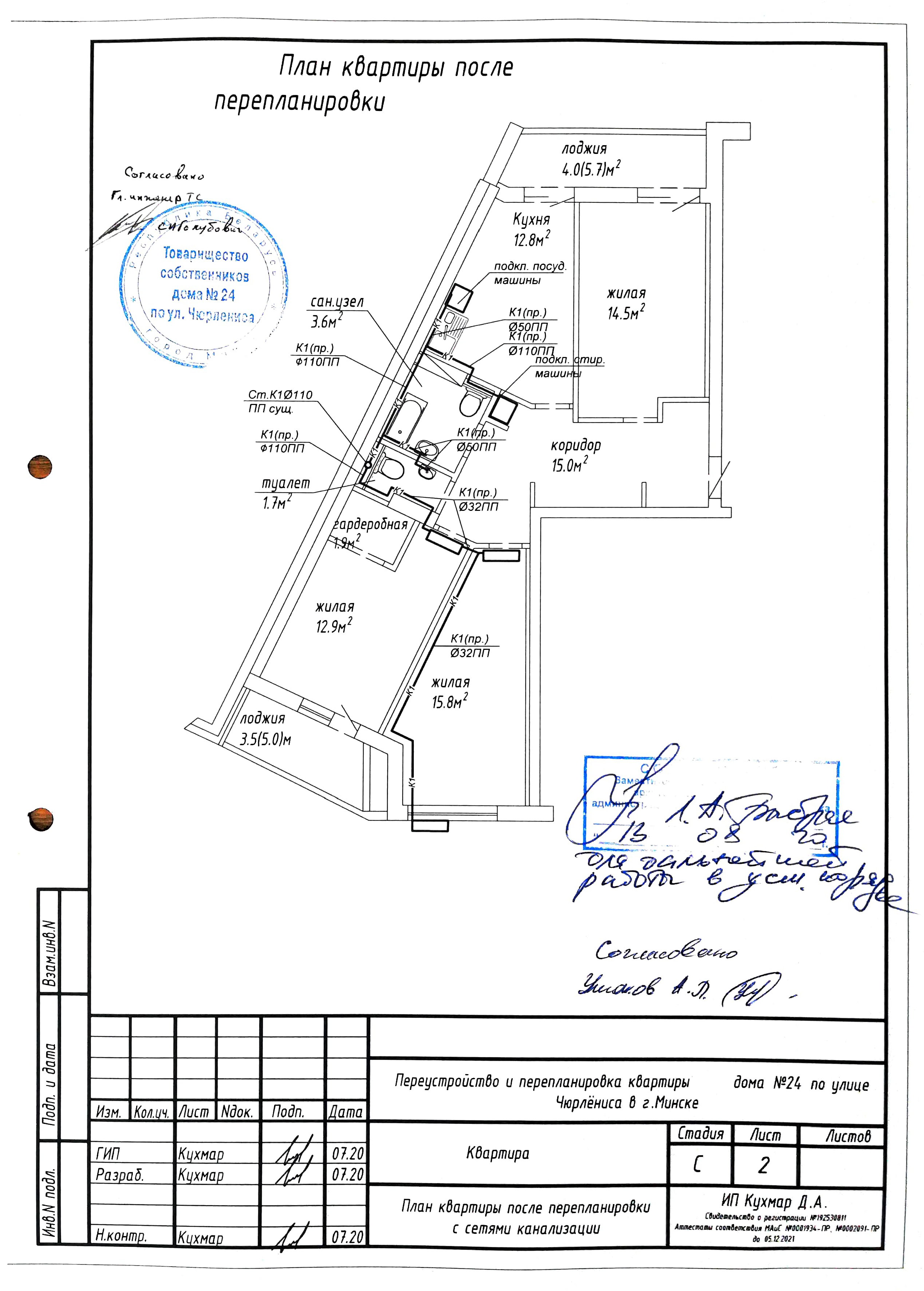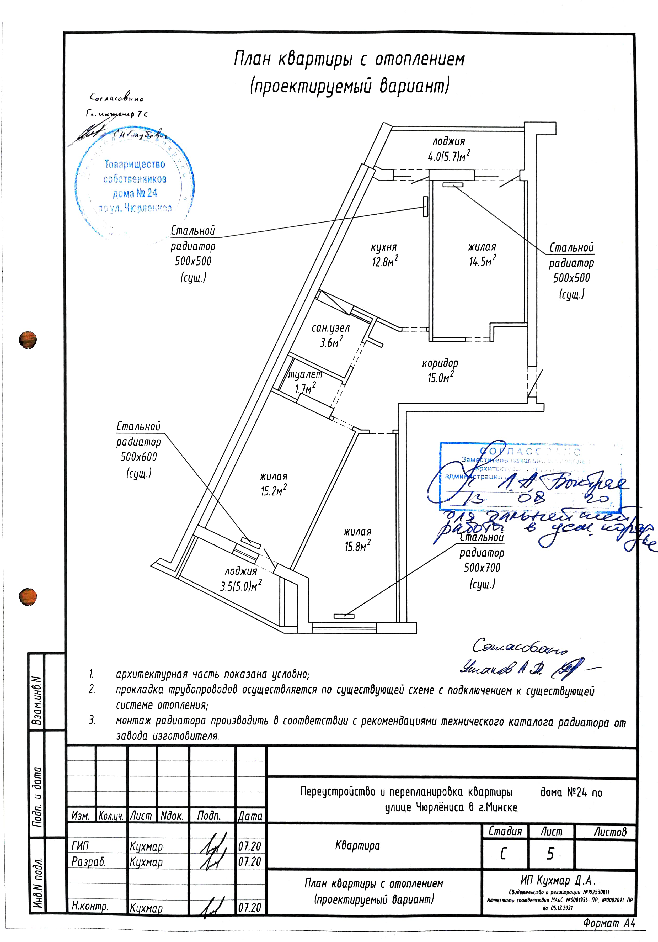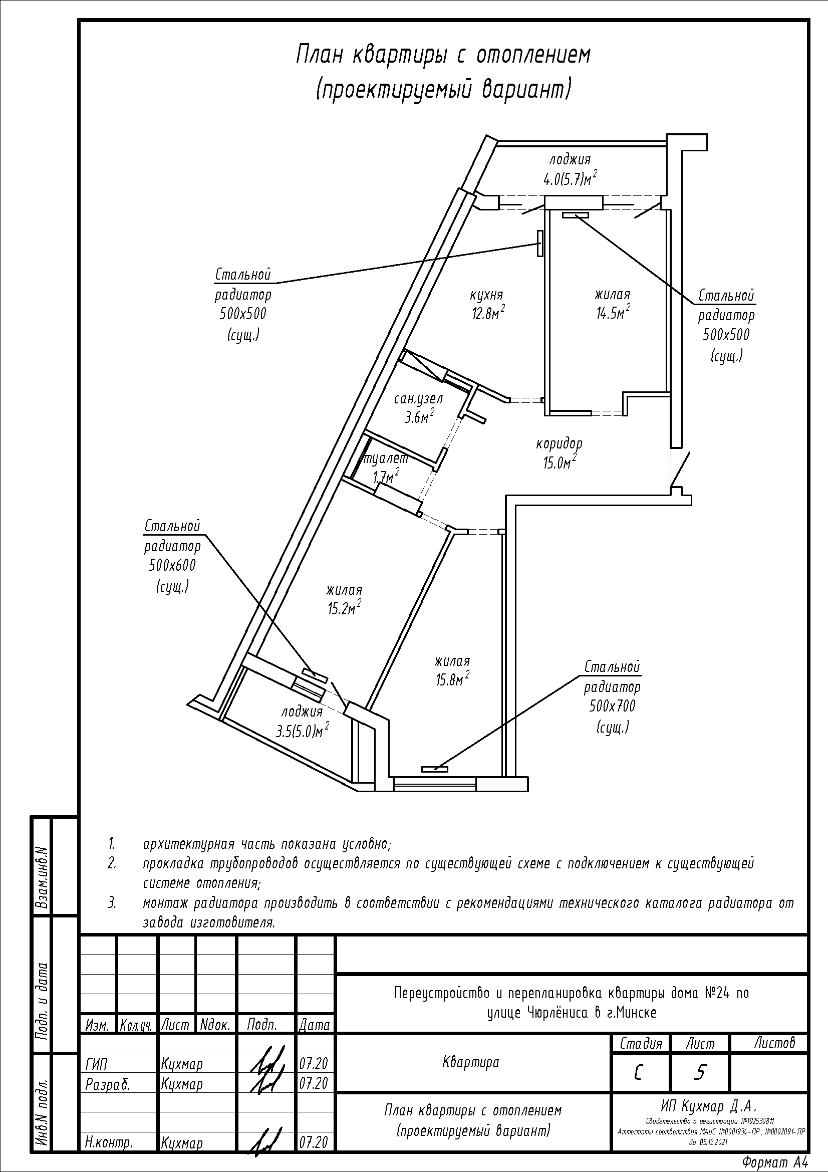 Перепланировка квартиры по ул. Чюрлёниса, 24 в г. Минске