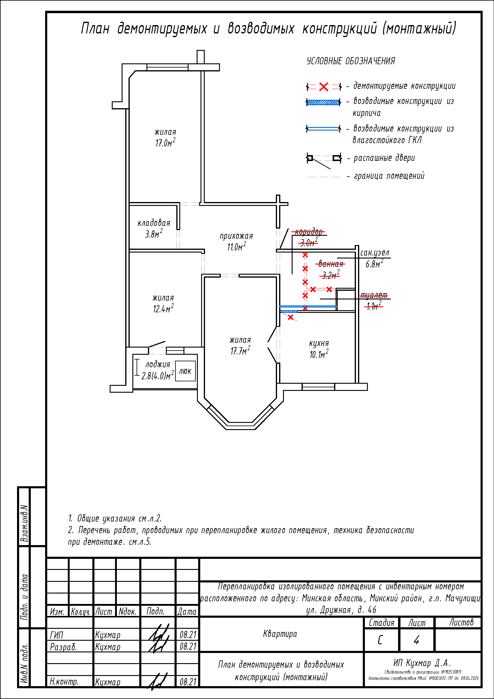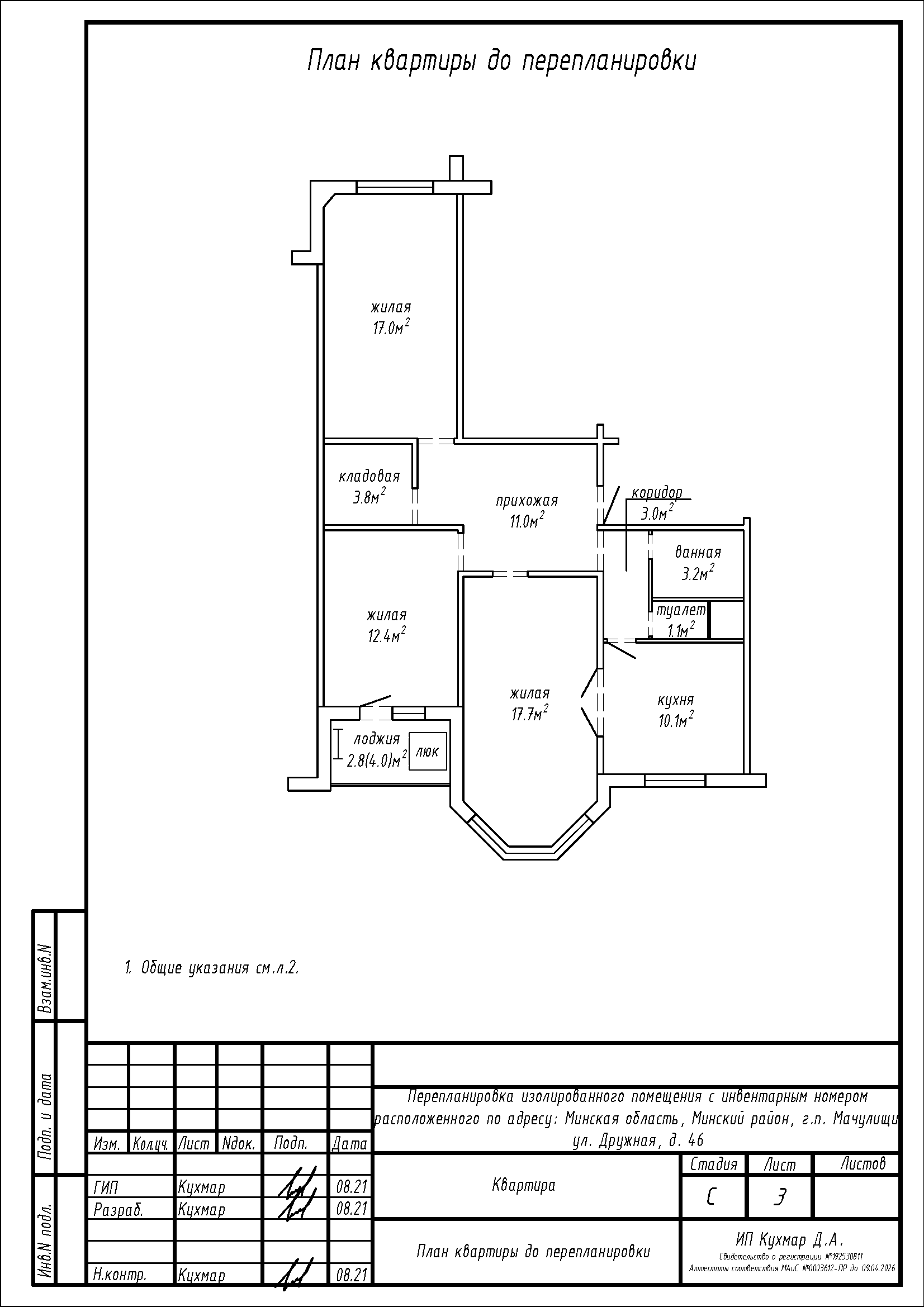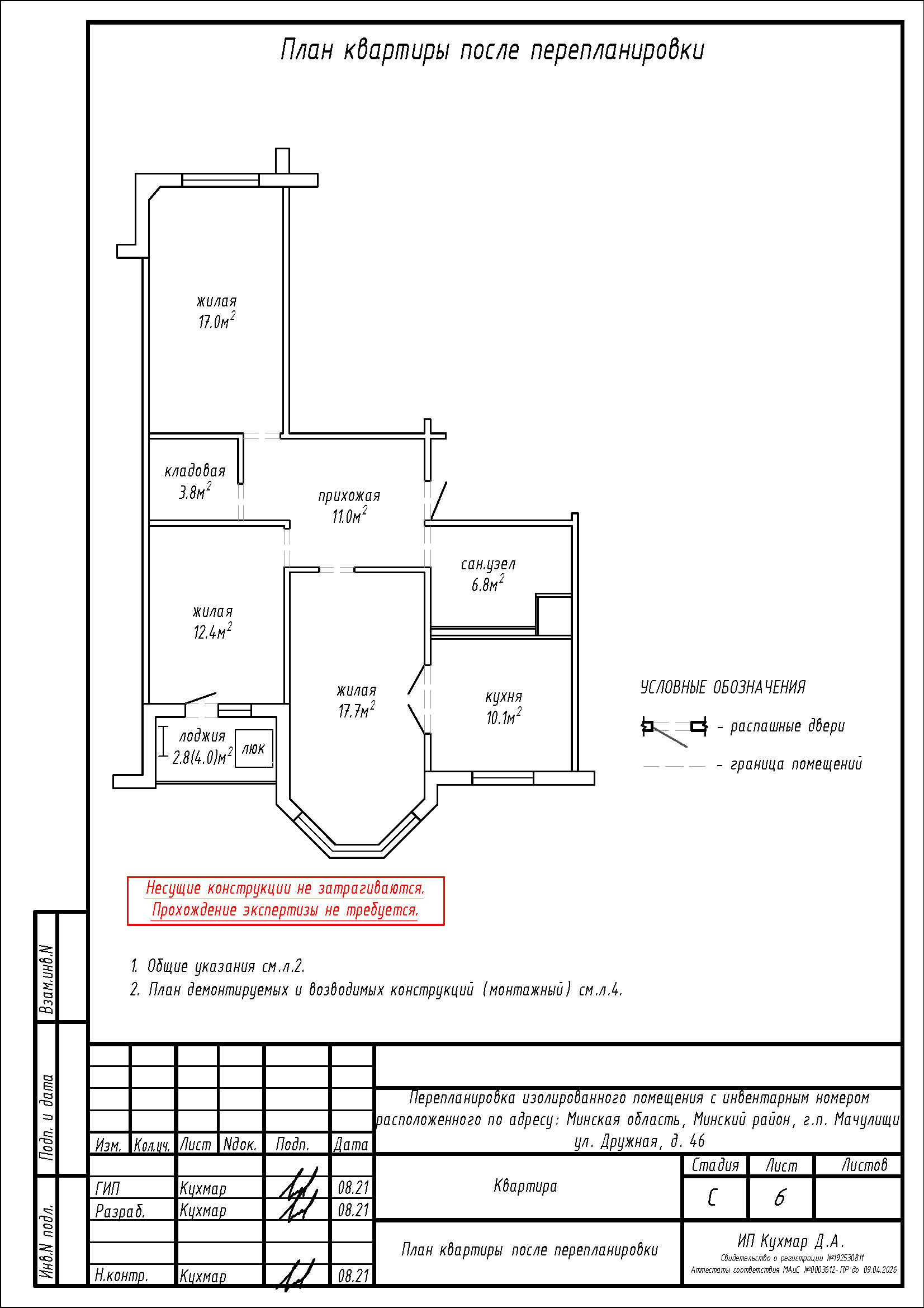 Перепланировка квартиры по ул. Дружная, 46 в г.п. Мачулищи