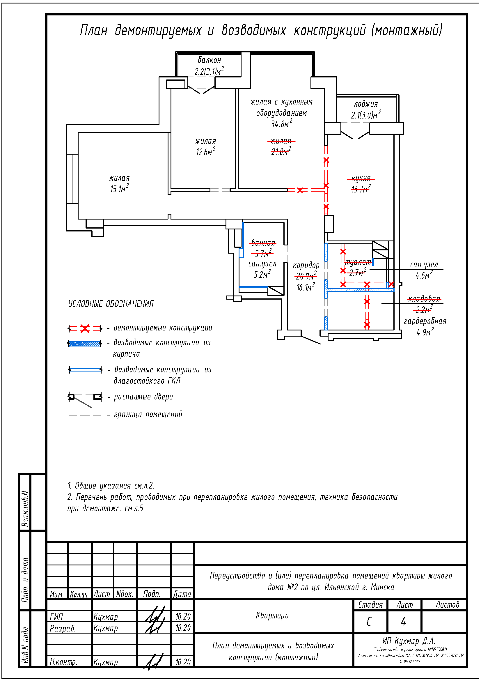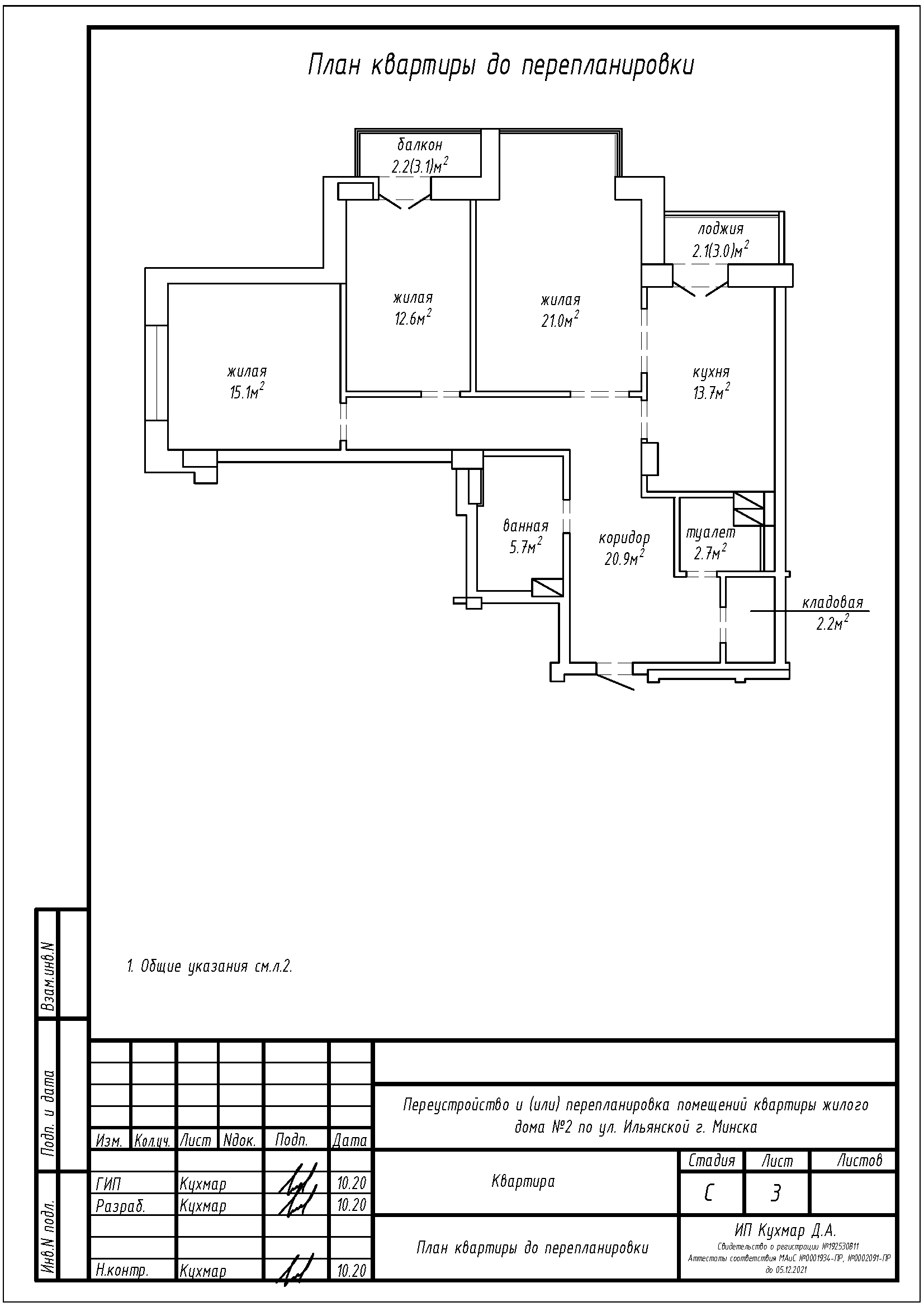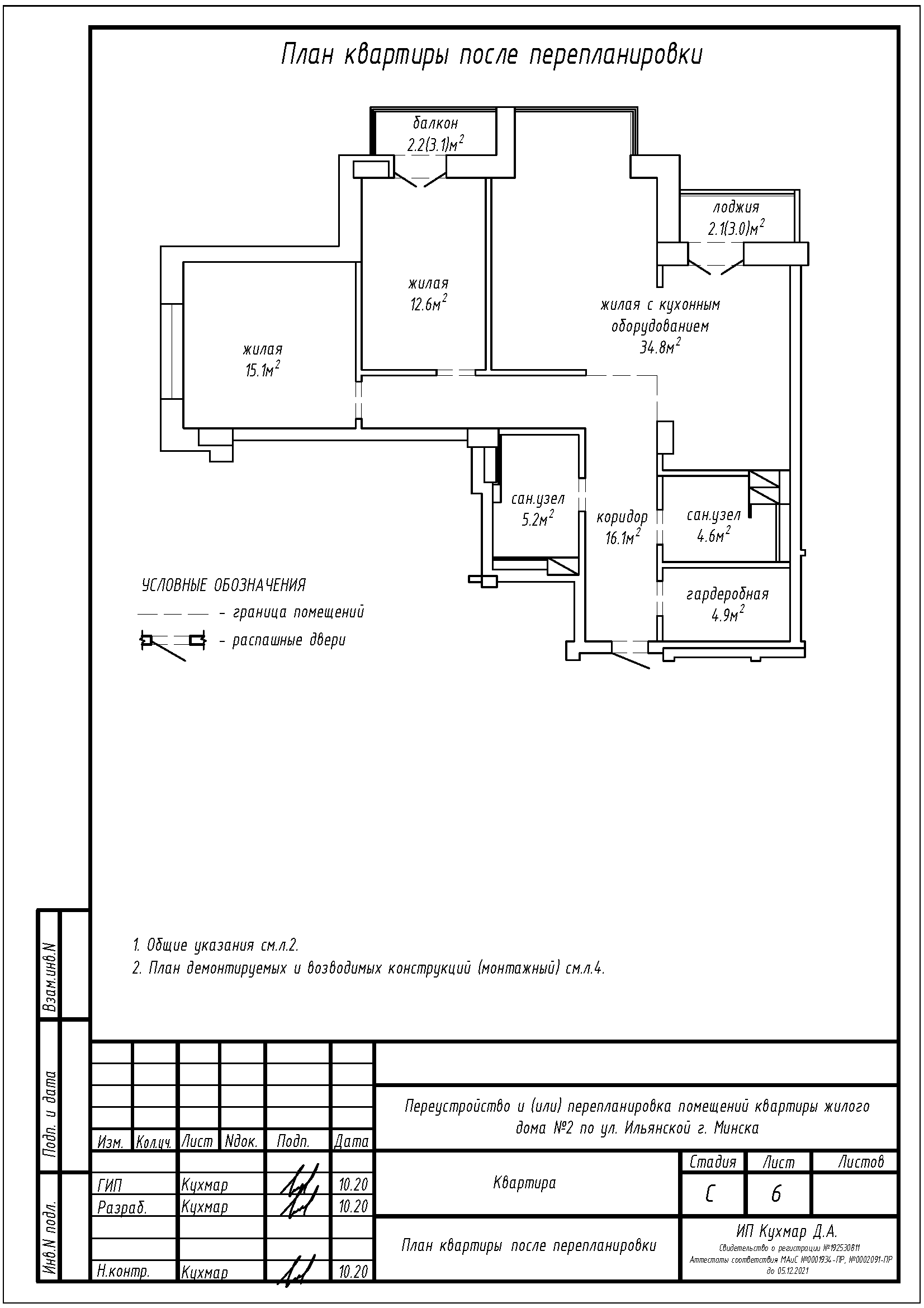 Перепланировка квартиры по ул. Ильянская, 2 в ЖК «Променд»