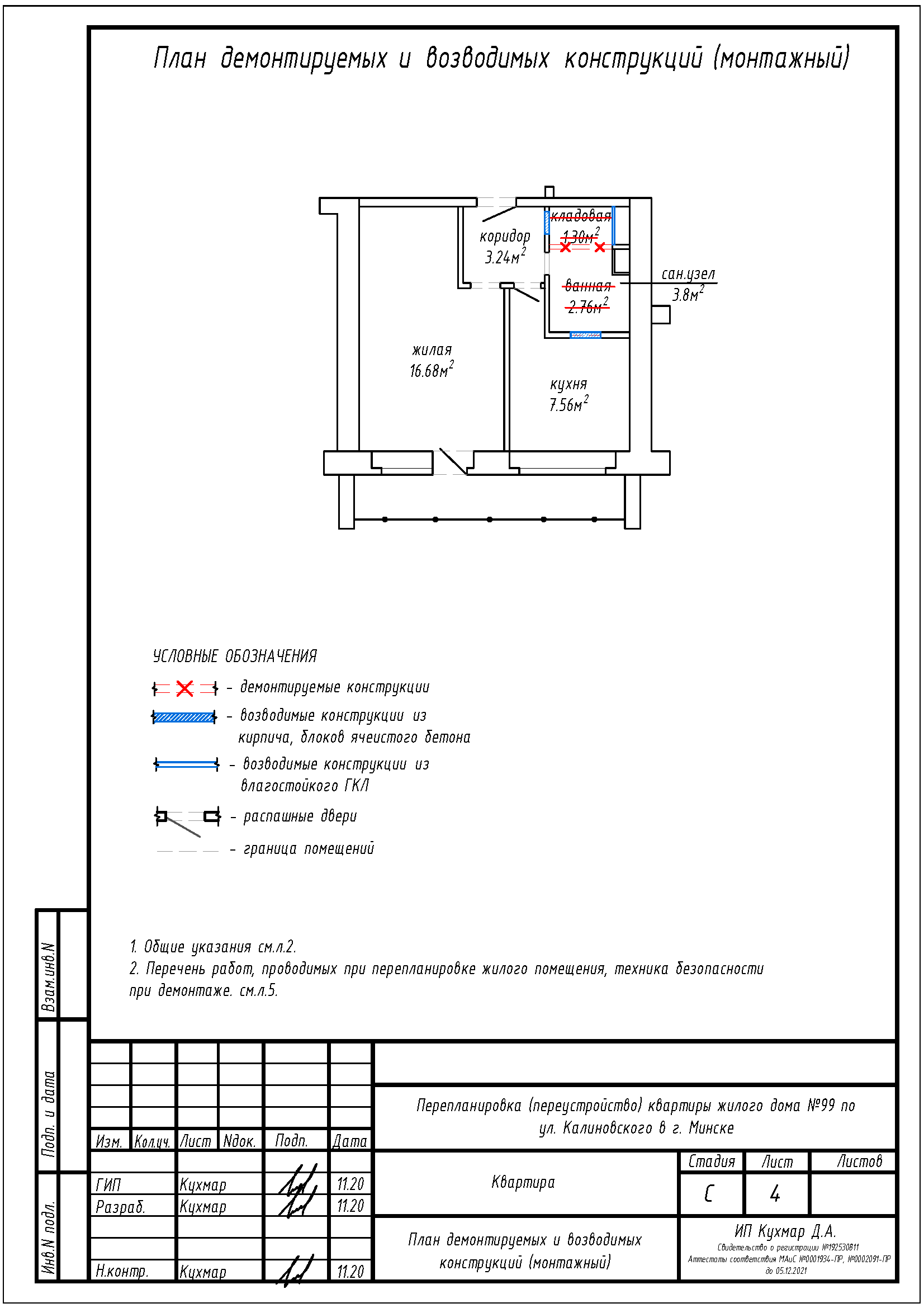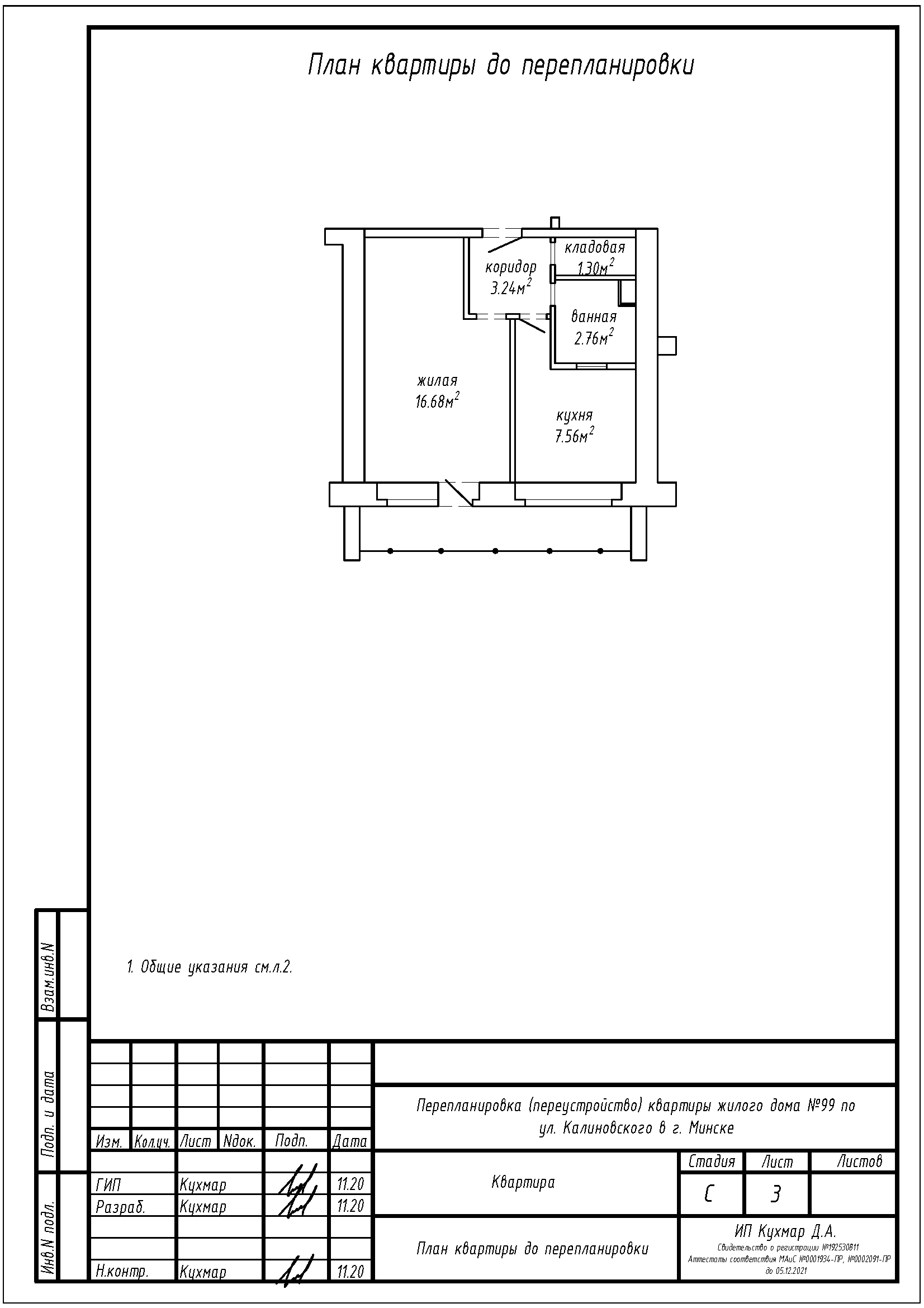 Перепланировка квартиры по ул. Калиновского, 99 в г. Минске