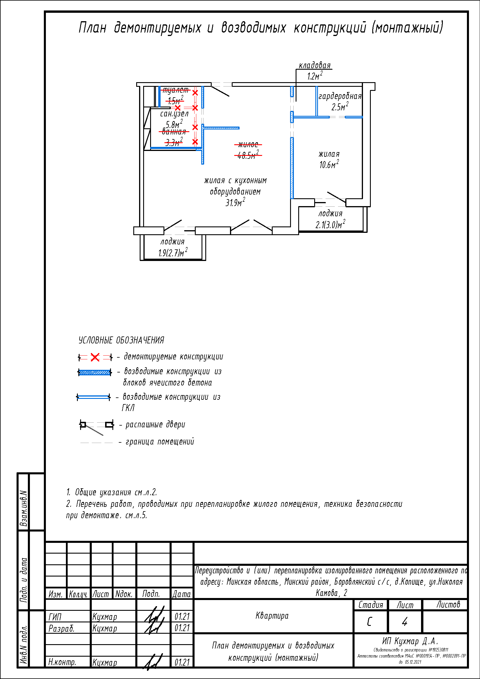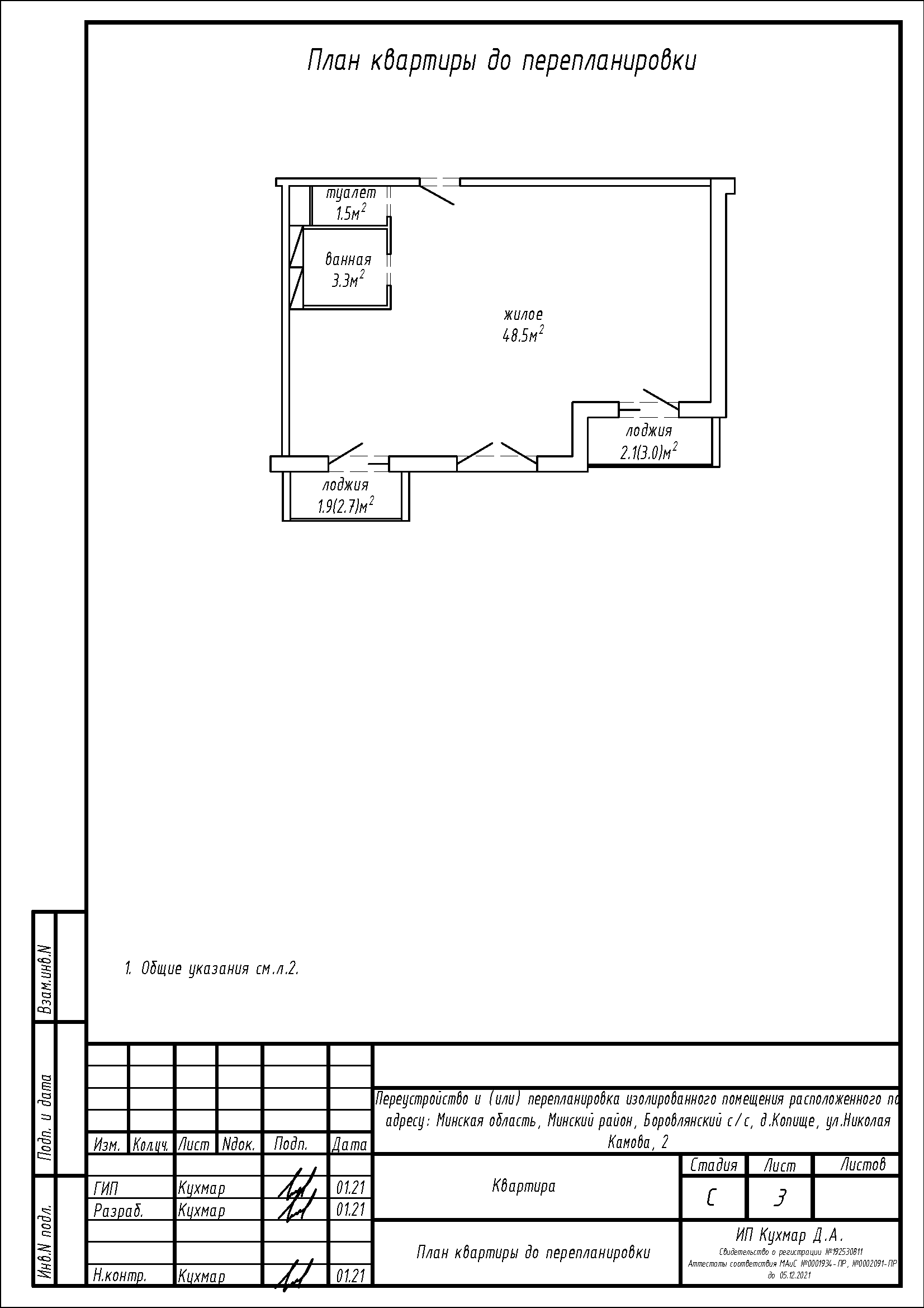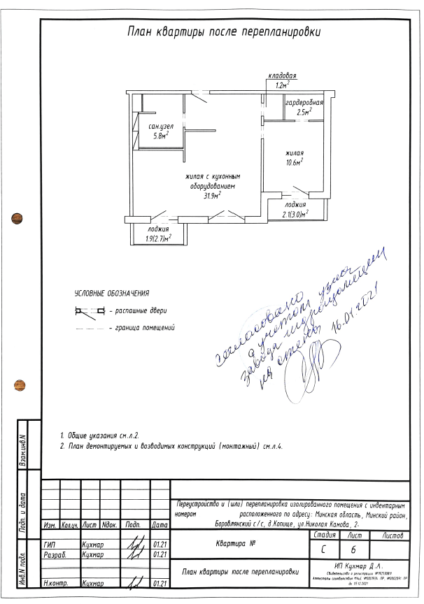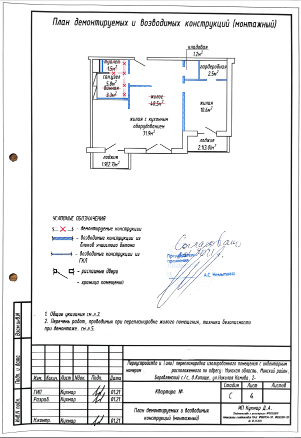 Перепланировка квартиры по ул. Камова, 2 в ЖК «Новая Боровая»