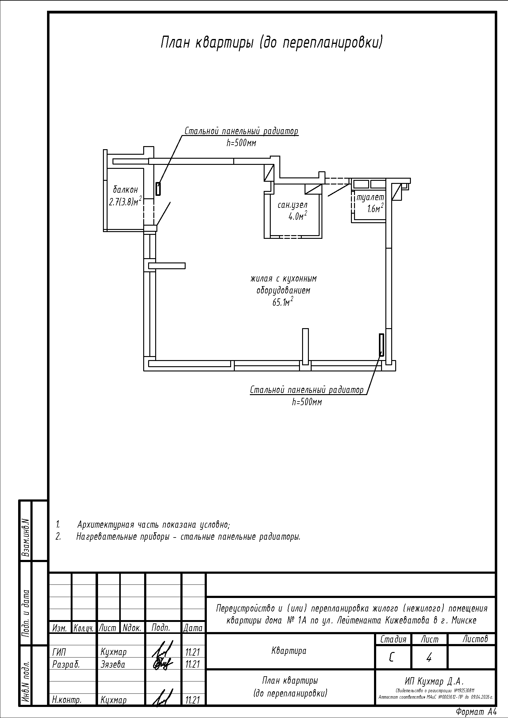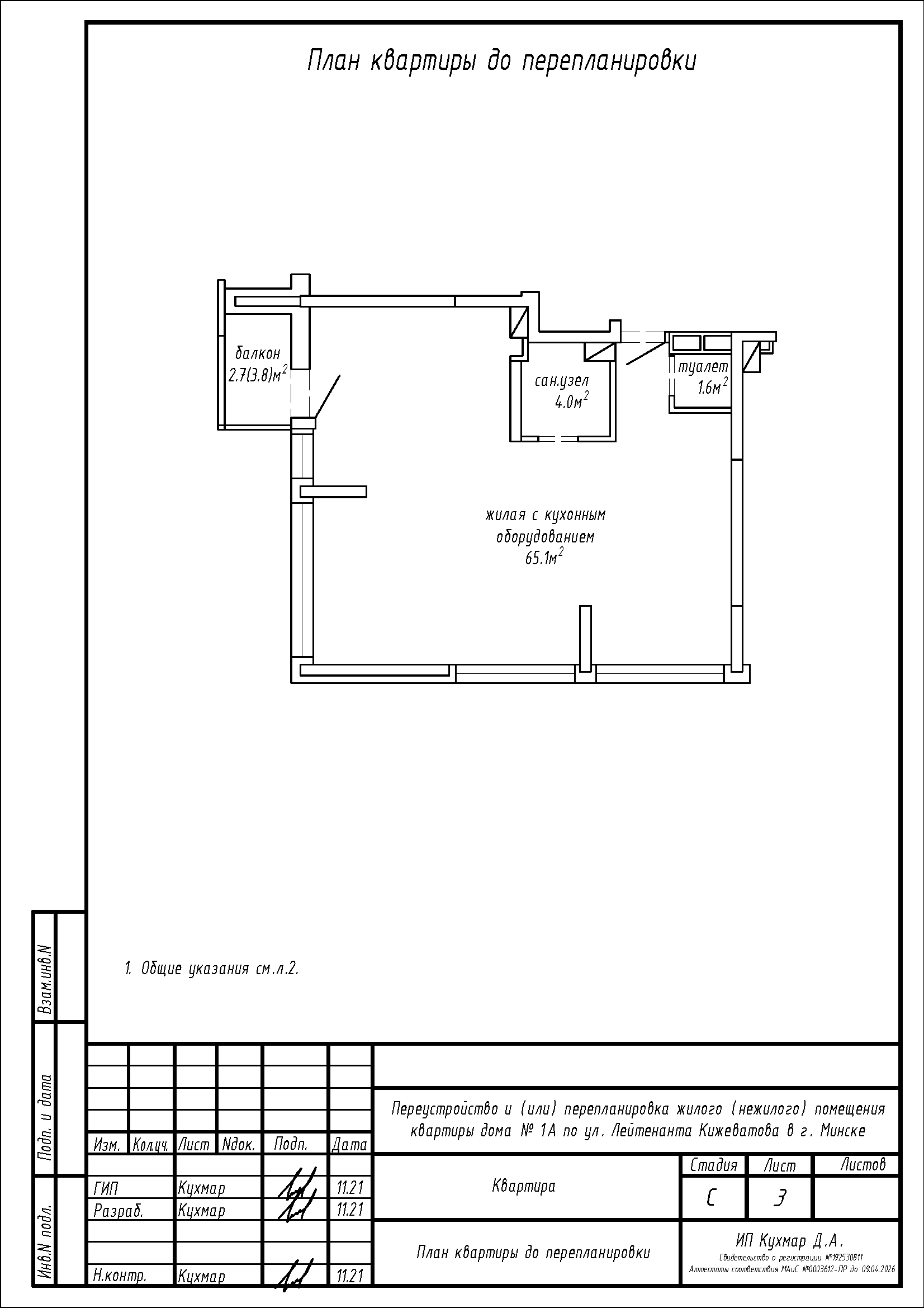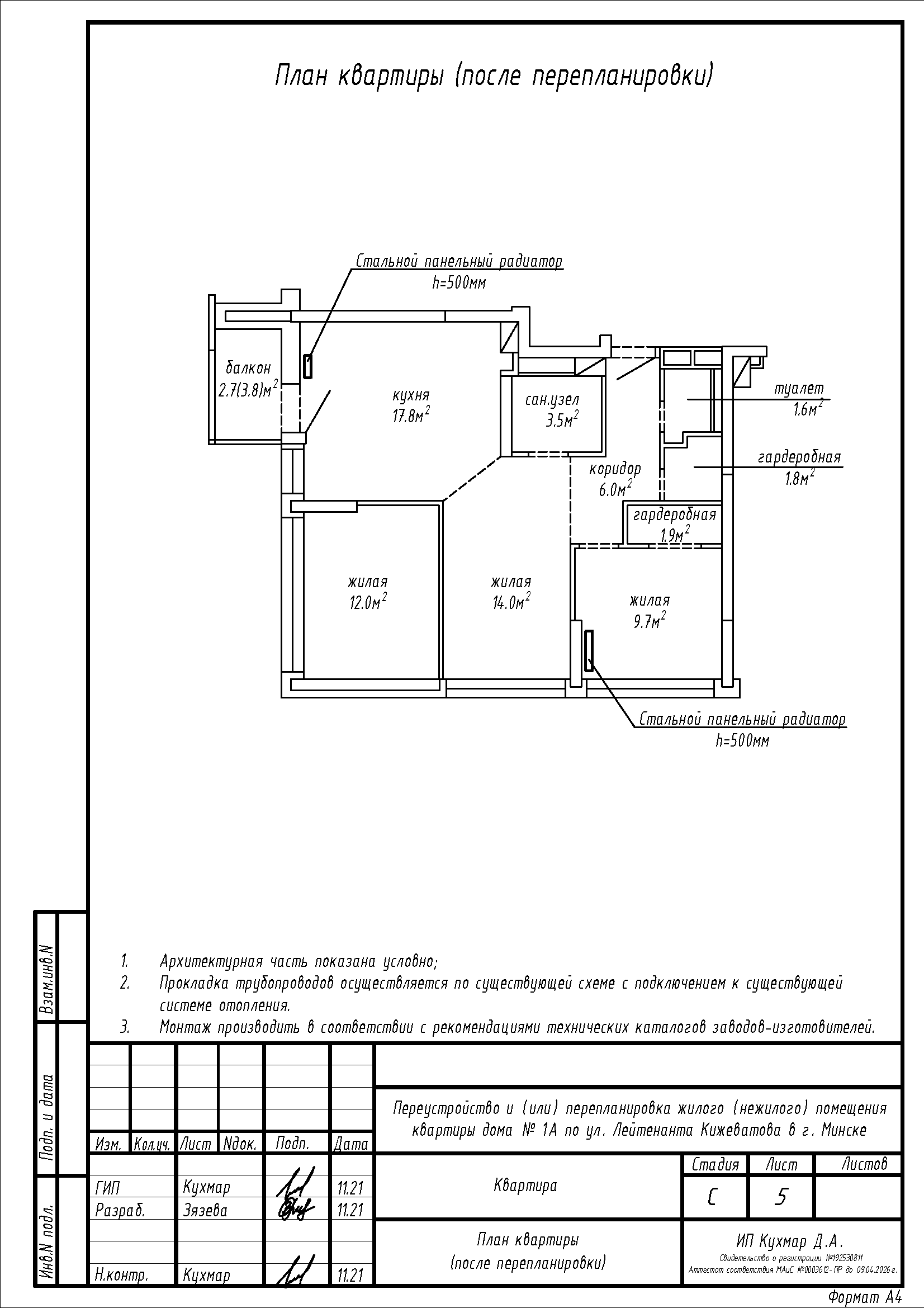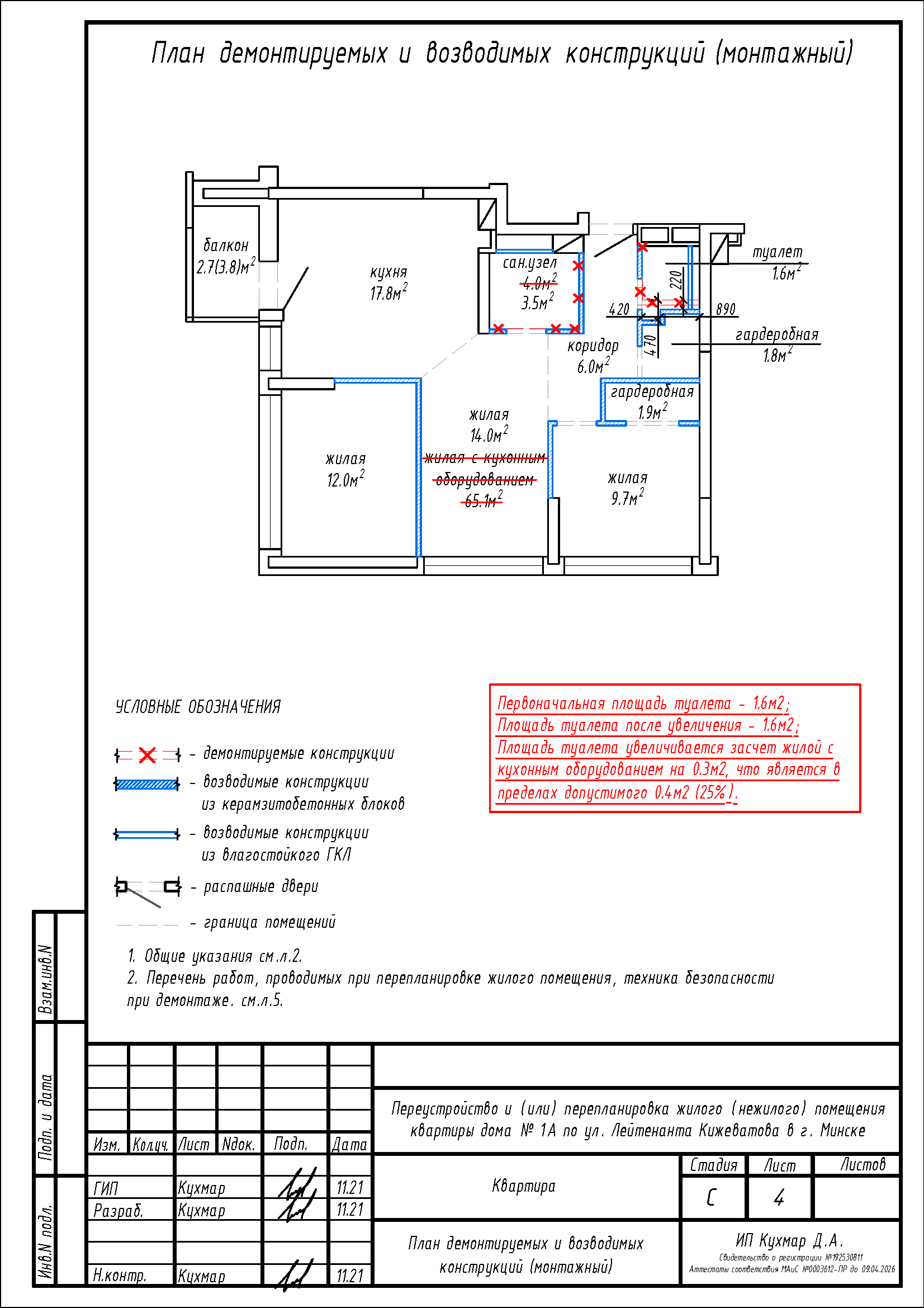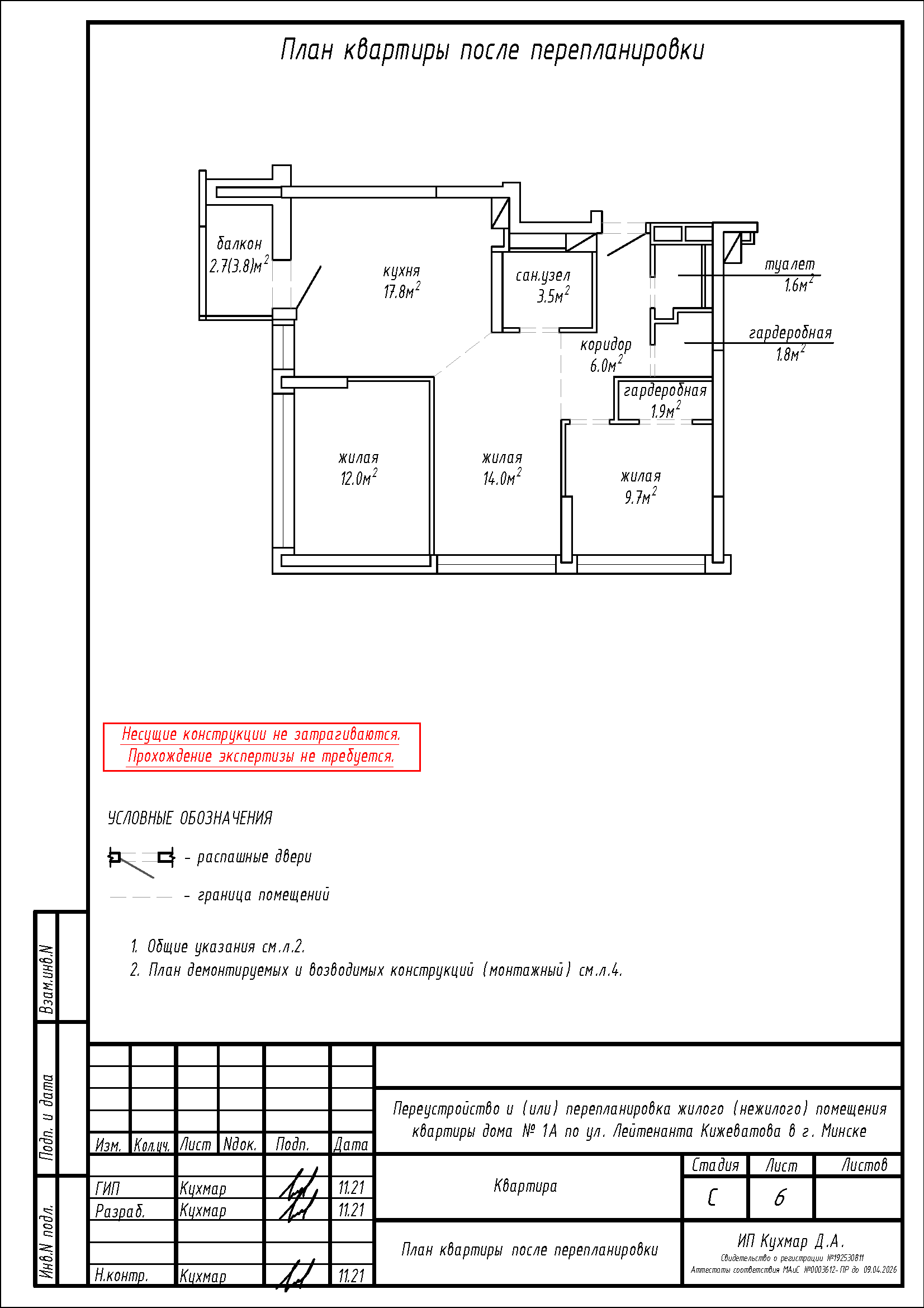 Перепланировка квартиры по ул. Кижеватова, 1А в ЖК «Минск Мир»