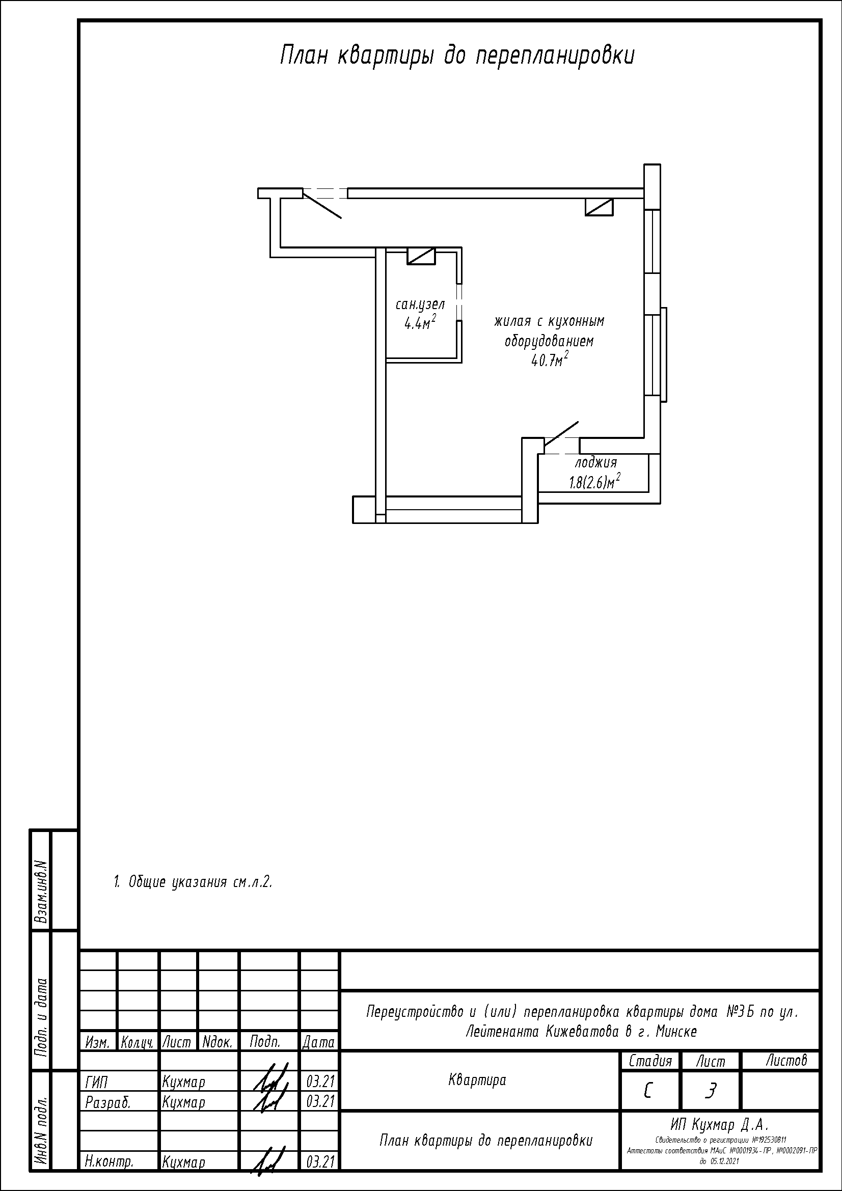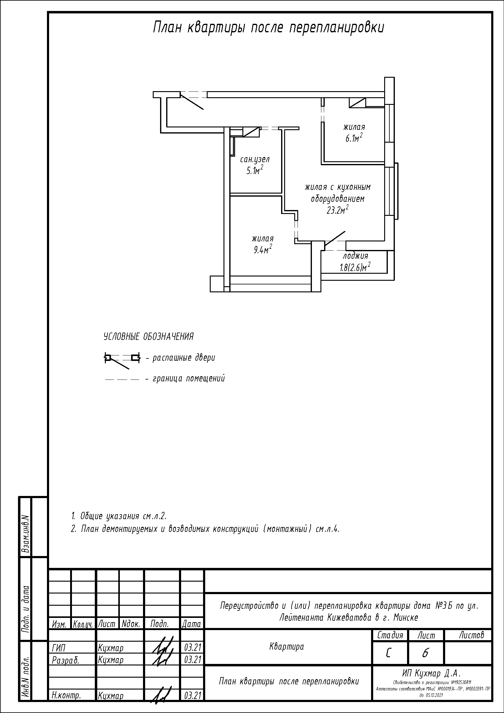 Перепланировка квартиры по ул. Кижеватова, 3Б в ЖК «Минск Мир»