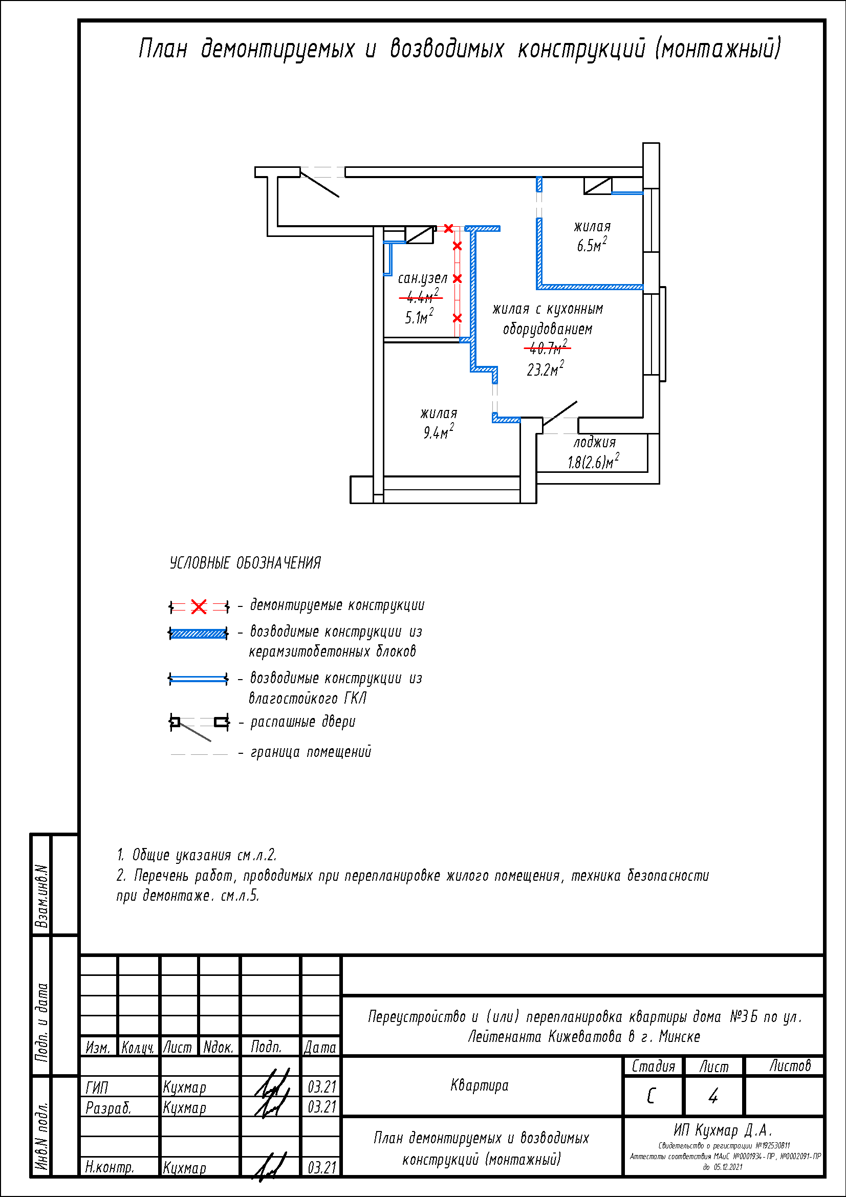Разработка проектной документации для согласования перепланировки, реконструкции квартиры.