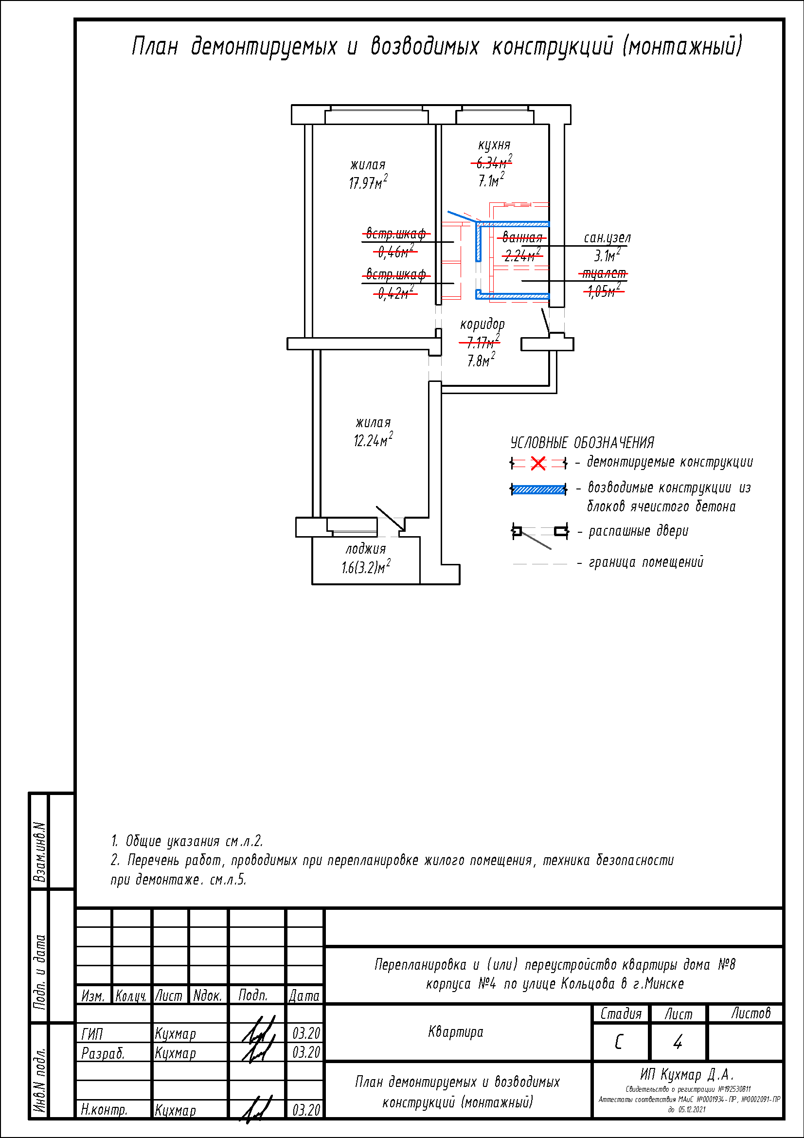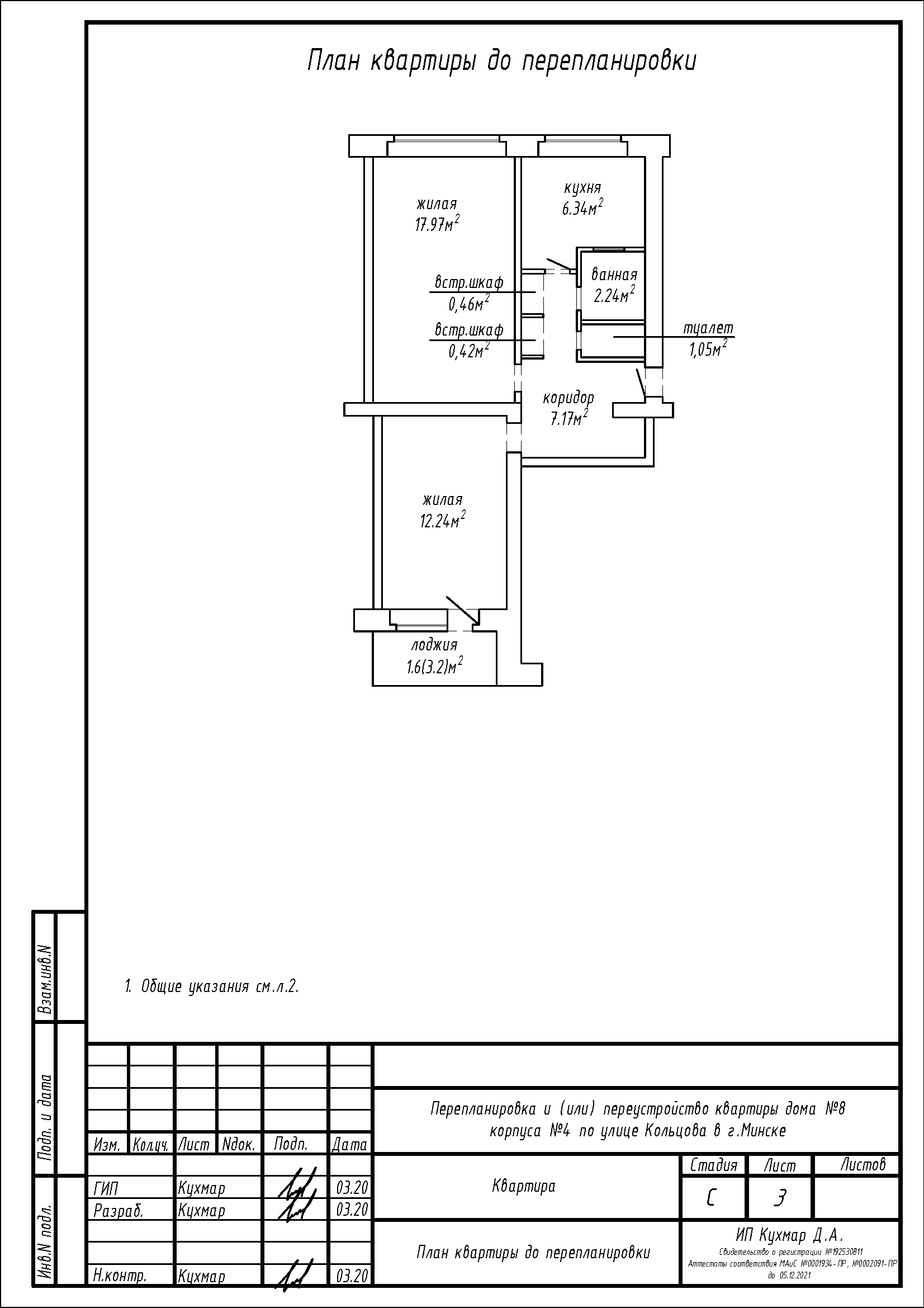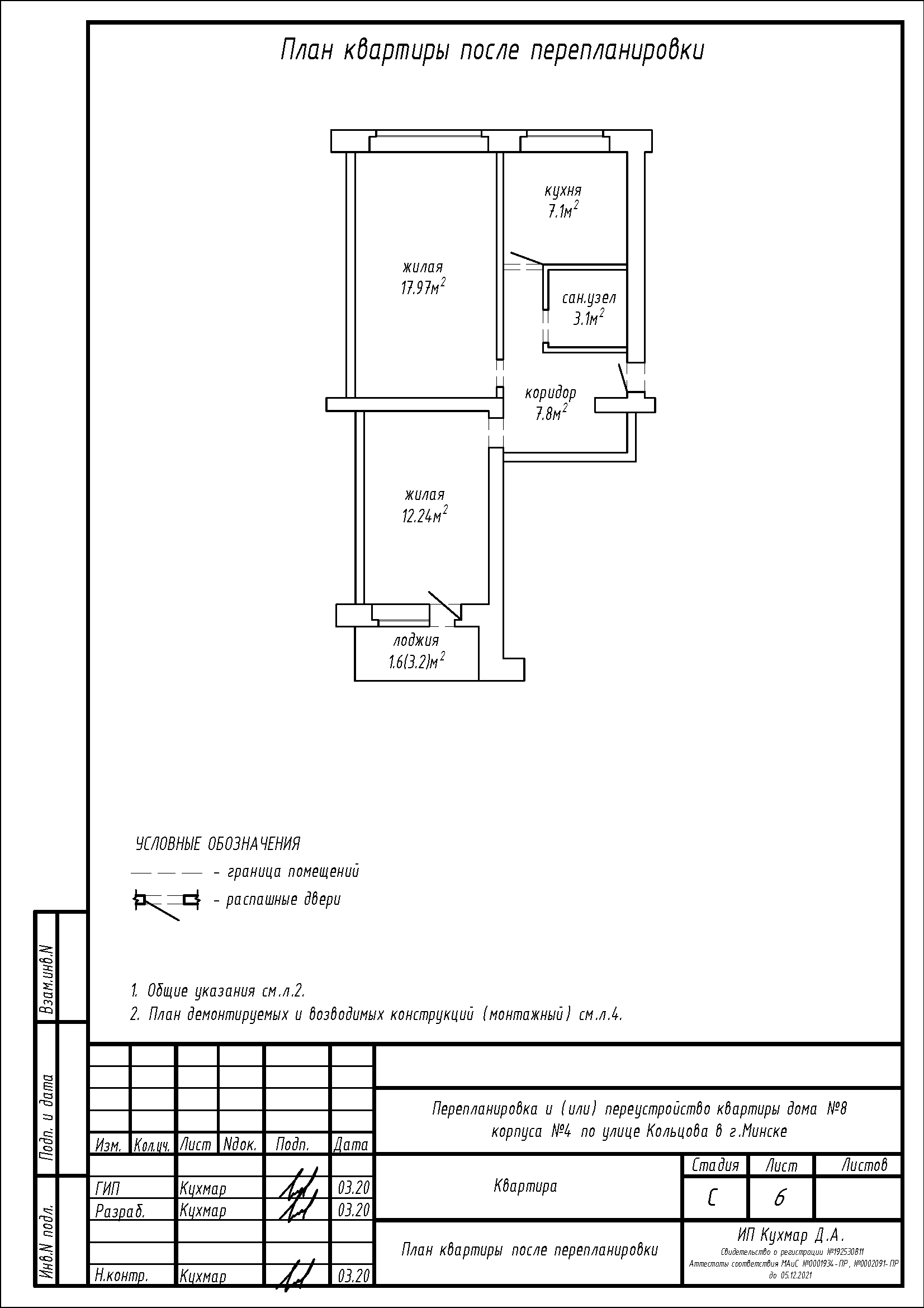 Перепланировка квартиры по ул. Кольцова 8 к.4 в г.Минске