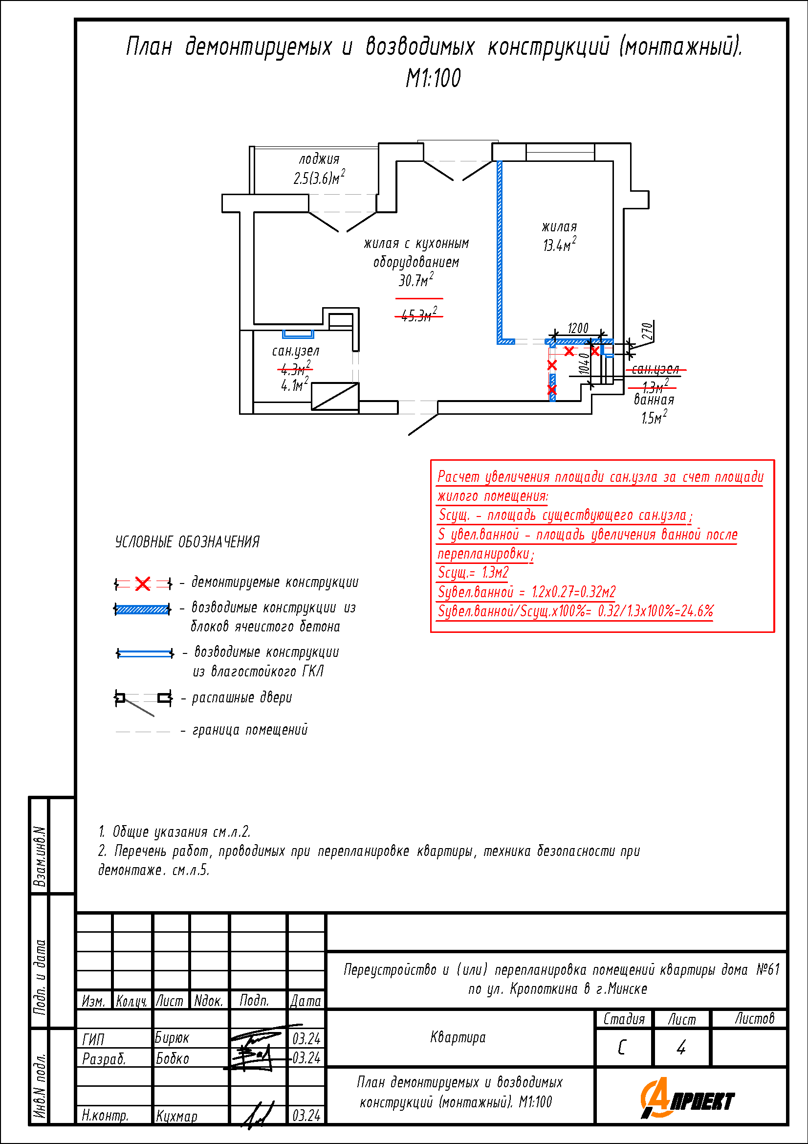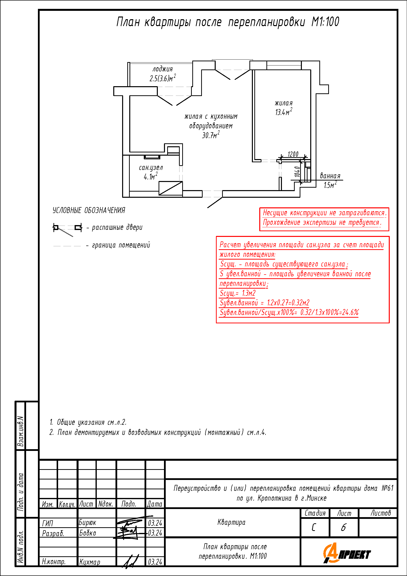 - Увеличение площади сан.узла за счет части площади жилого, но не более 25%;