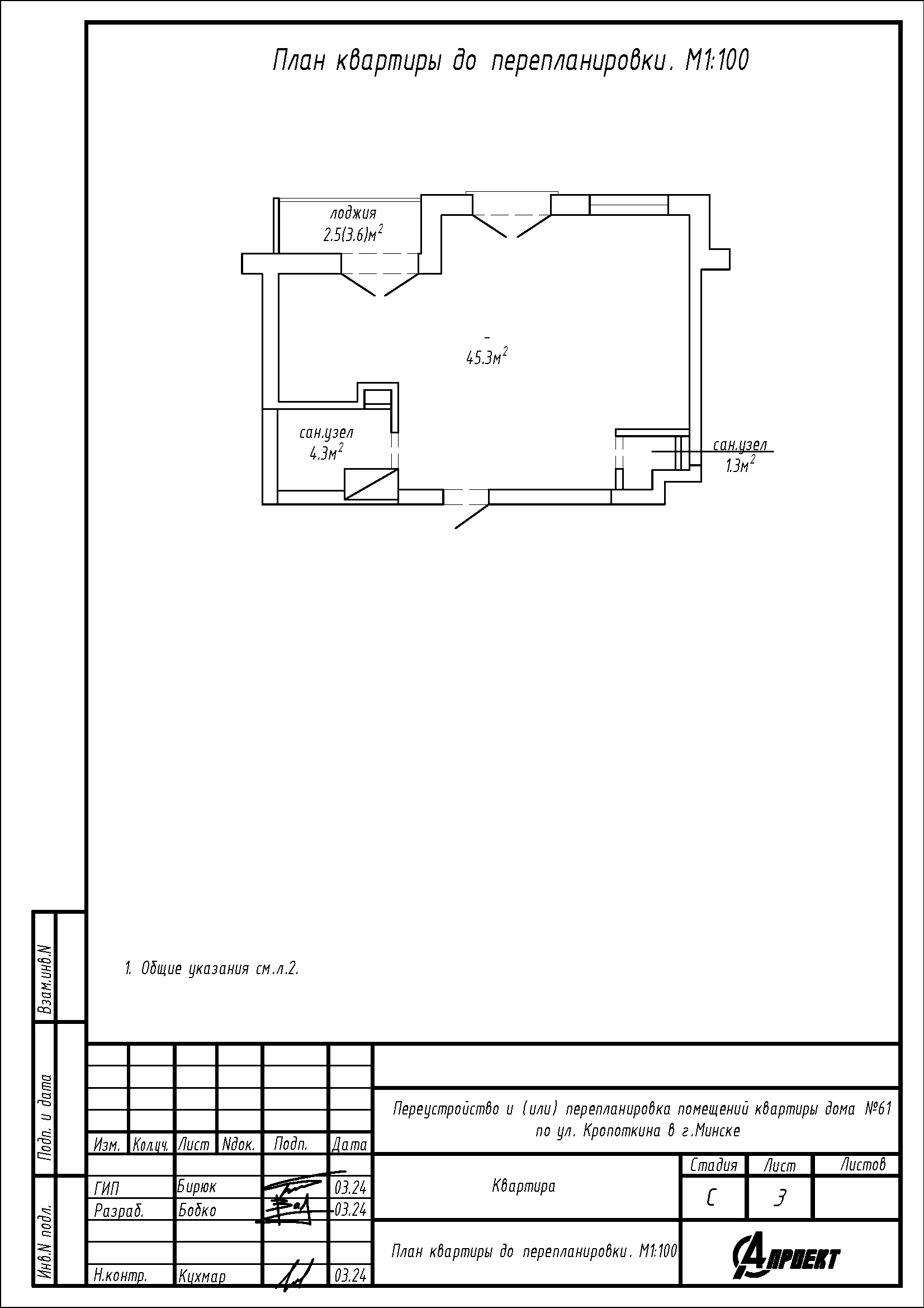 Перепланировка квартиры по ул. Кропоткина, 61 в ЖК «Фарфоровый»