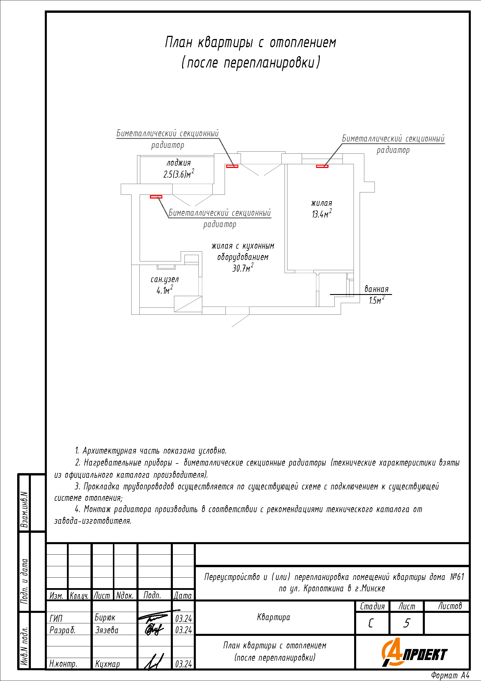 - Перенос отопительного прибора.