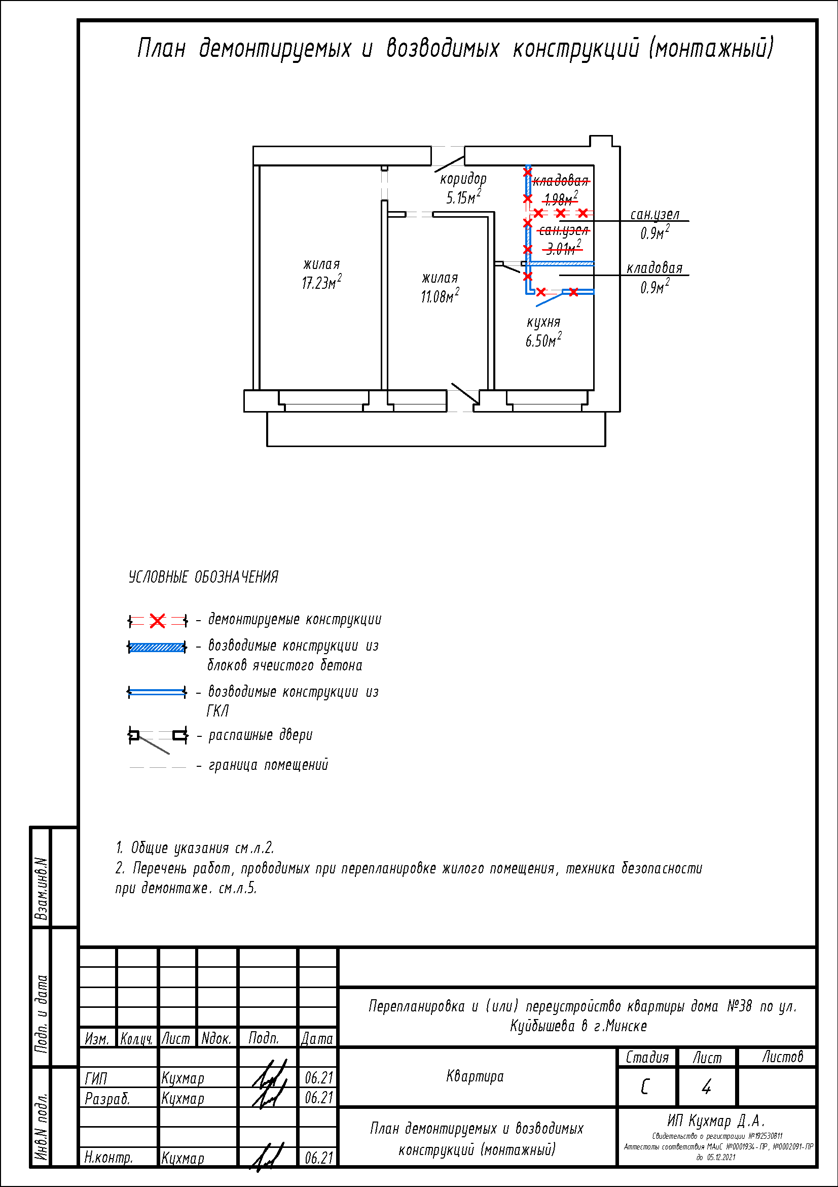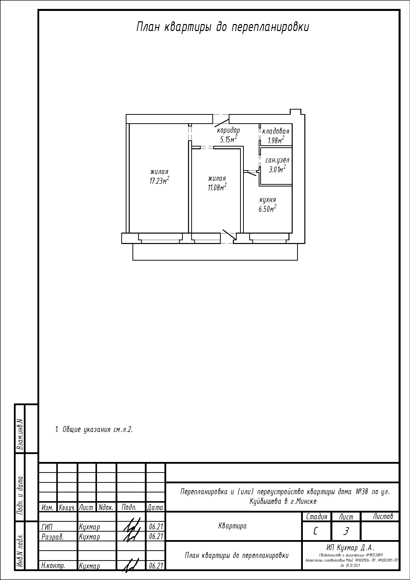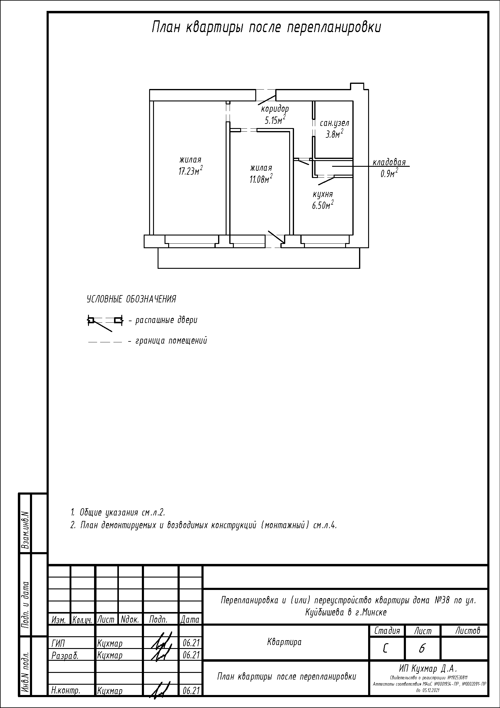Перепланировка квартиры по ул. Куйбышева, 48 в г.Минске