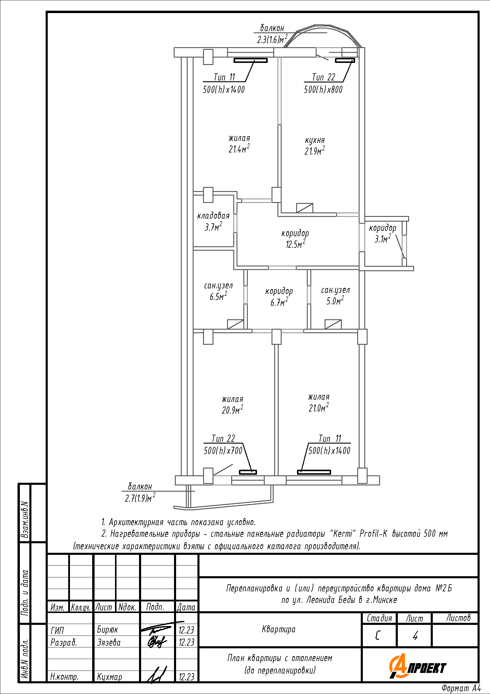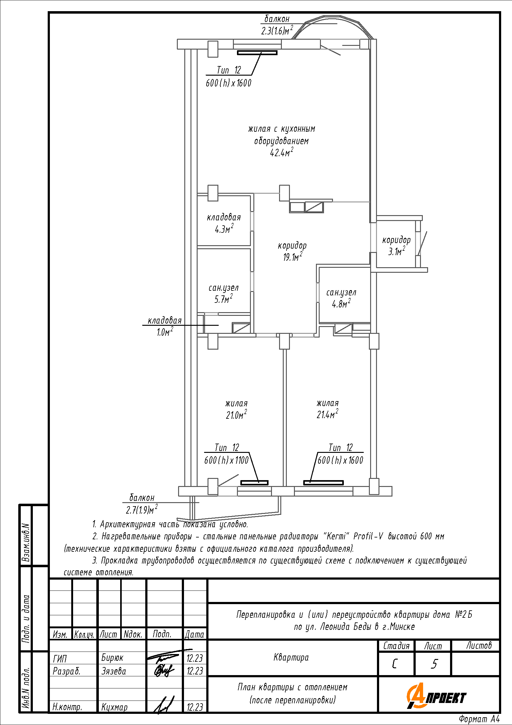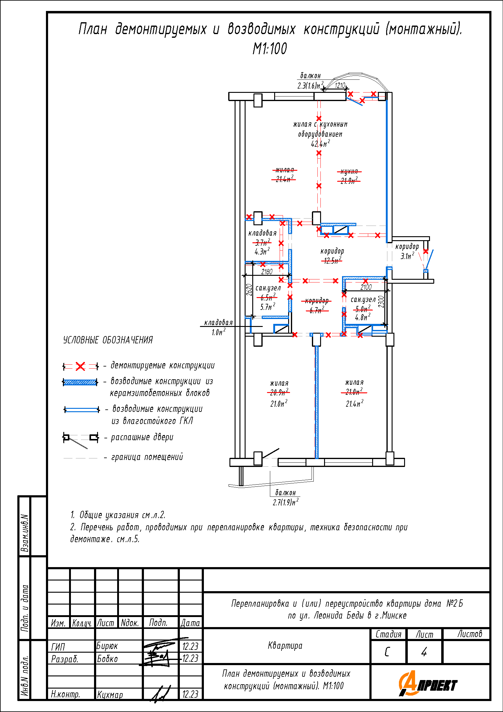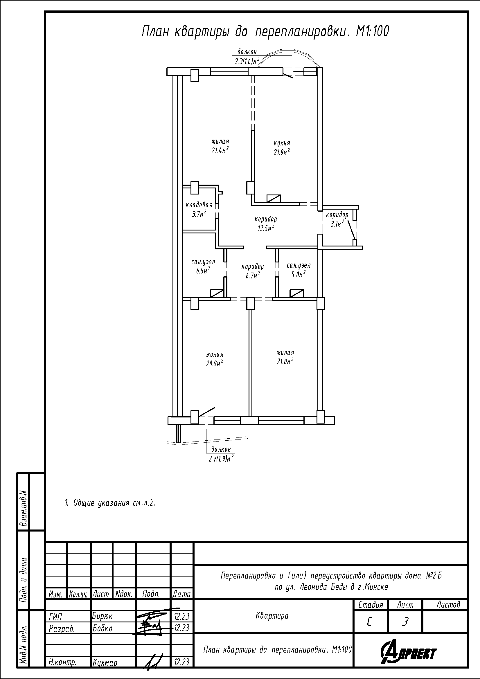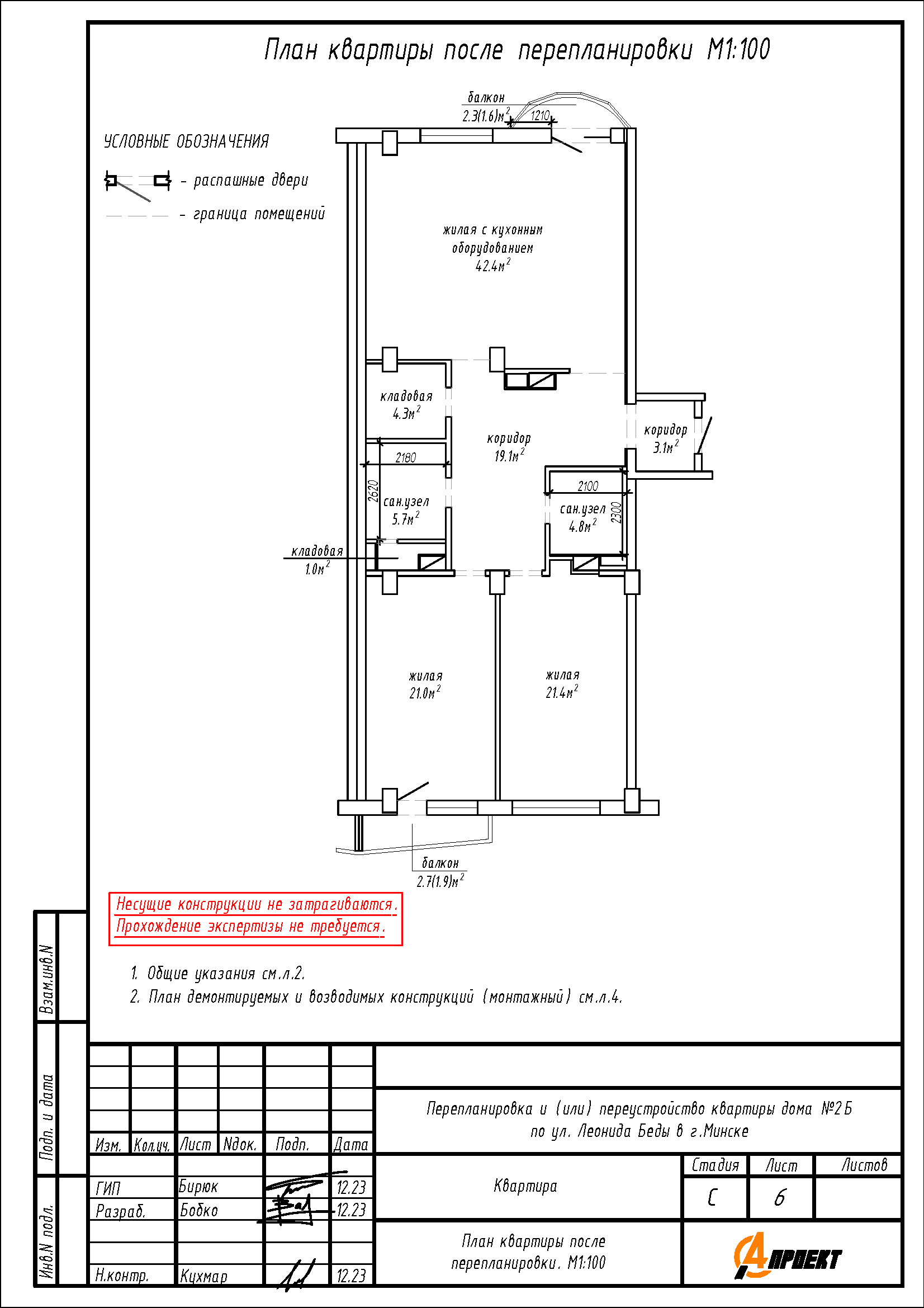 Перепланировка квартиры по ул. Леонида Беды, 2Б в г. Минске