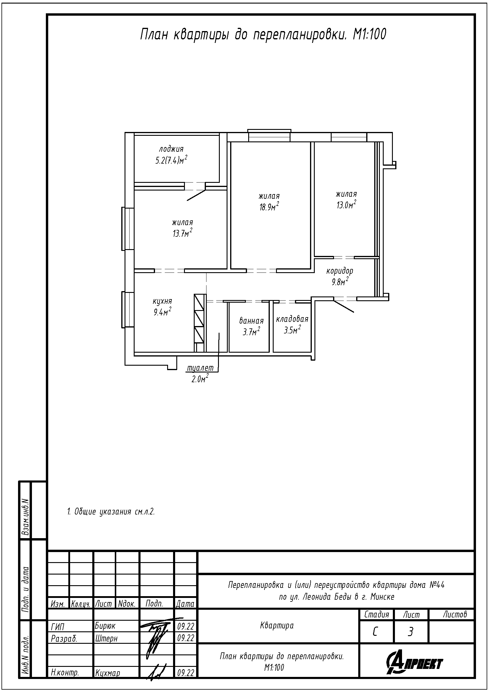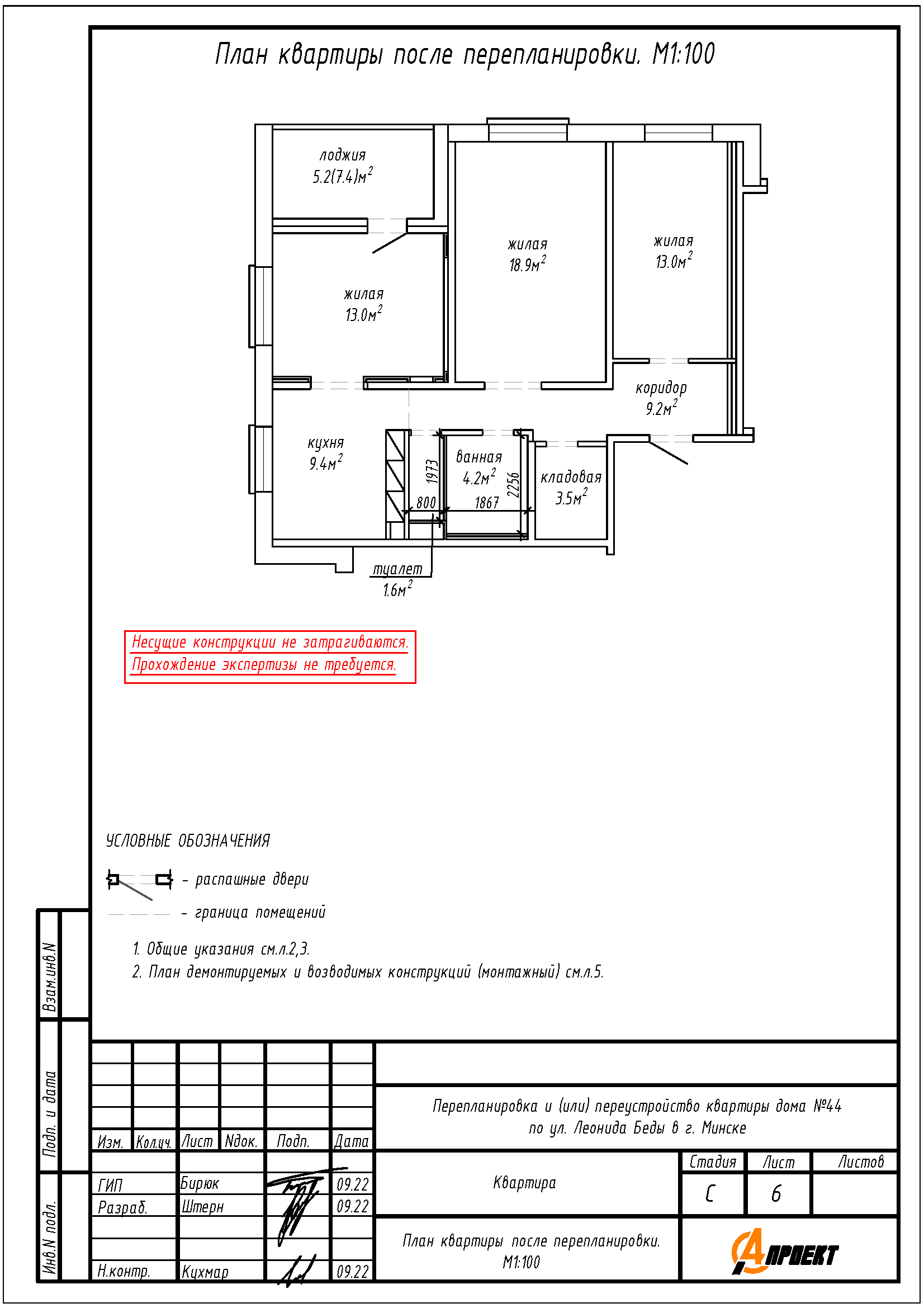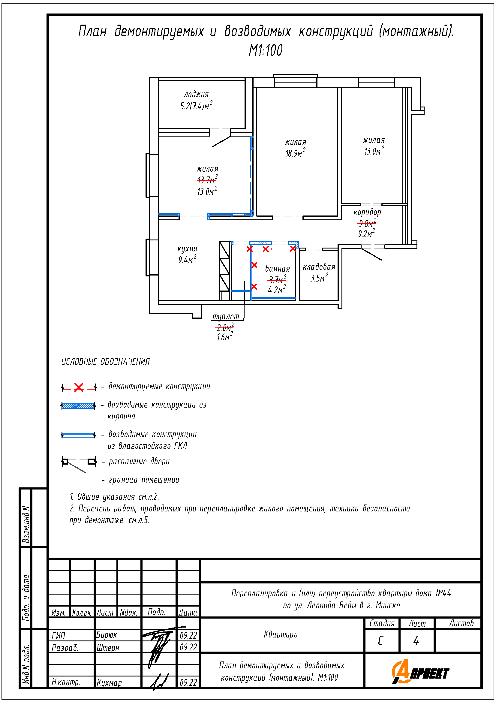 Перепланировка квартиры по ул. Леонида Беды, 44 в ЖК «4 Сезона»
