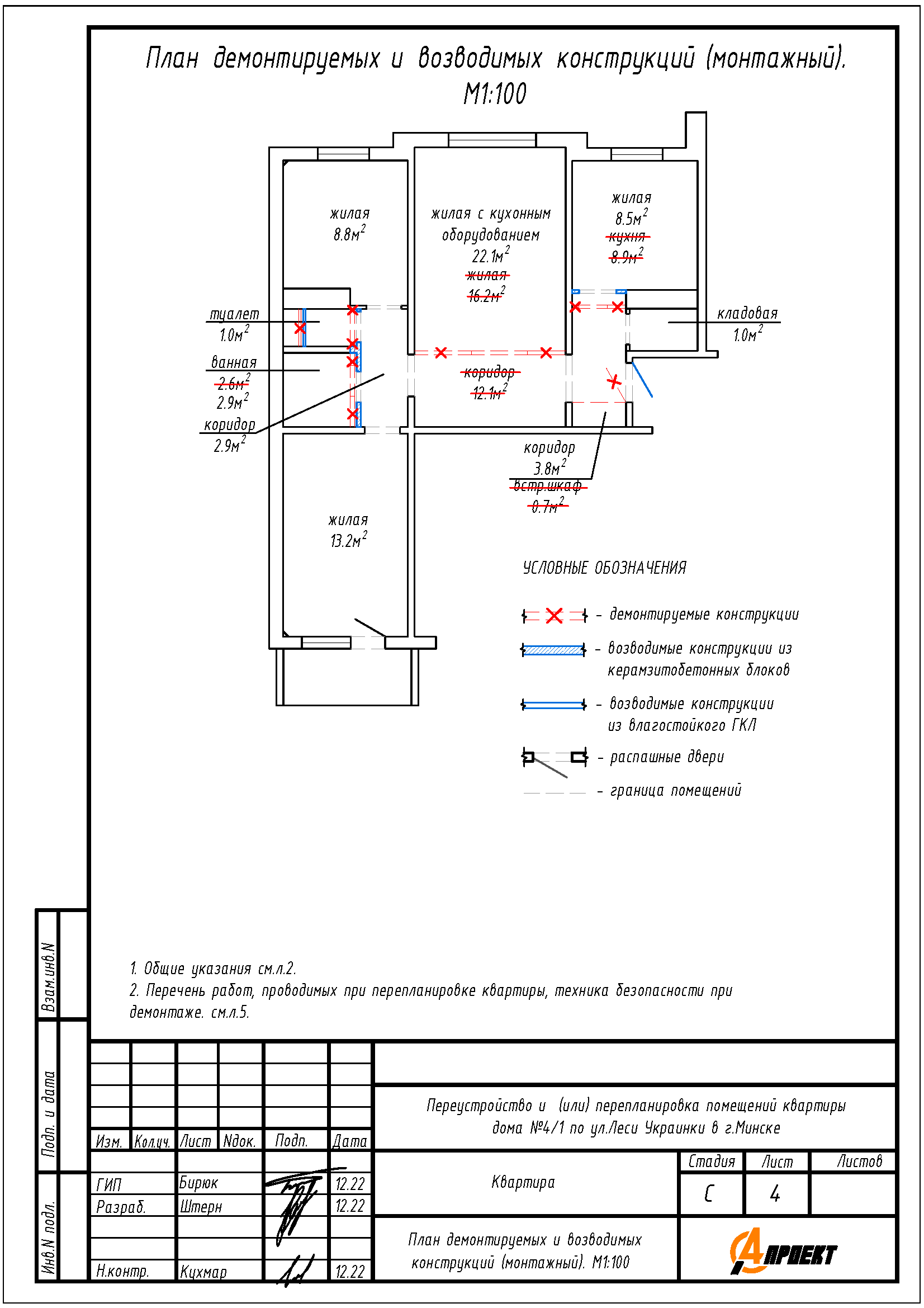 Перепланировка квартиры по ул. Леси Украинки, д.4 корп.1