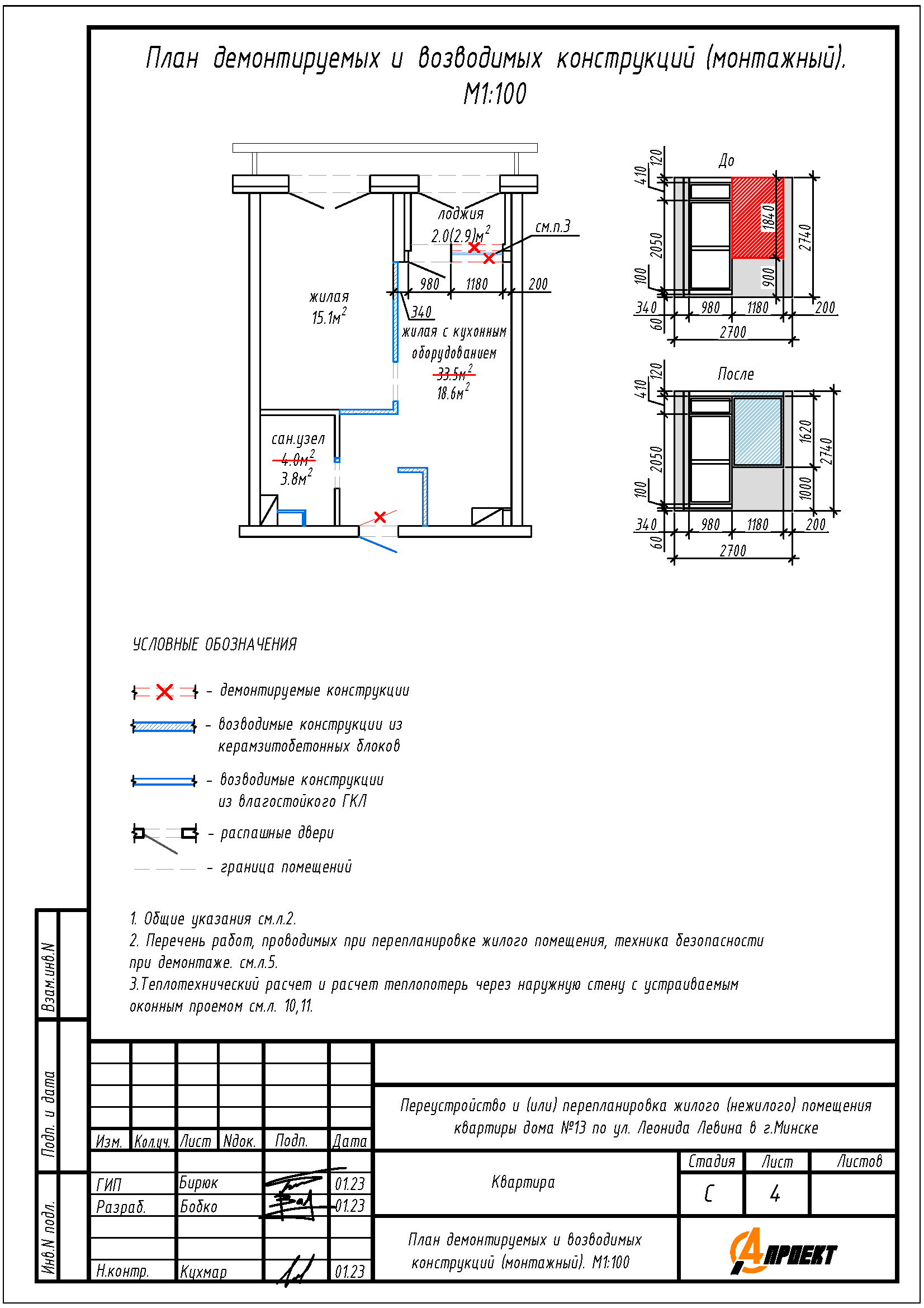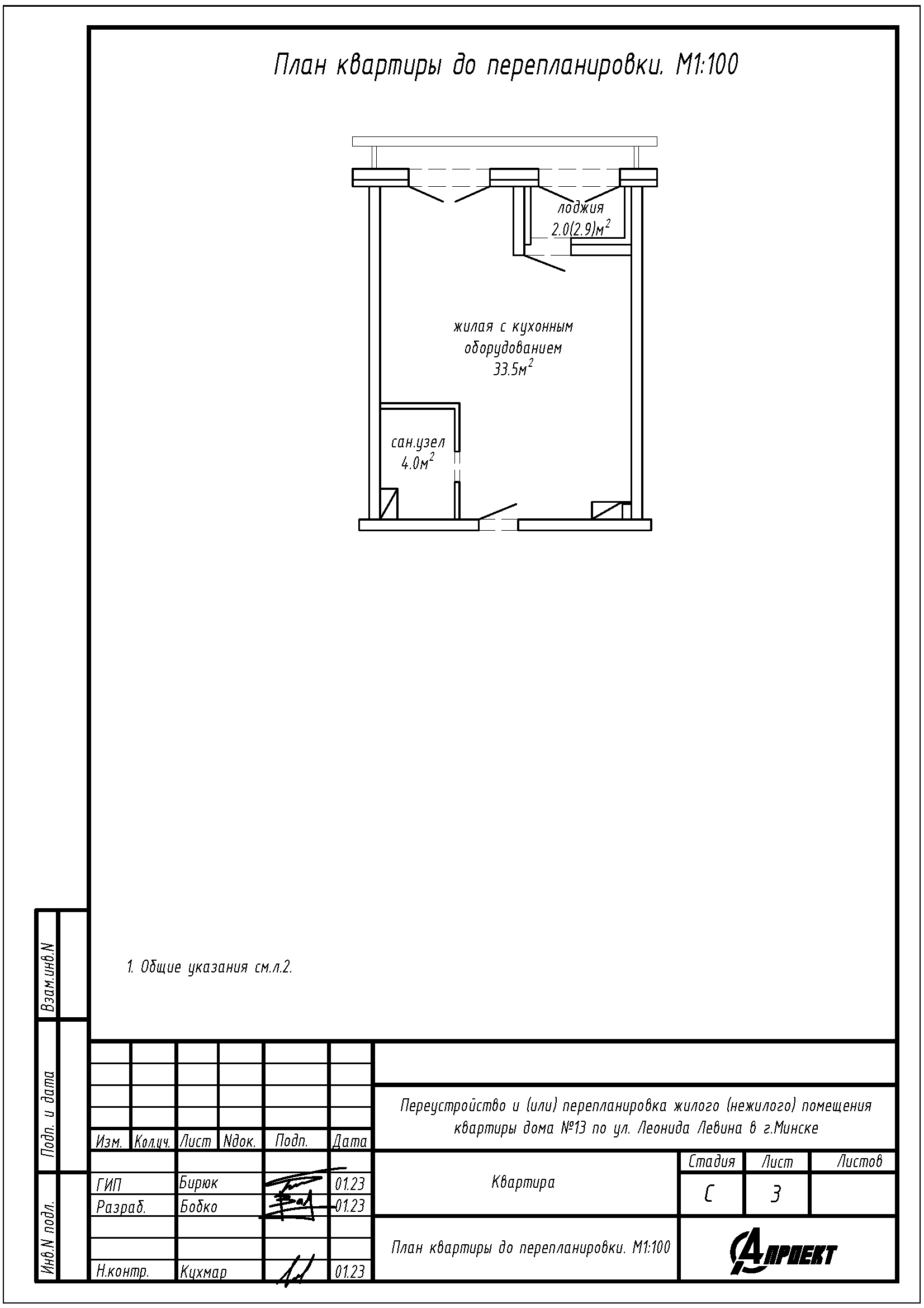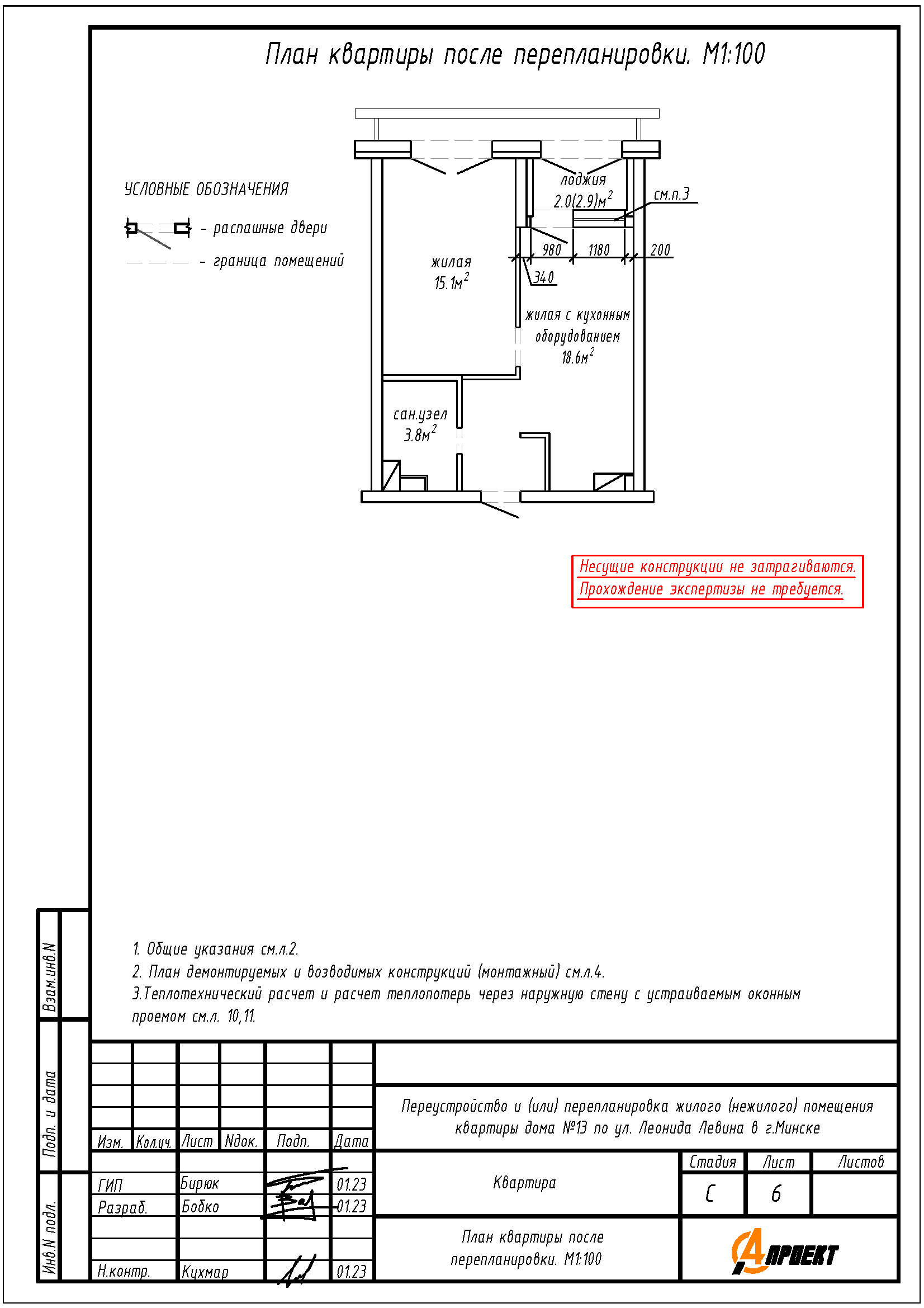 Перепланировка квартиры по ул. Левина, 13 в ЖК «Минск Мир»