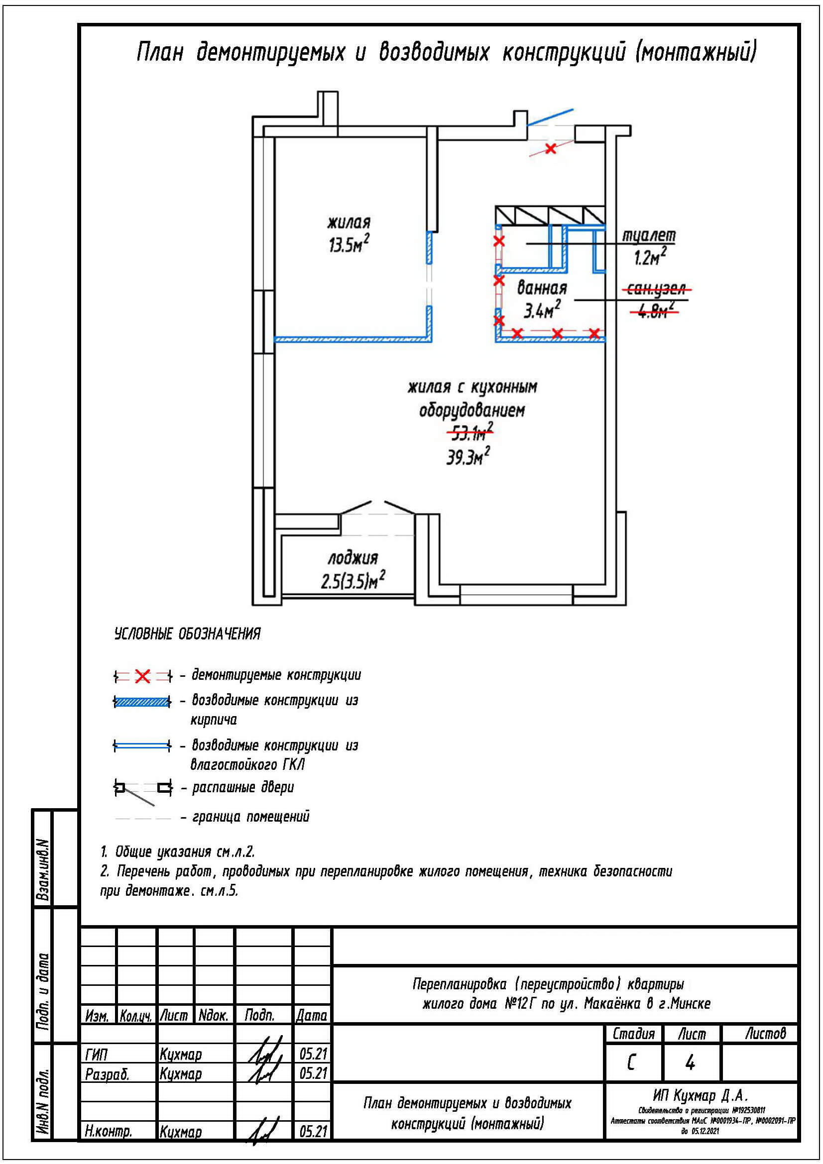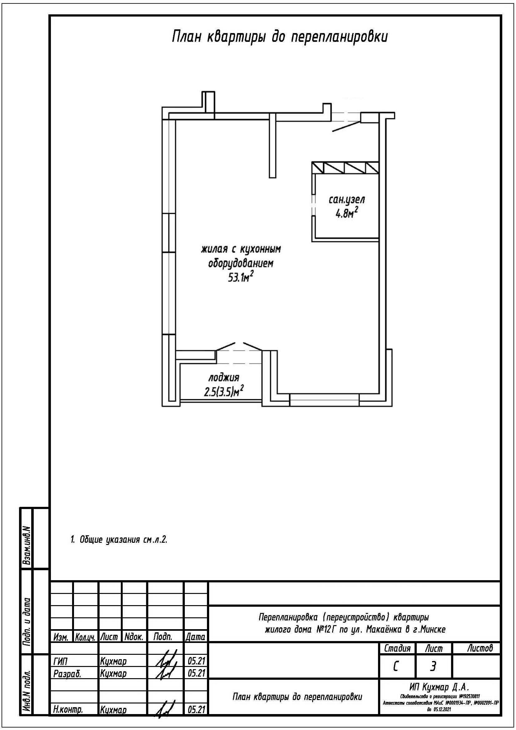Перепланировка квартиры по ул. Макаёнка, 12Г в ЖК «Vogue»