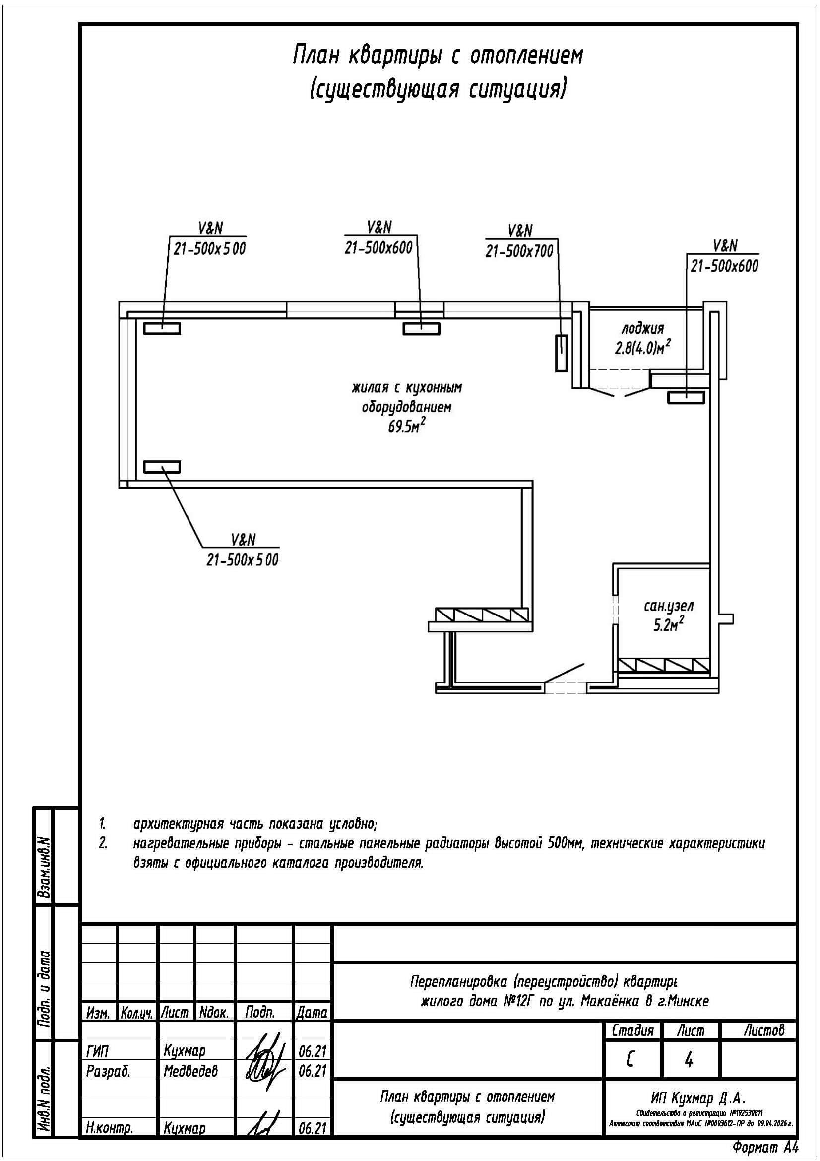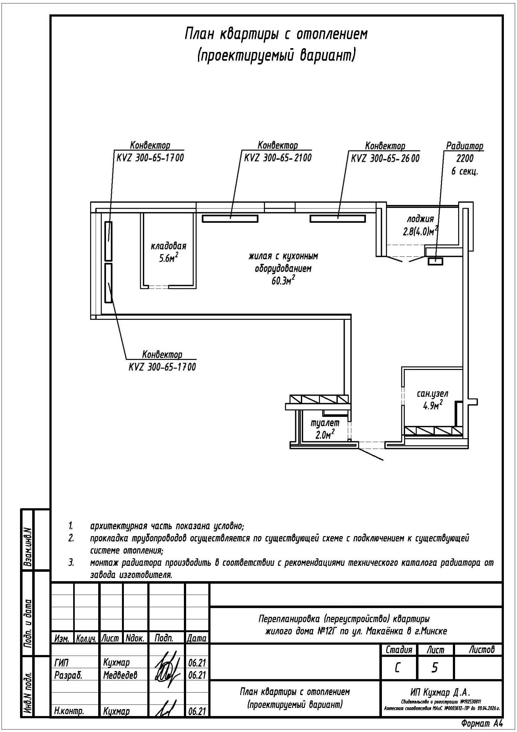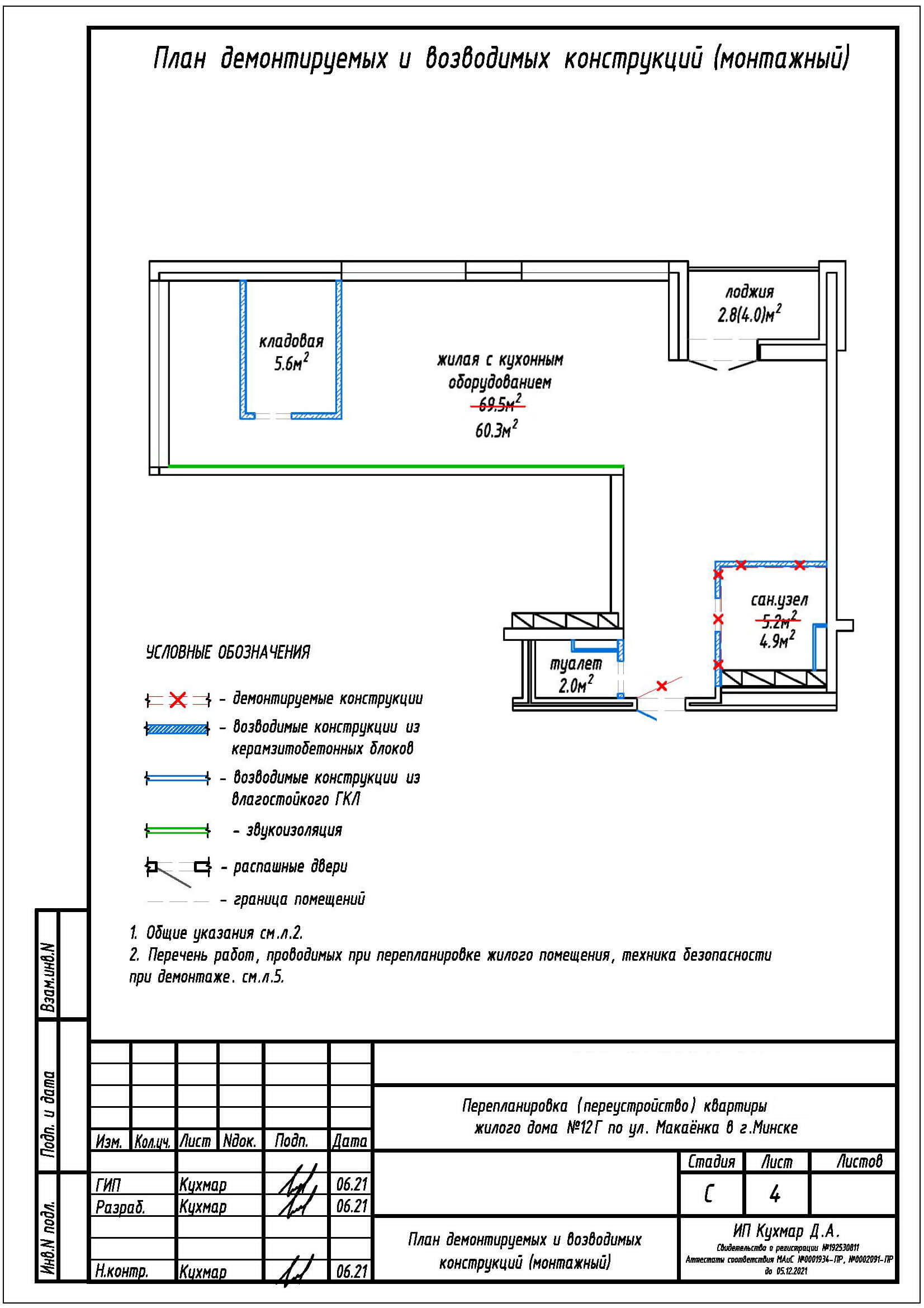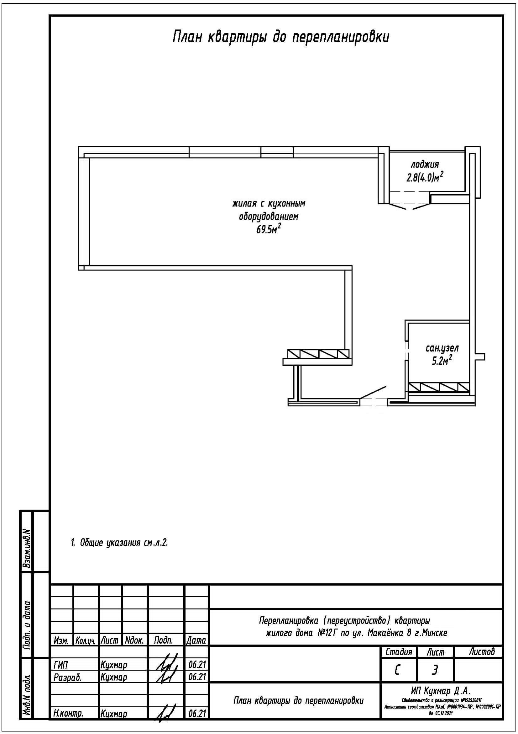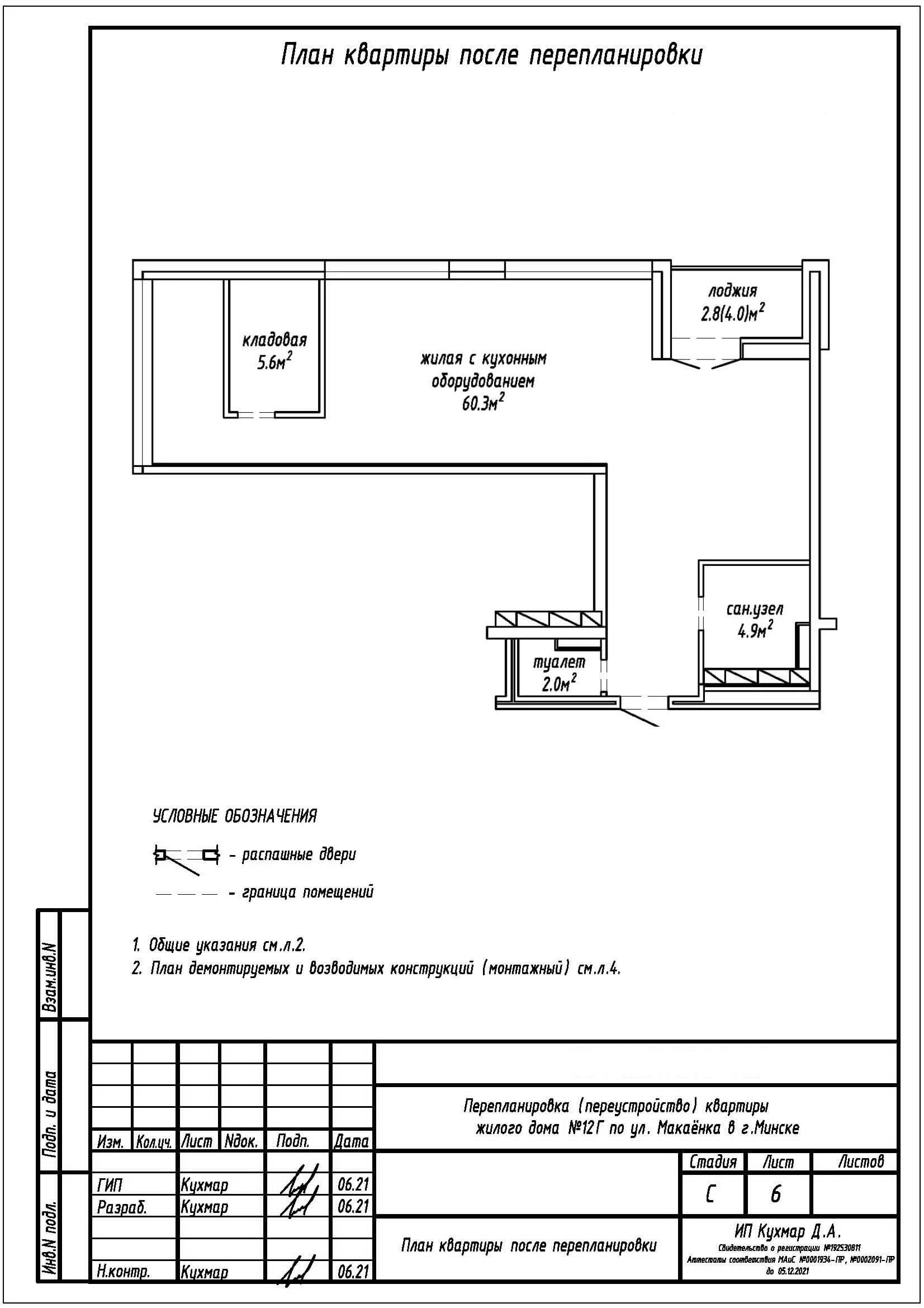 Перепланировка квартиры по ул. Макаёнка, 12Г в ЖК «Vogue»