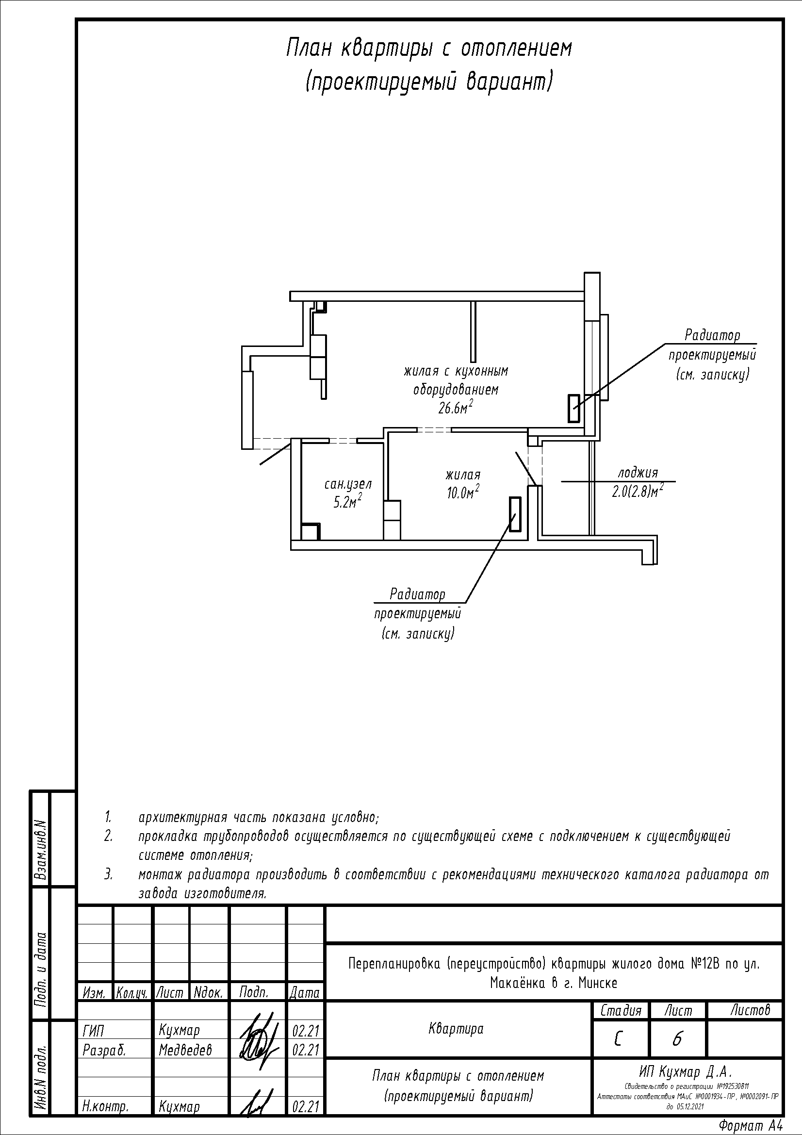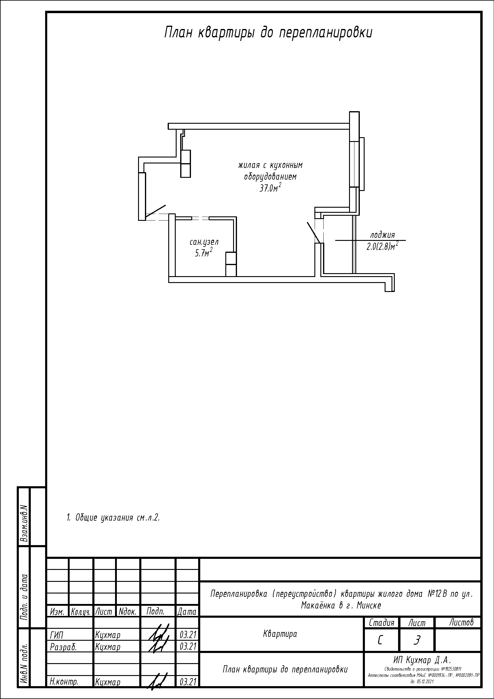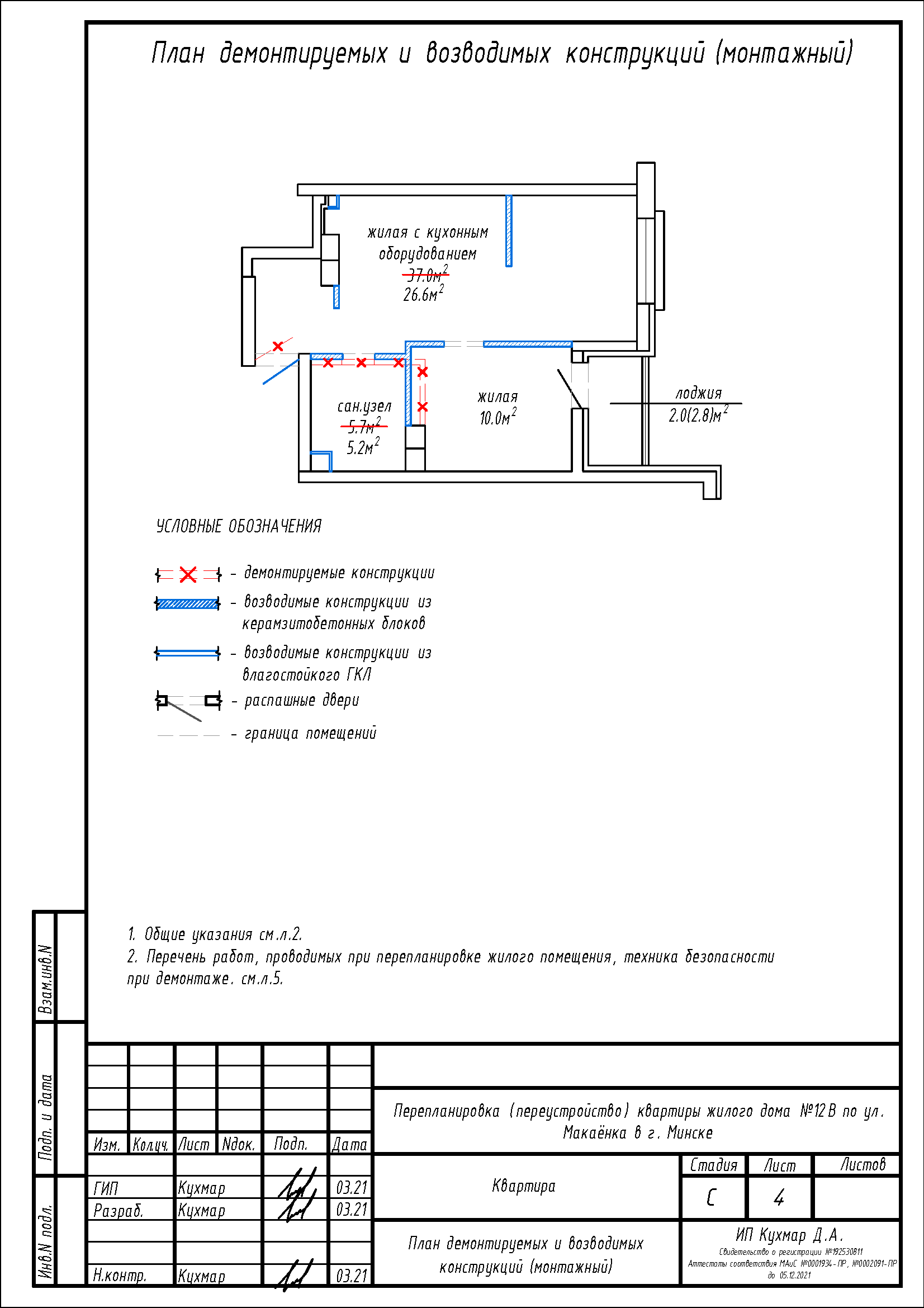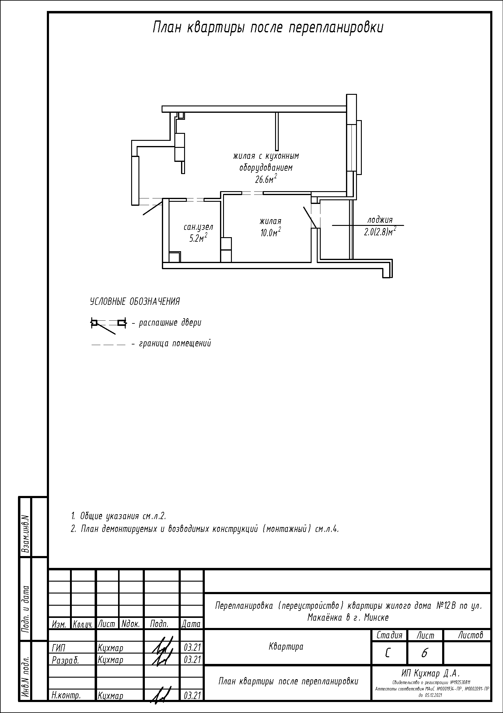 Перепланировка квартиры по ул. Макаёнка, 12В в ЖК «Vogue»