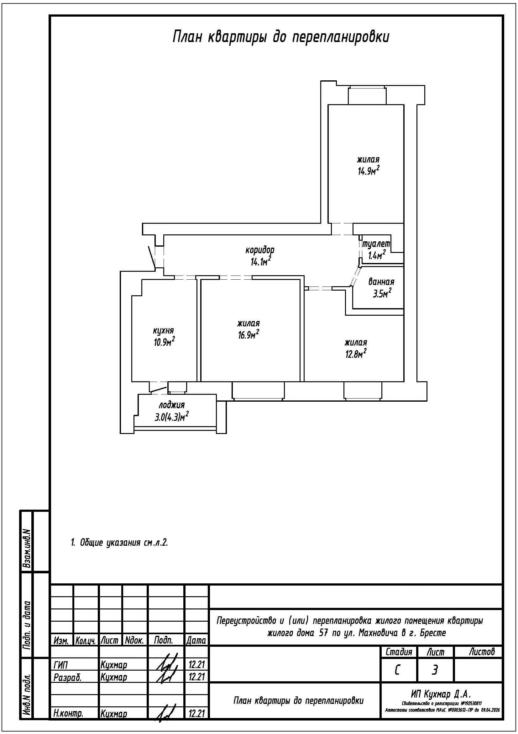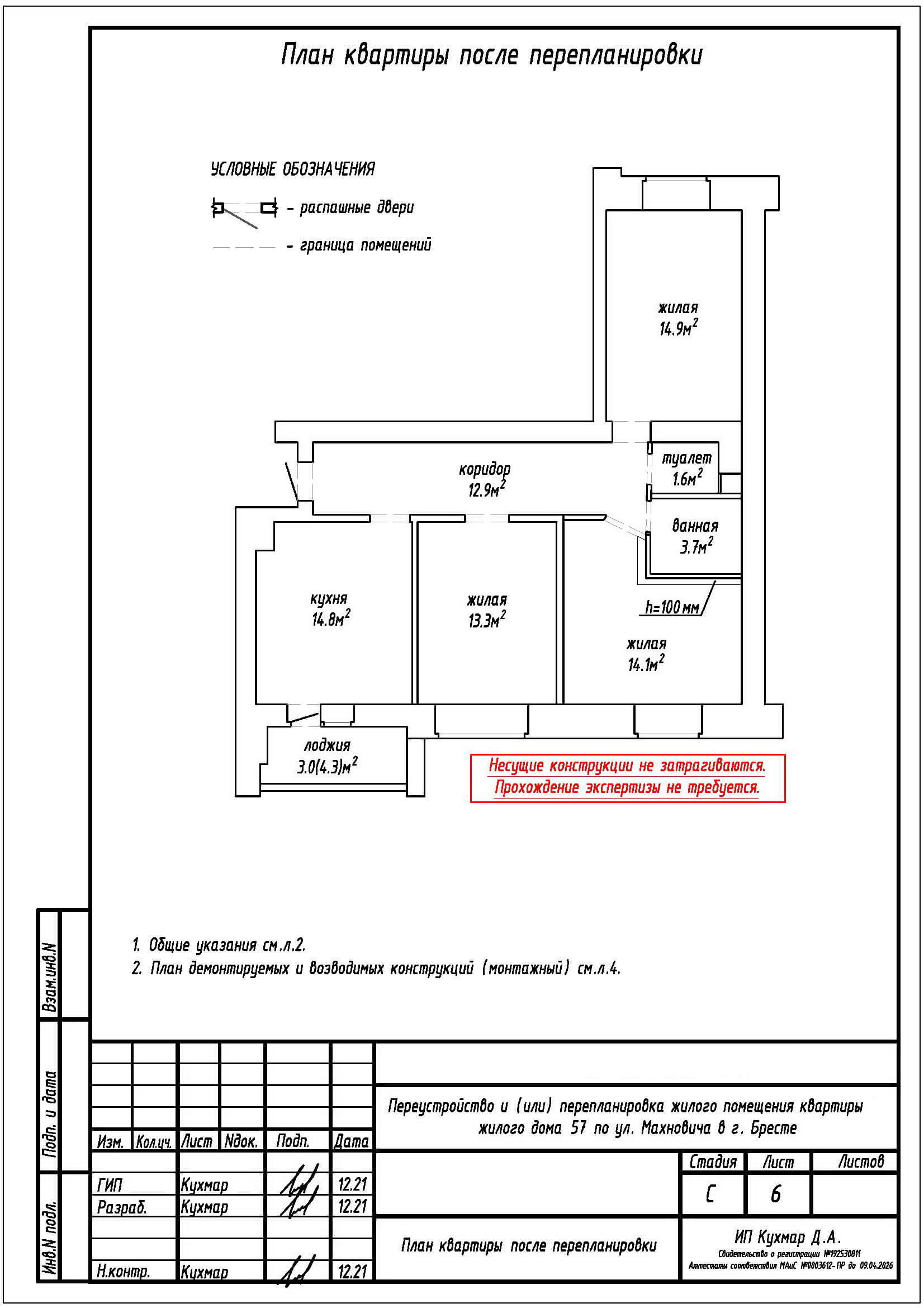 Перепланировка квартиры по ул. Махновича, 57 в г. Бресте