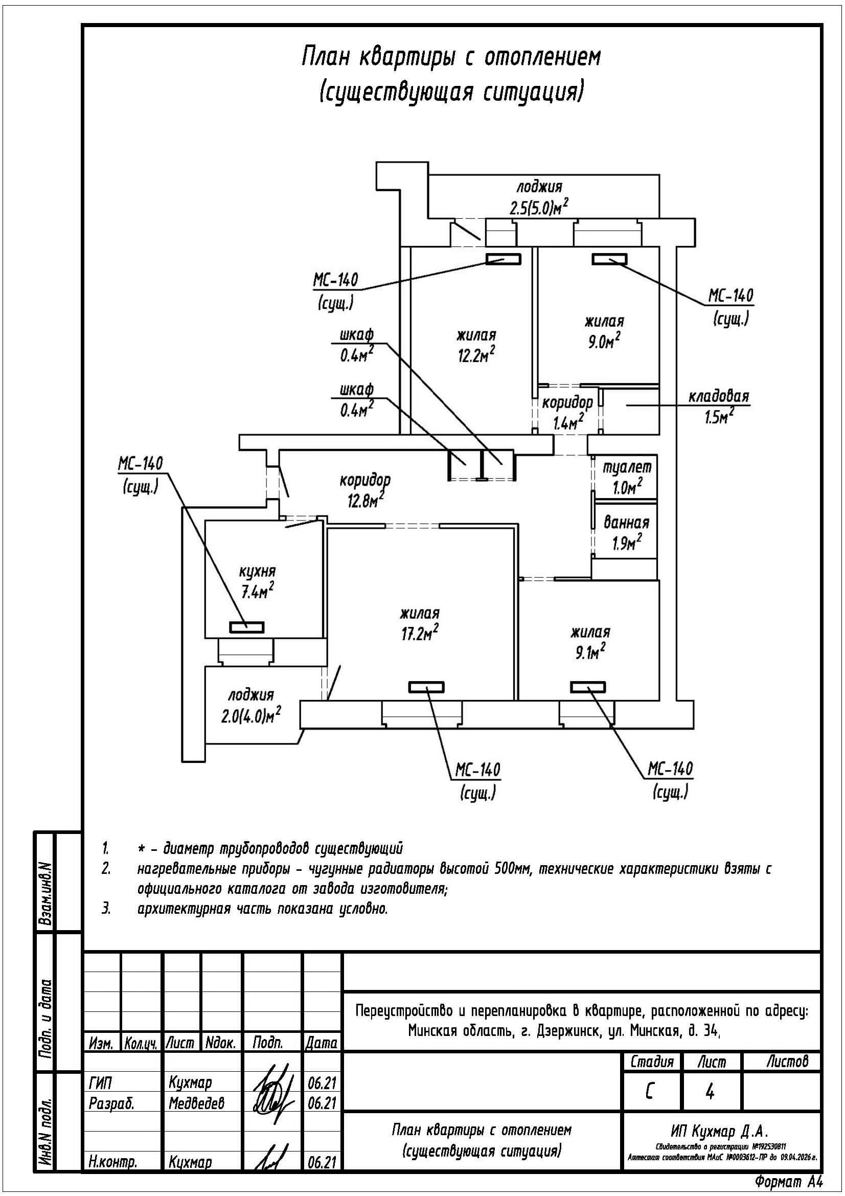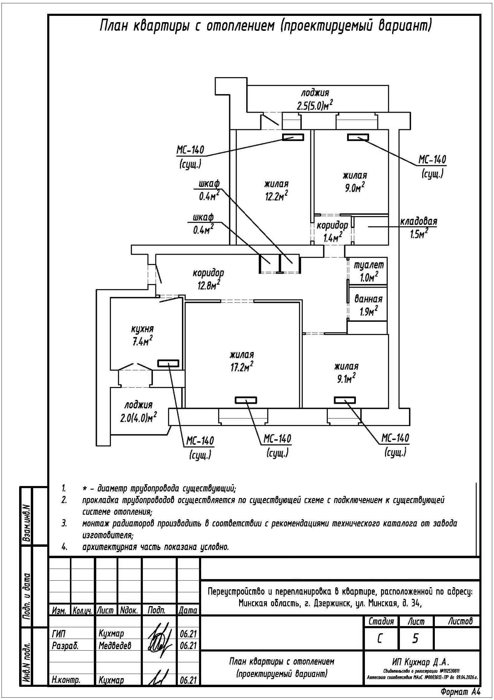 Перепланировка квартиры по ул. Тихая, 34 в г. Дзержинске