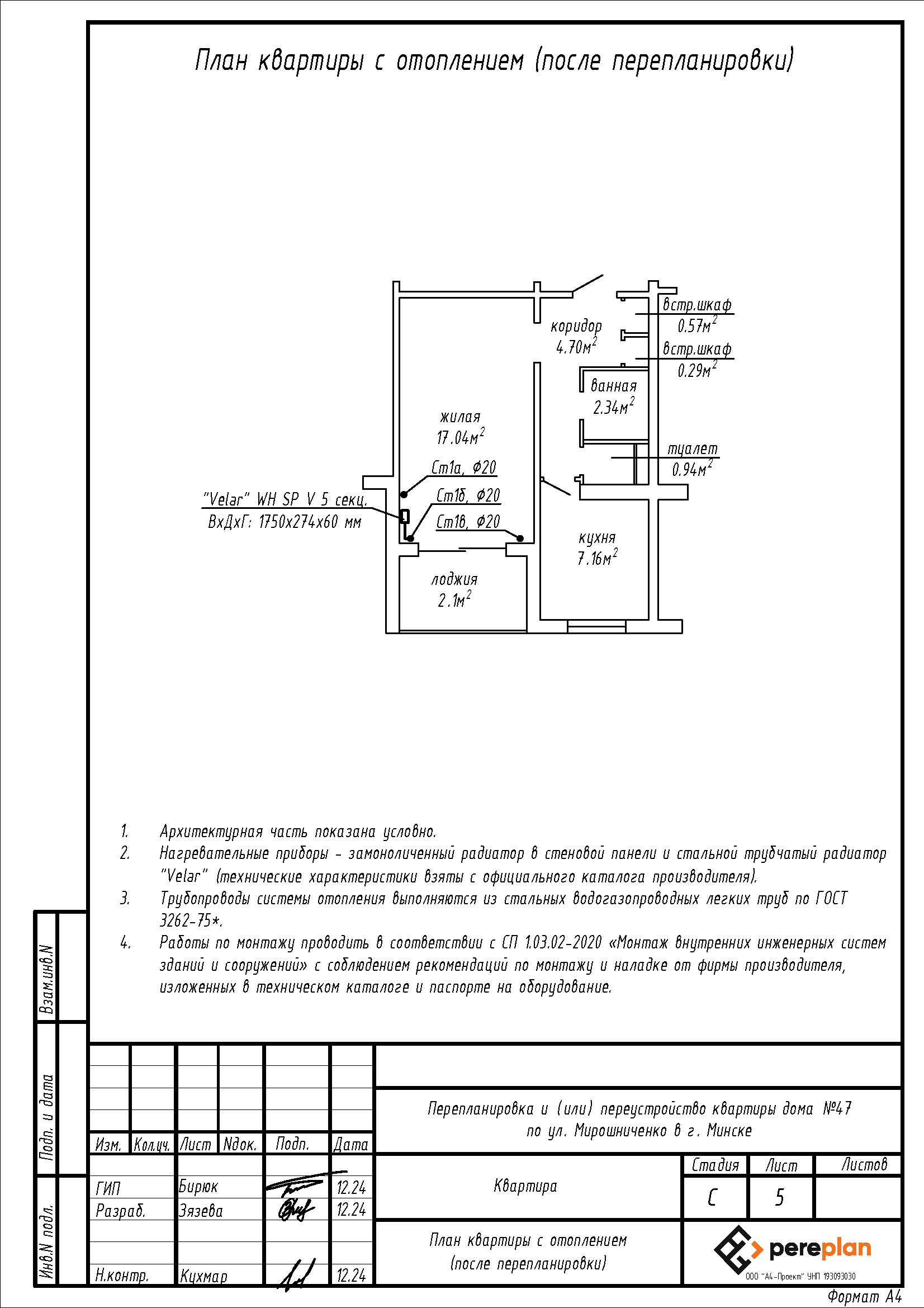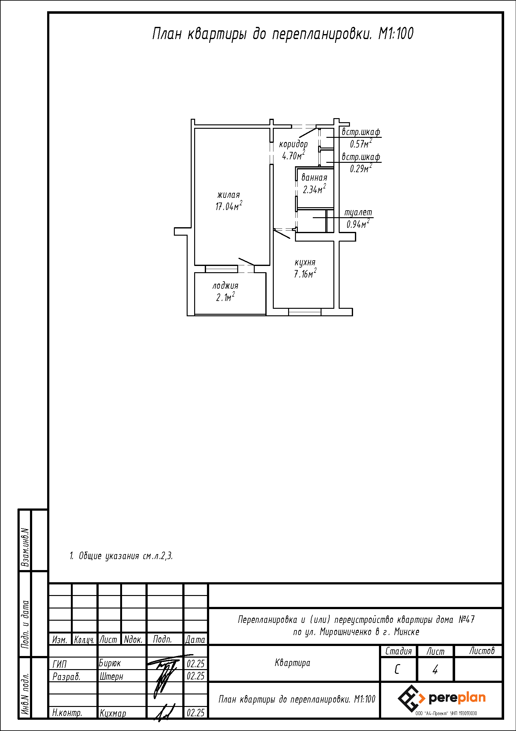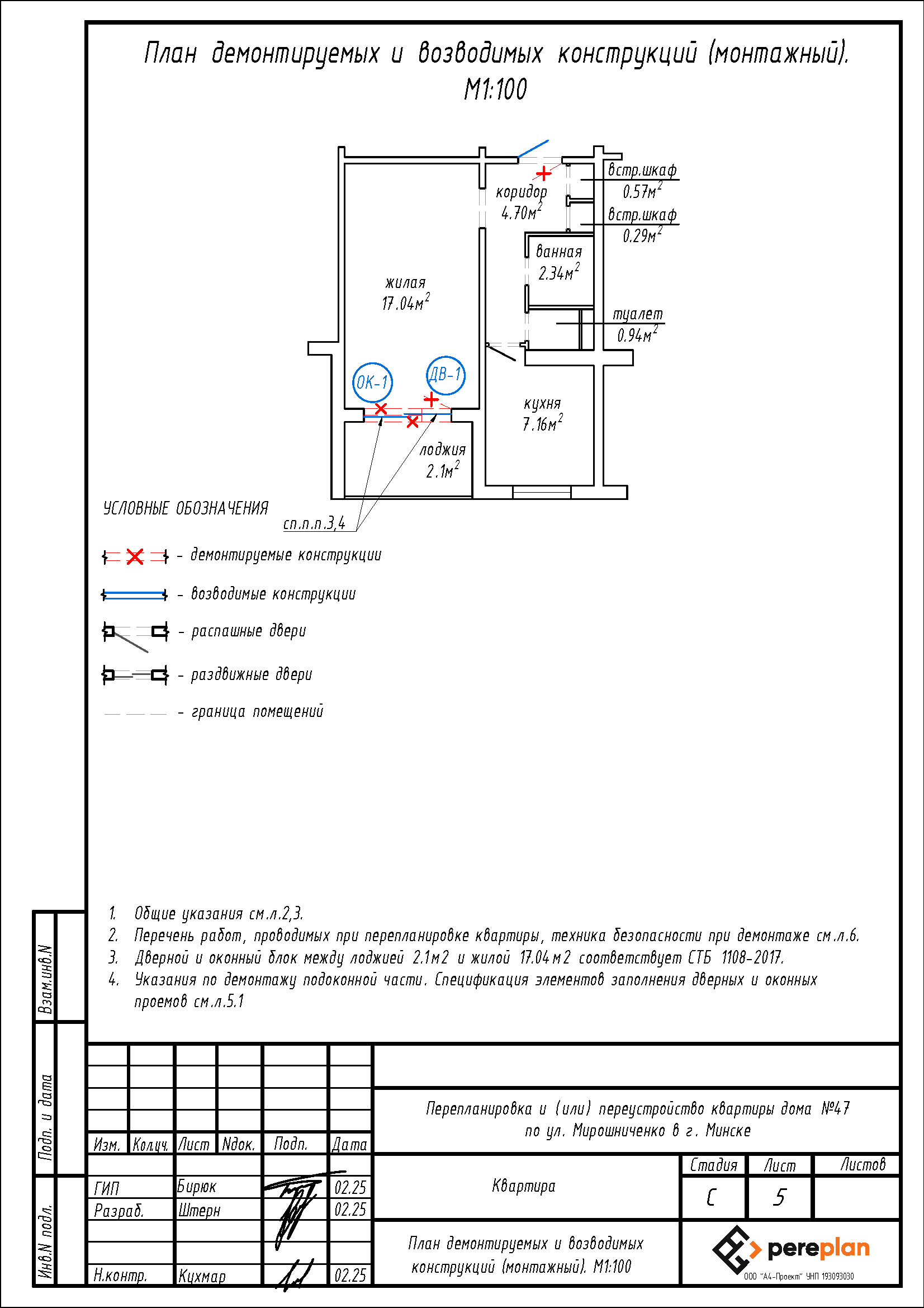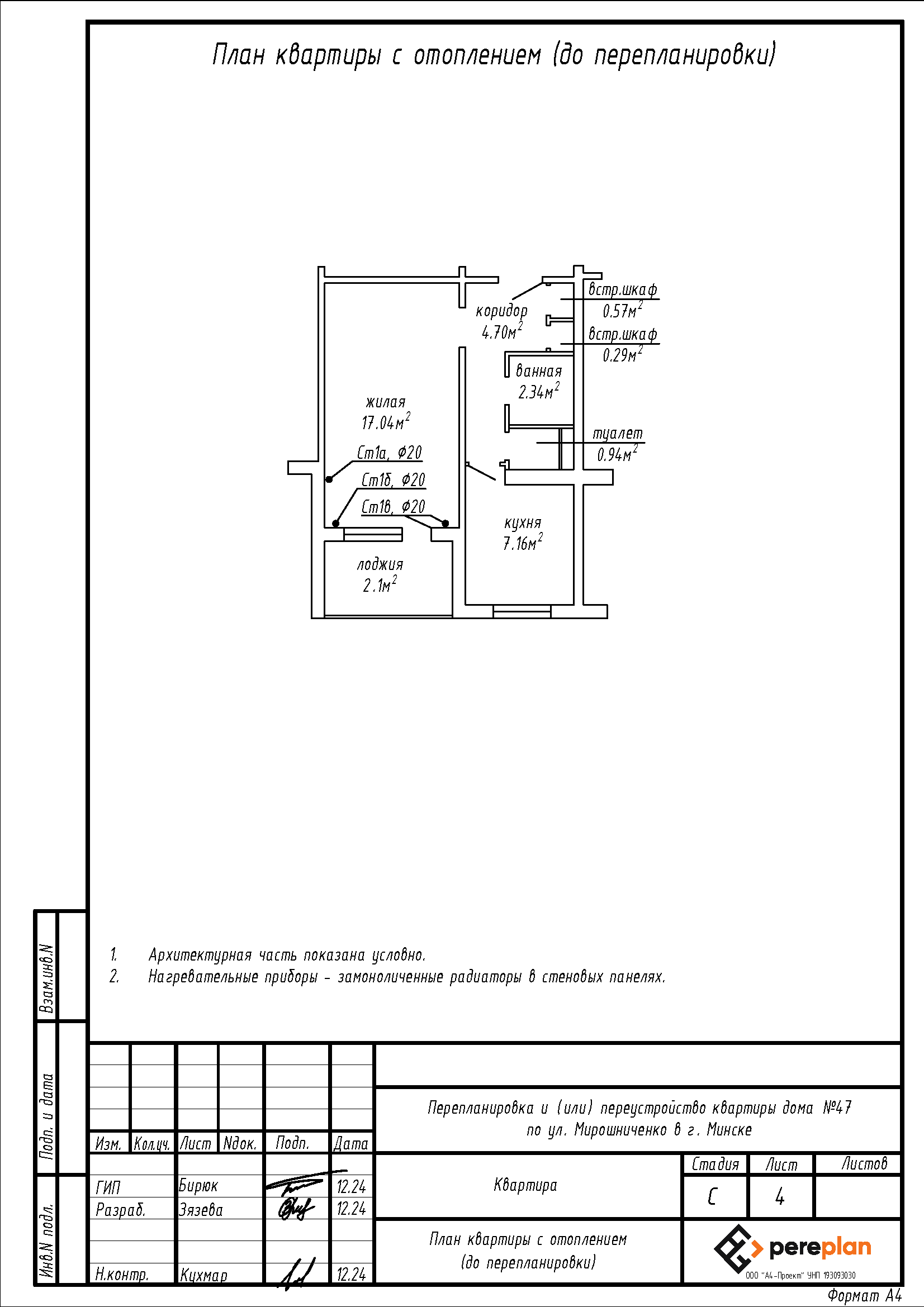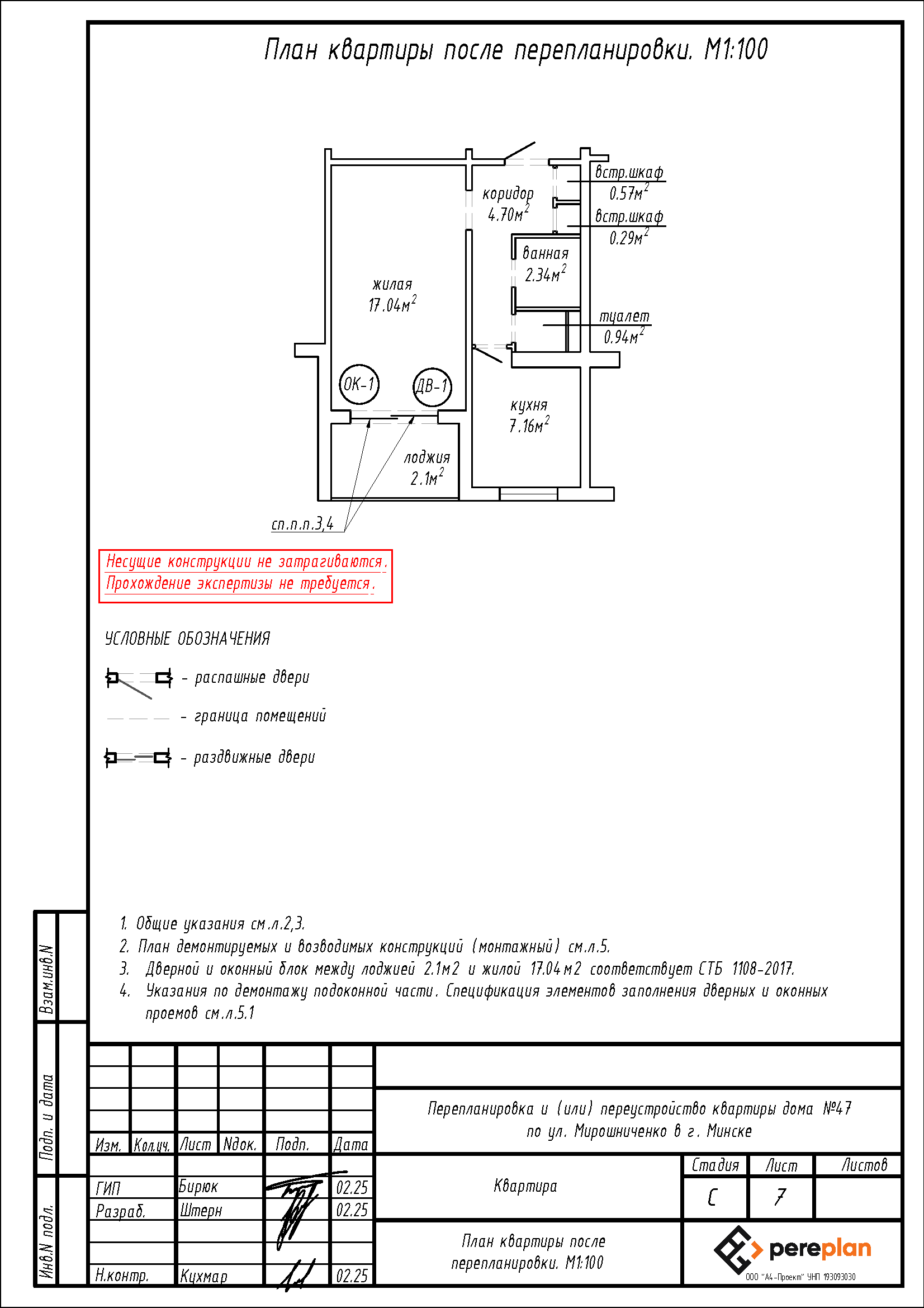 Перепланировка квартиры по ул. Мирошниченко, 47 в г. Минске
