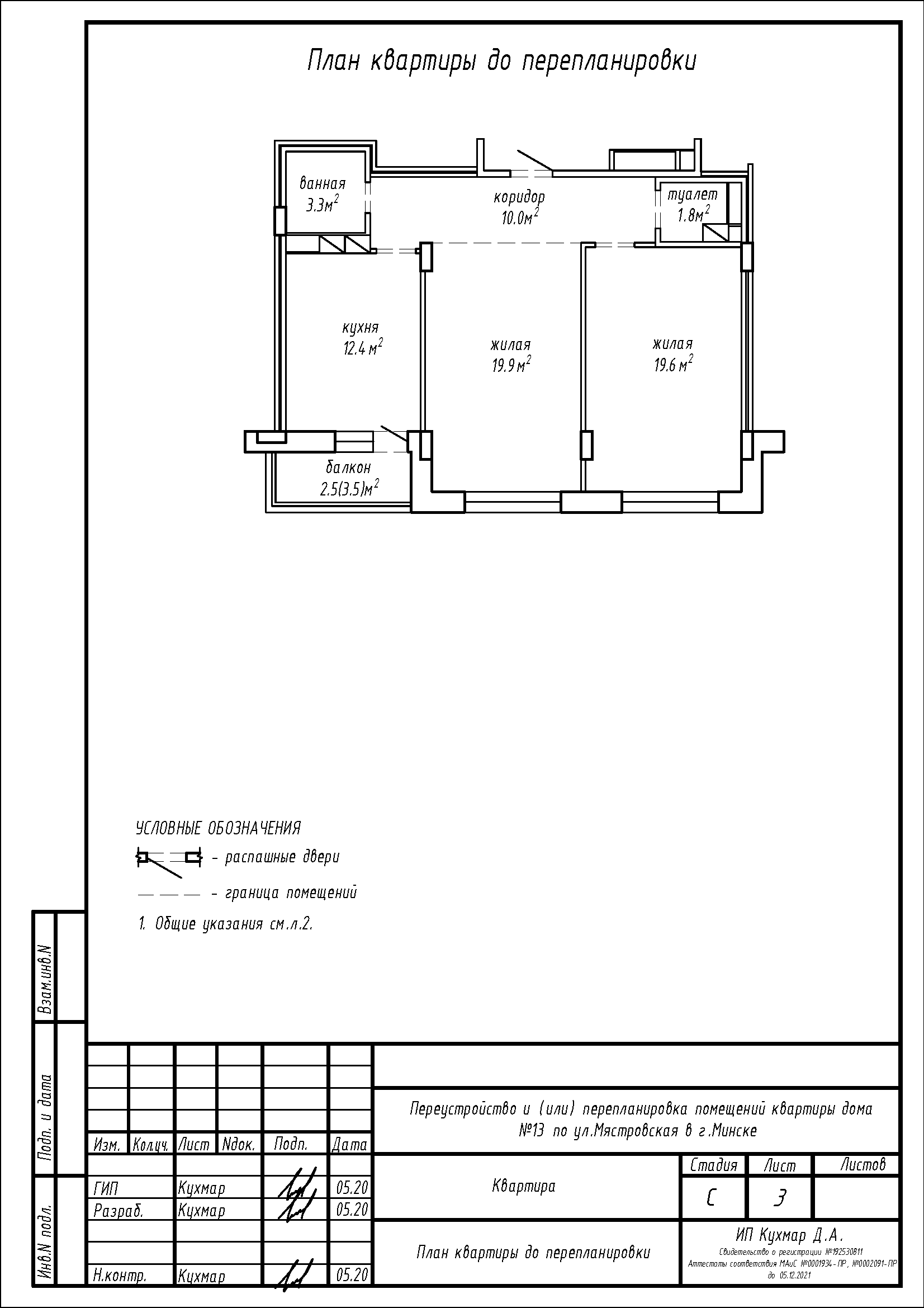 Перепланировка квартиры по ул. Мястровская, 13 в ЖК «Променад»