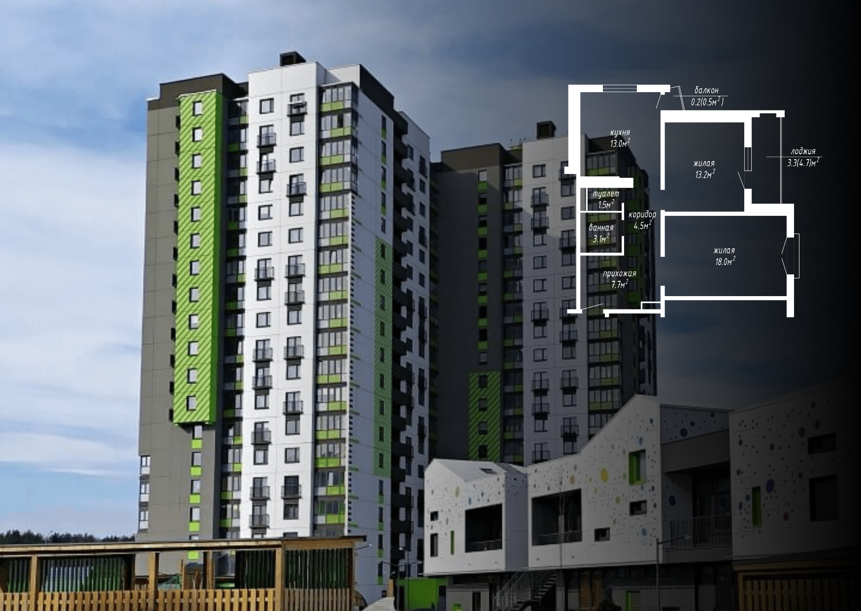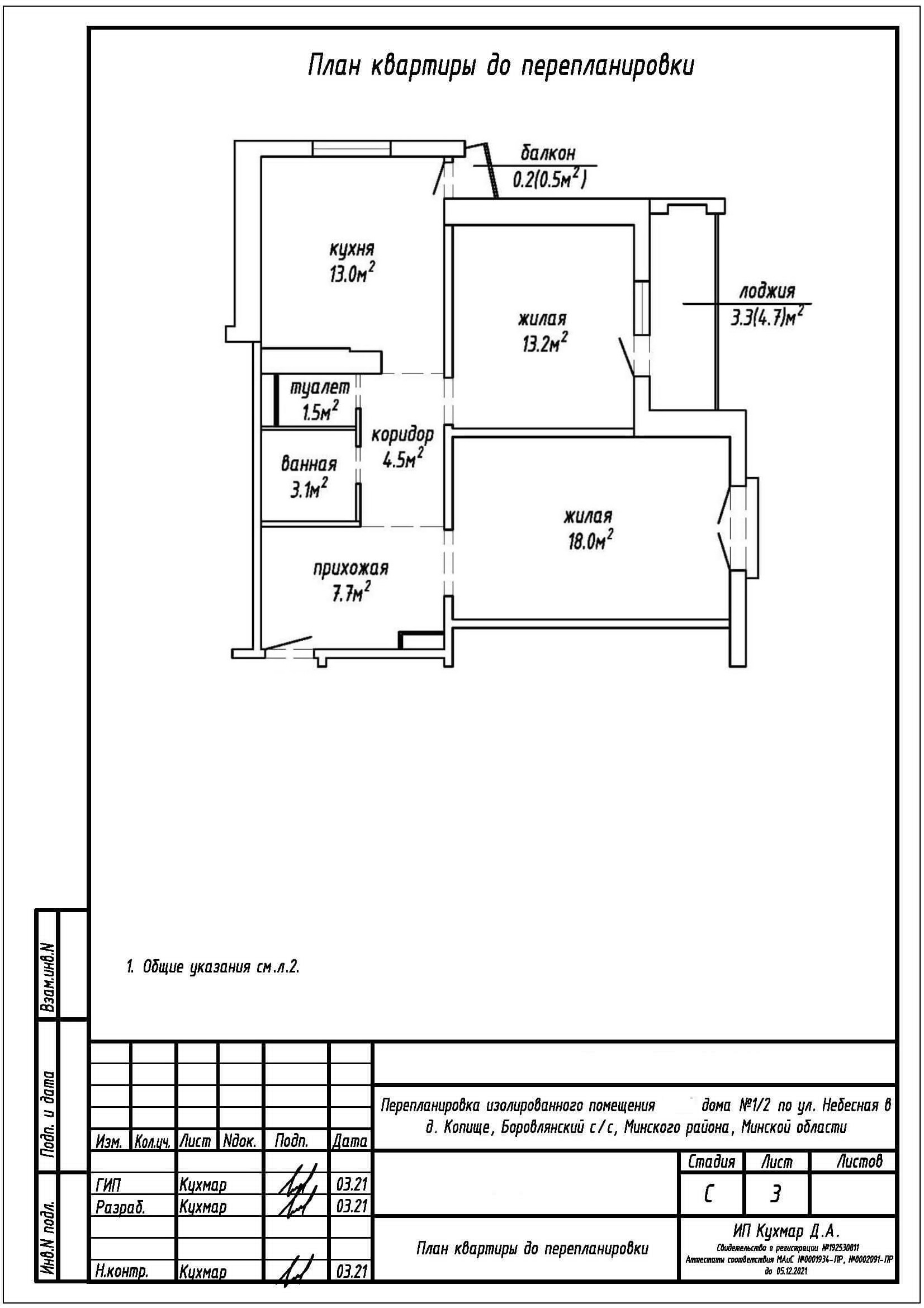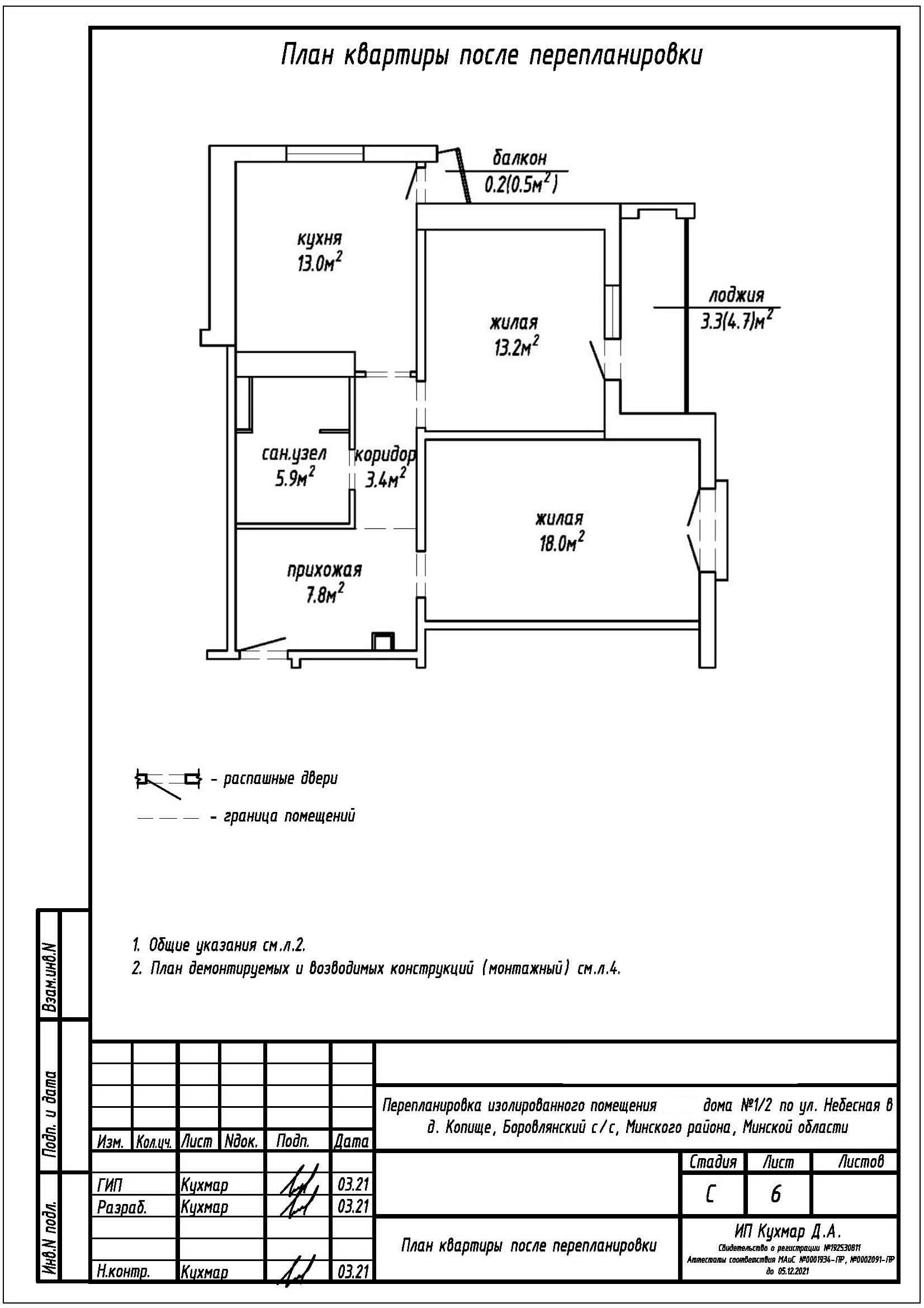 Перепланировка квартиры по ул. Небесная, 1 корпус 2 в ЖК «Новая Боровая»