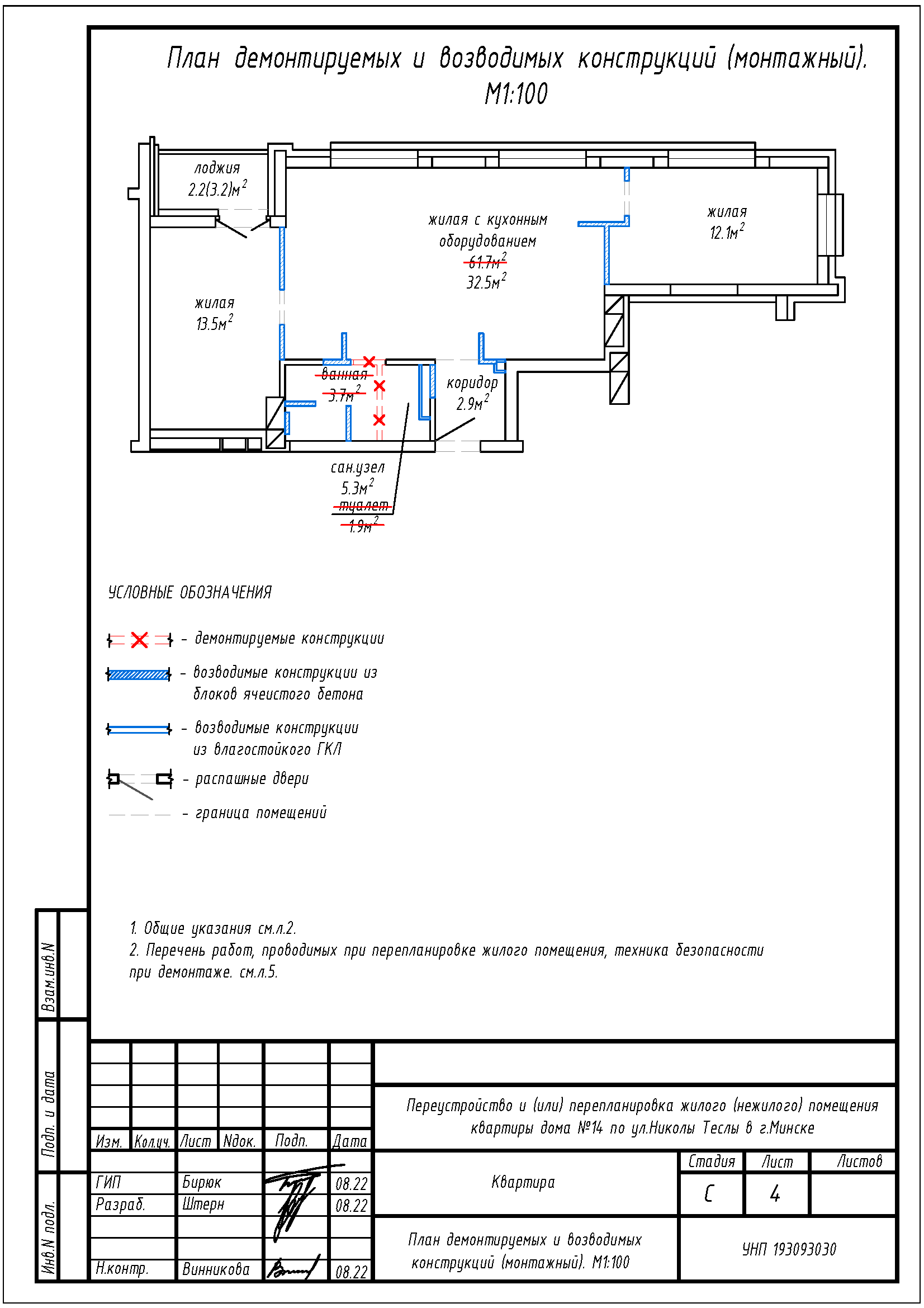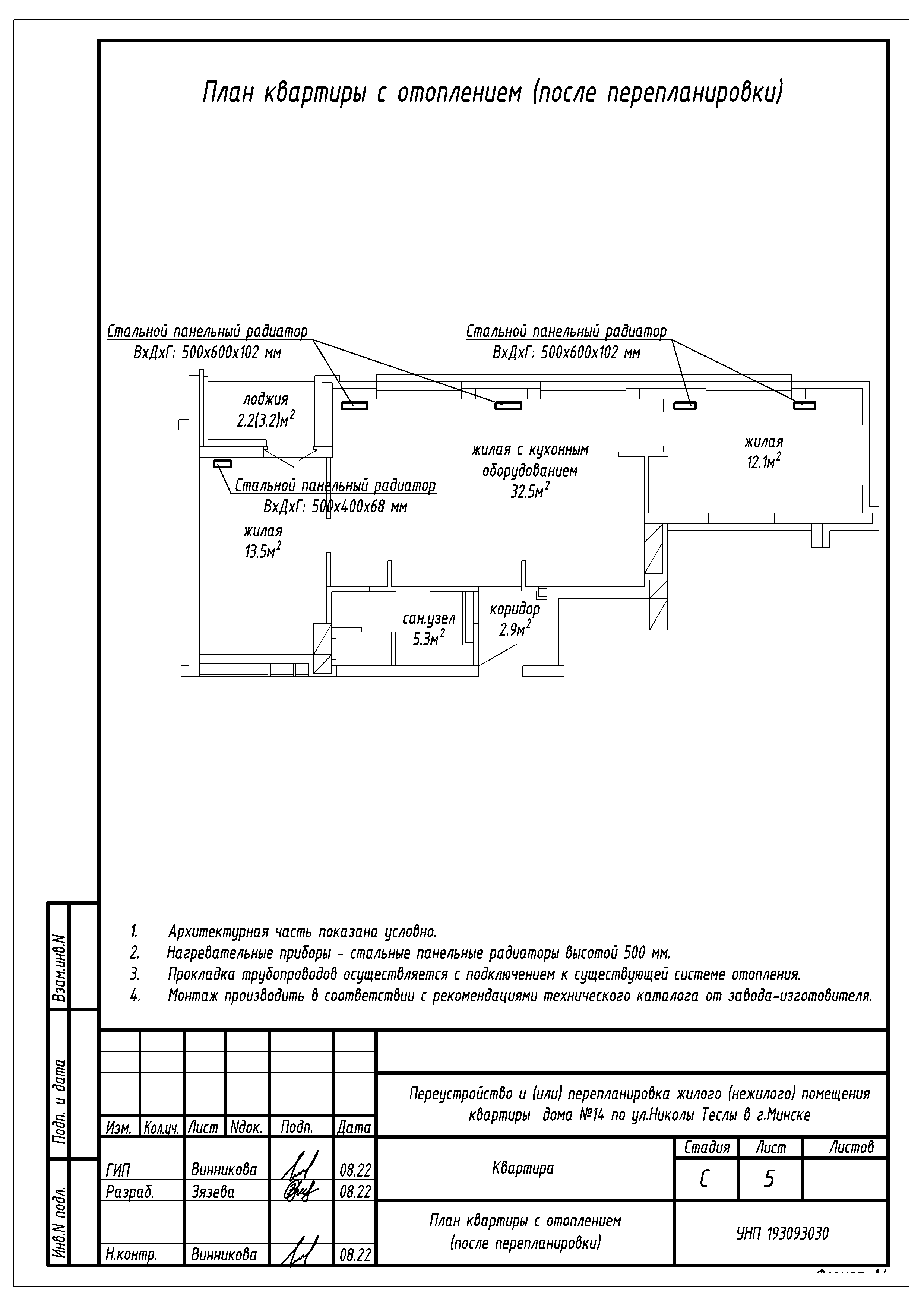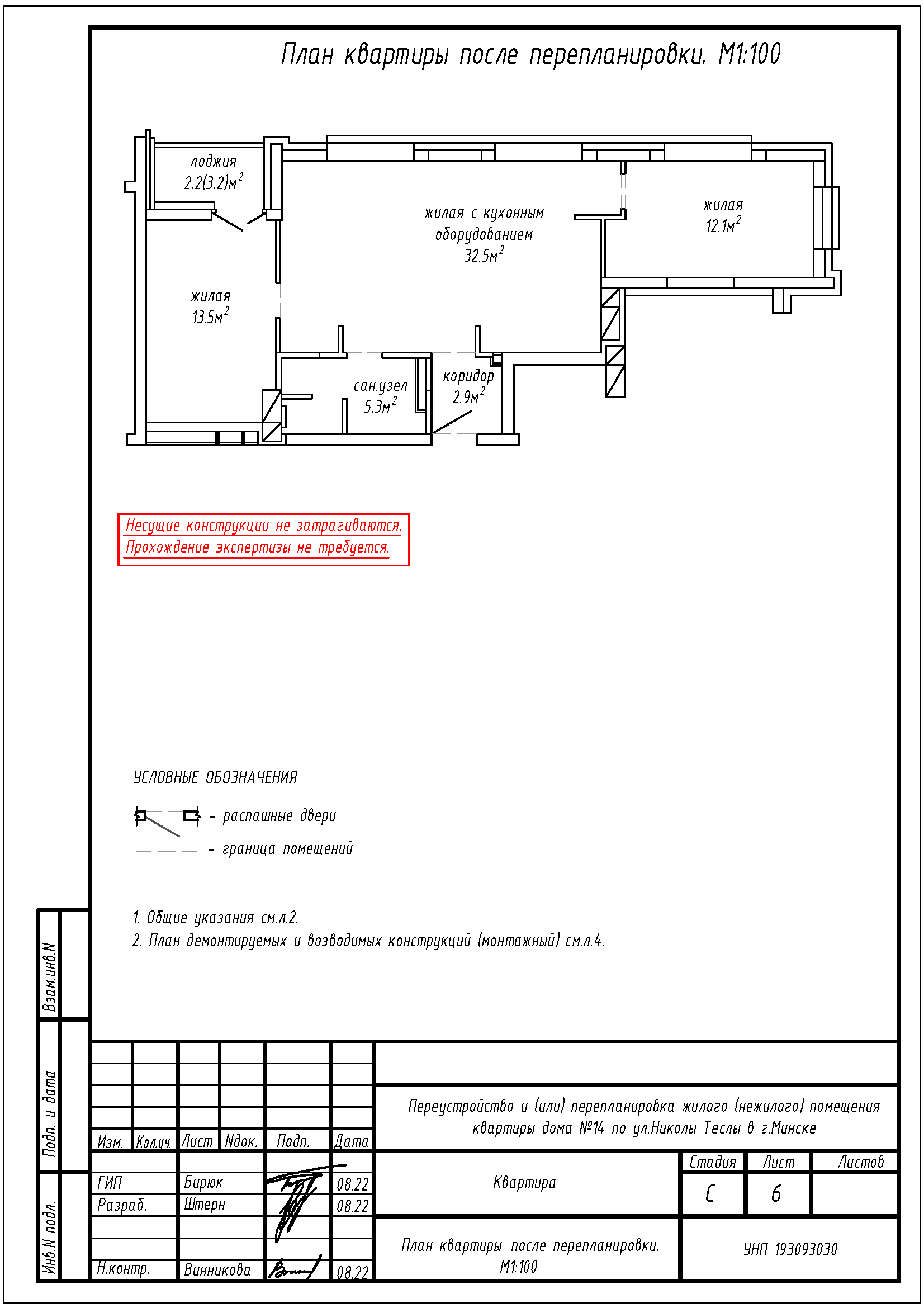 Перепланировка квартиры по ул. Николы Теслы, 14 в ЖК «Минск Мир»