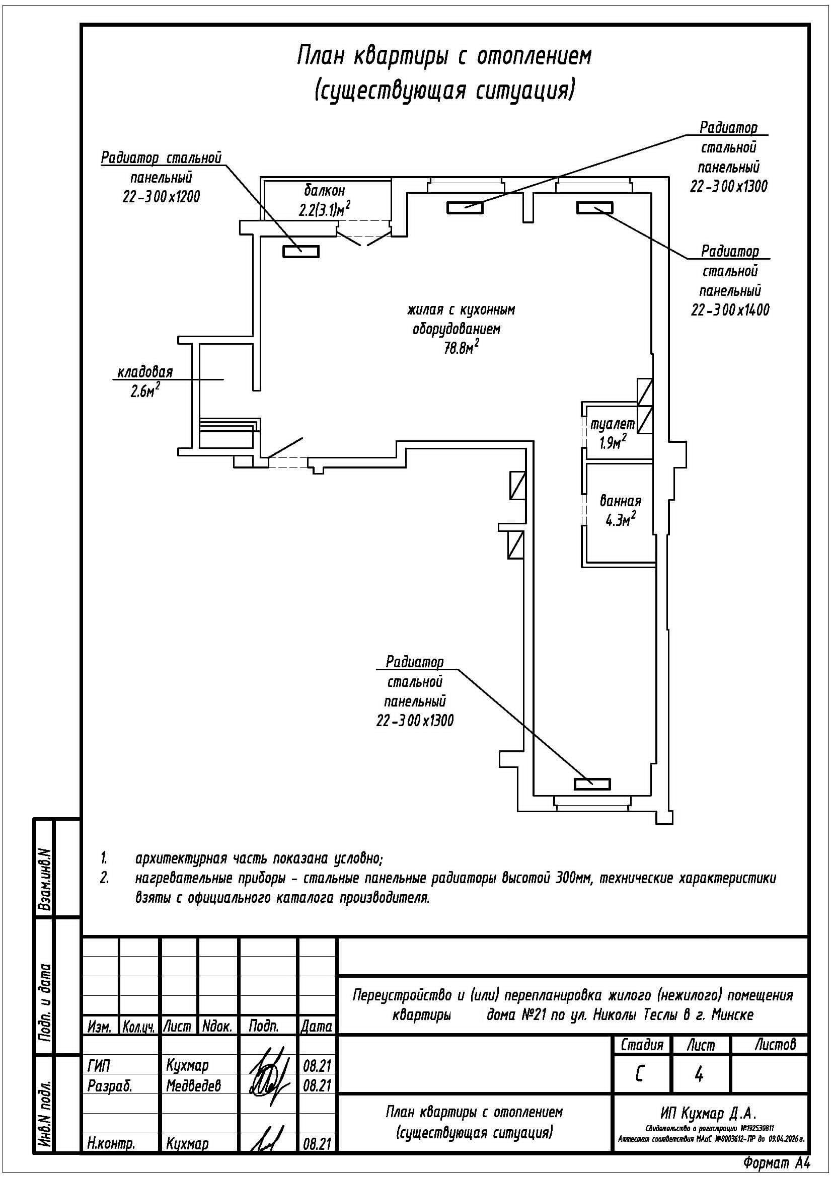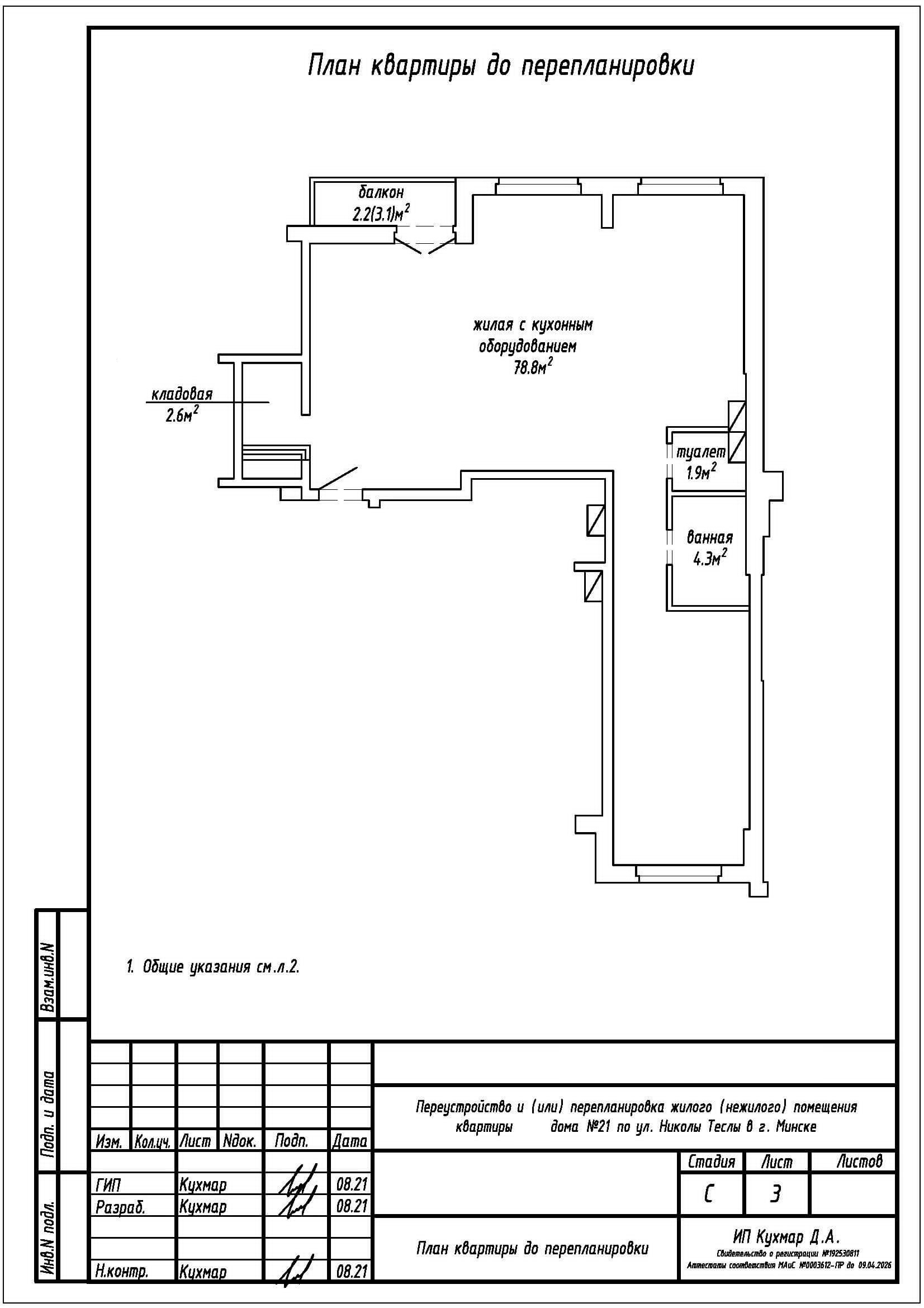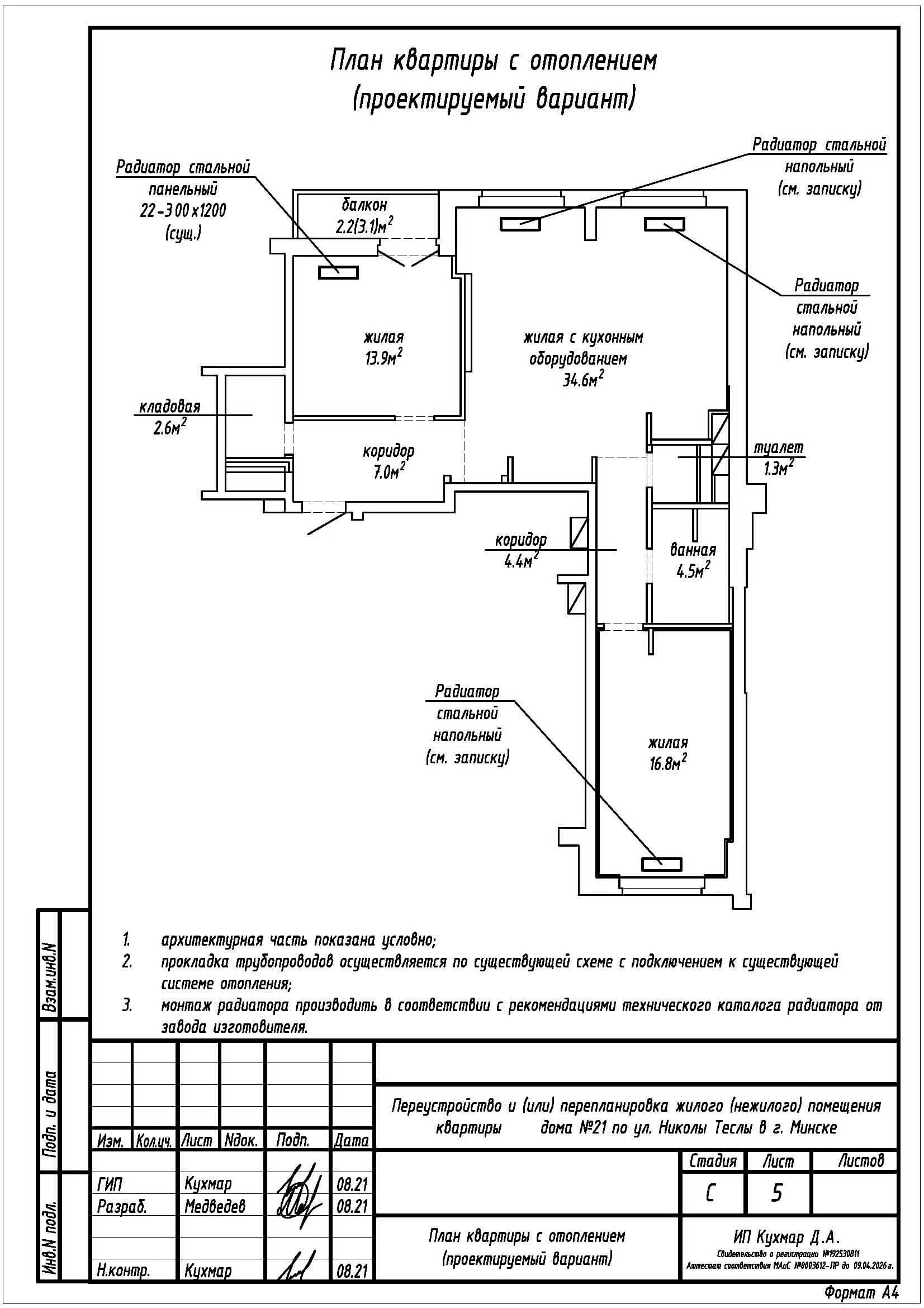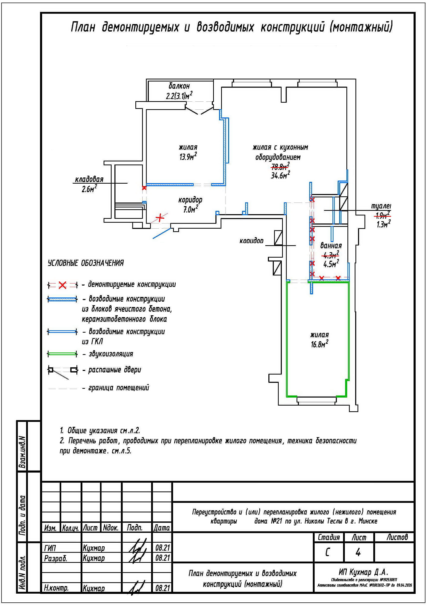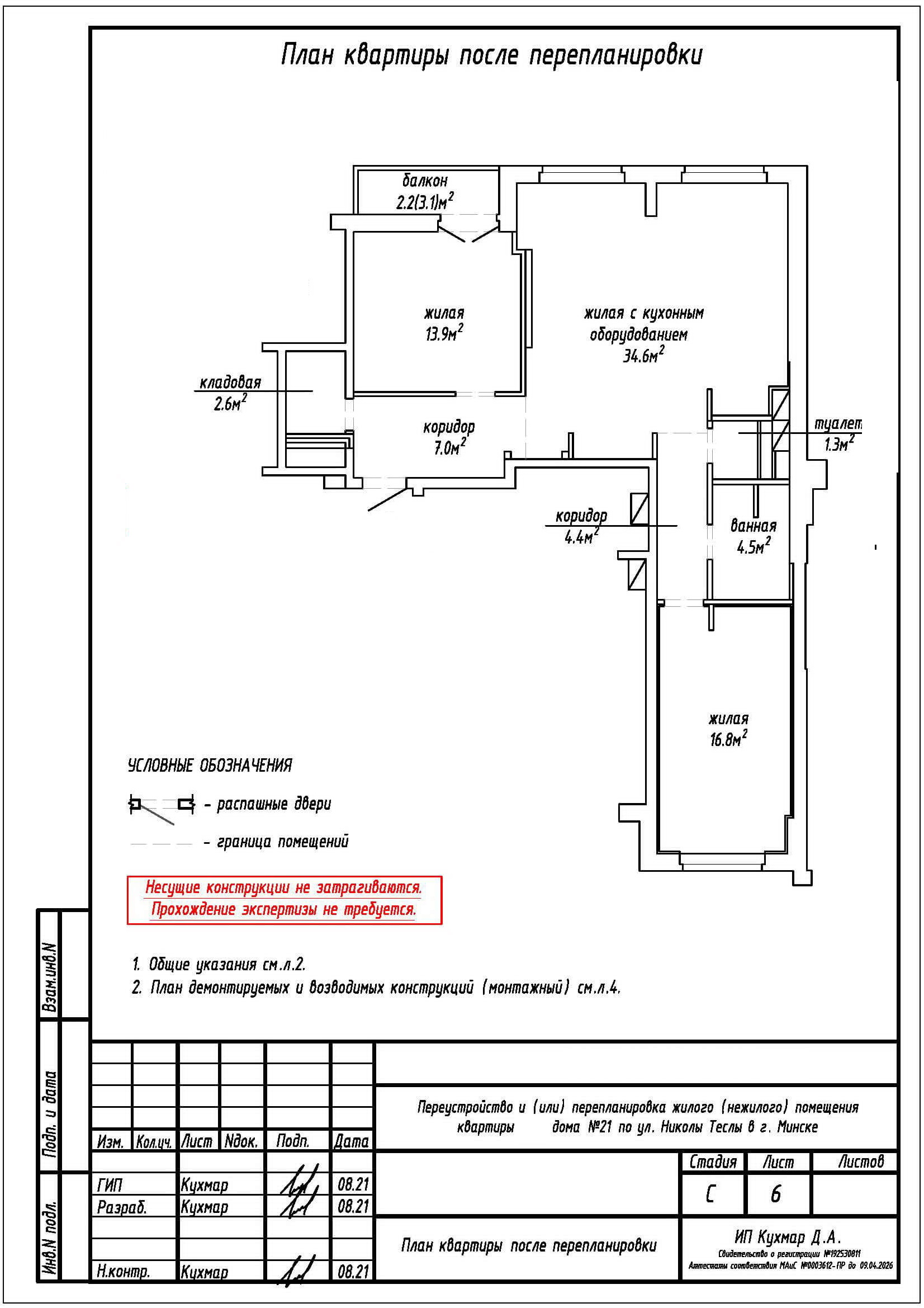 Перепланировка квартиры по ул. Николы Теслы, 21 в ЖК «Минск Мир»