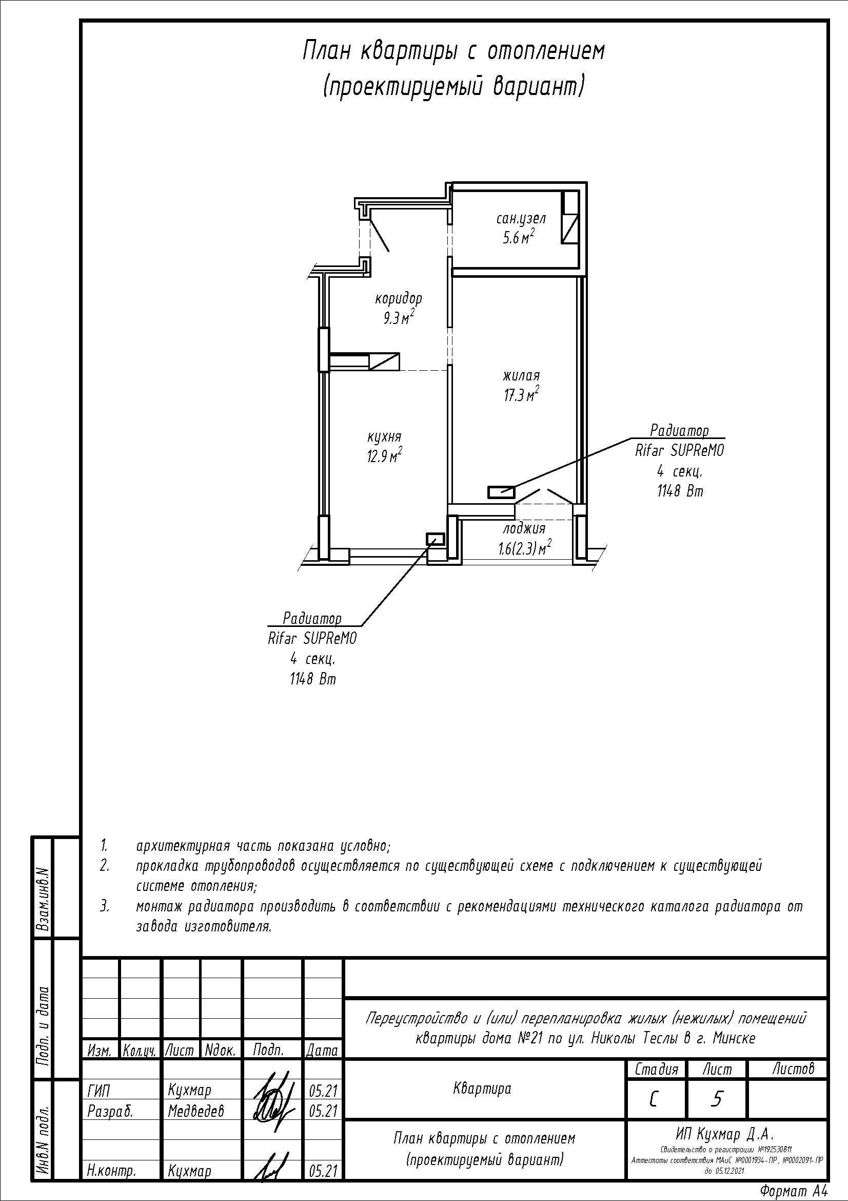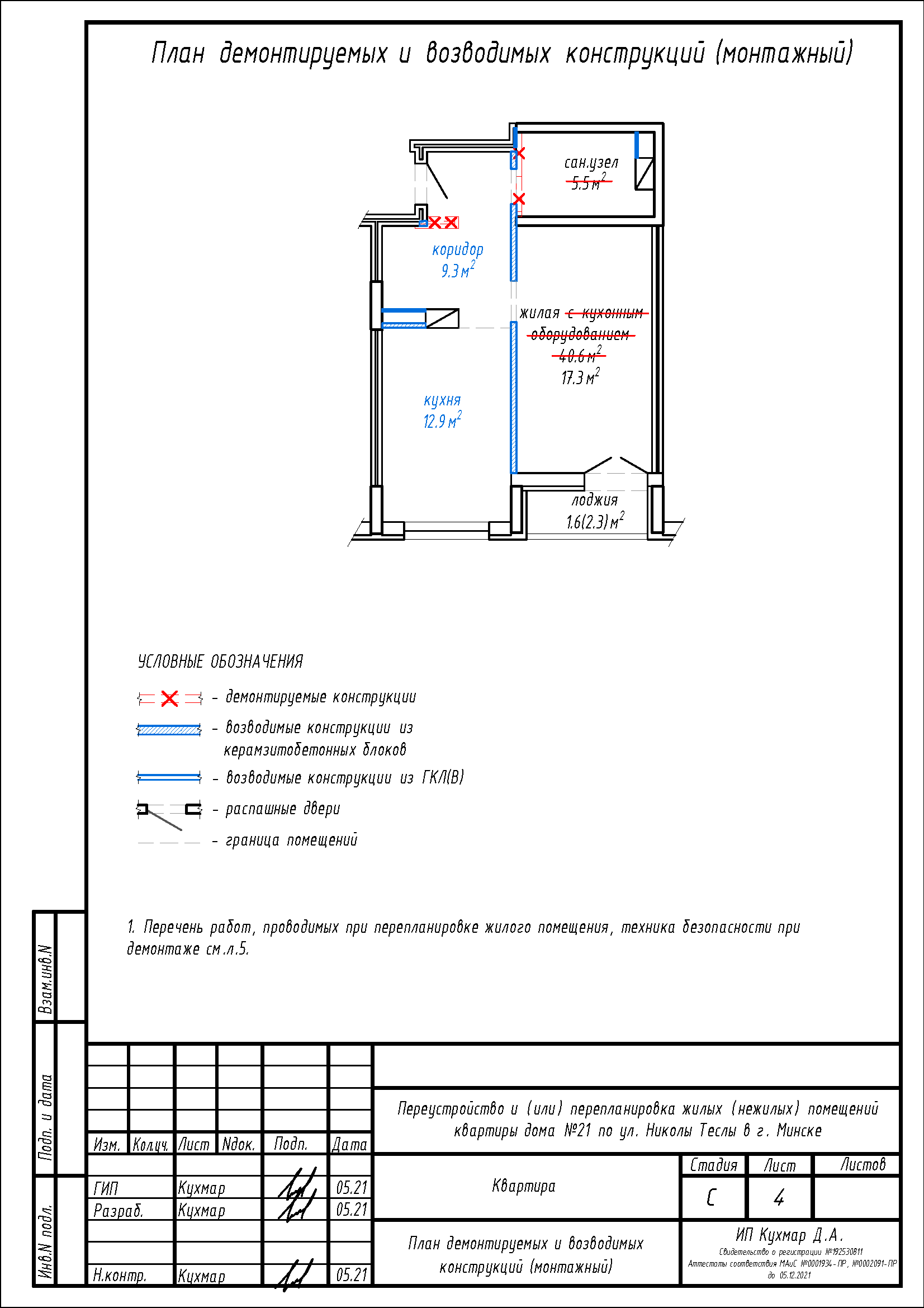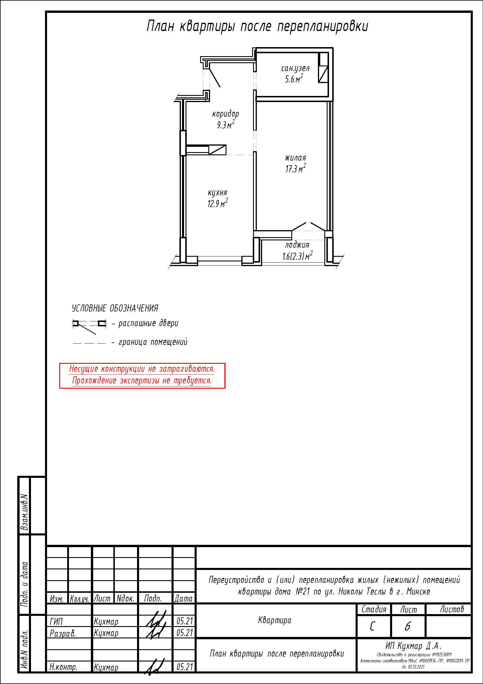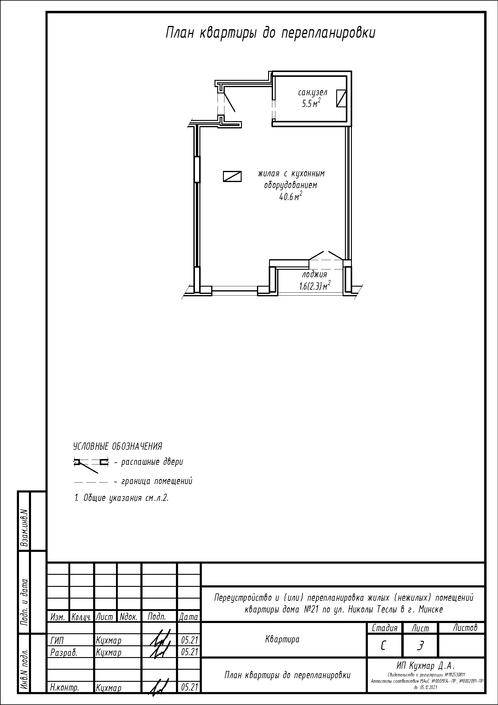 Перепланировка квартиры по ул. Николы Теслы, 21 в ЖК «Минск Мир»