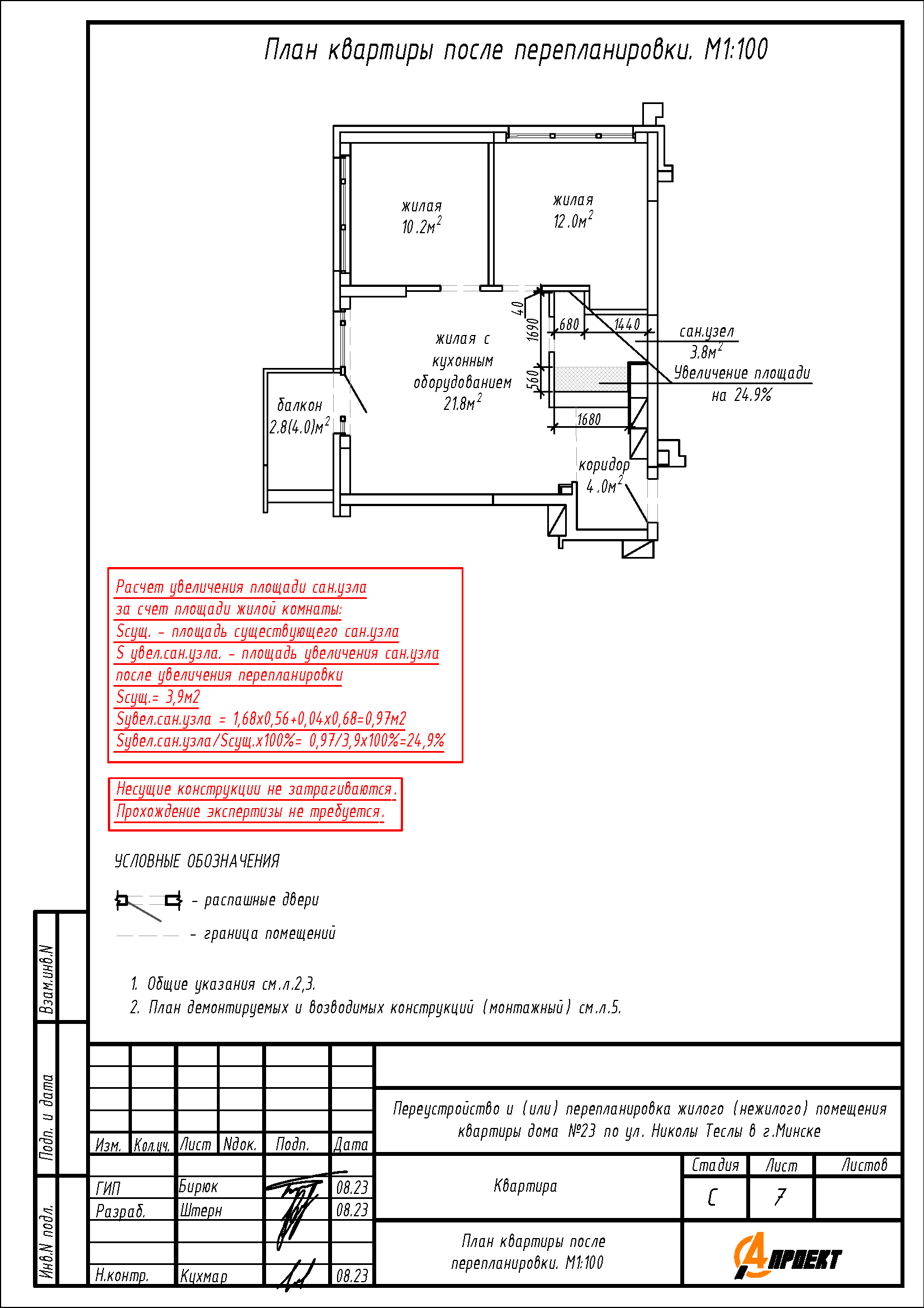 Перепланировка квартиры по ул.Николы Теслы, 23 в ЖК «Минск Мир»