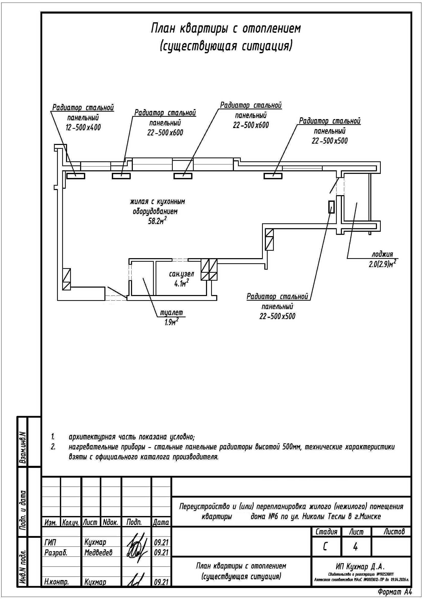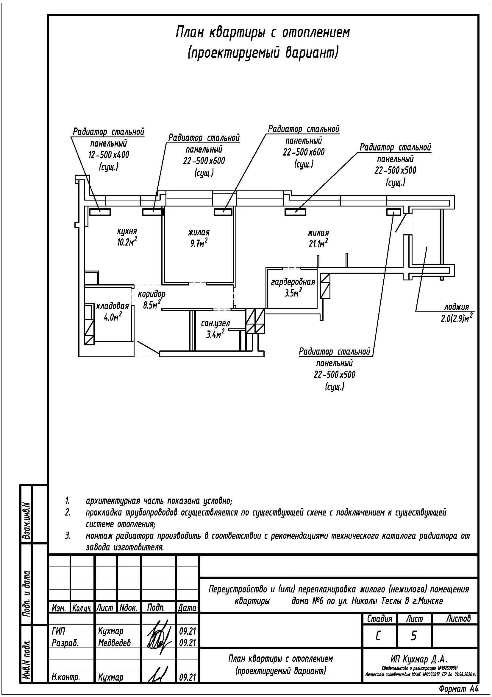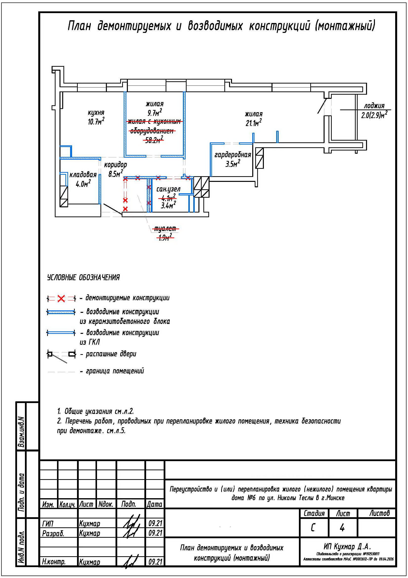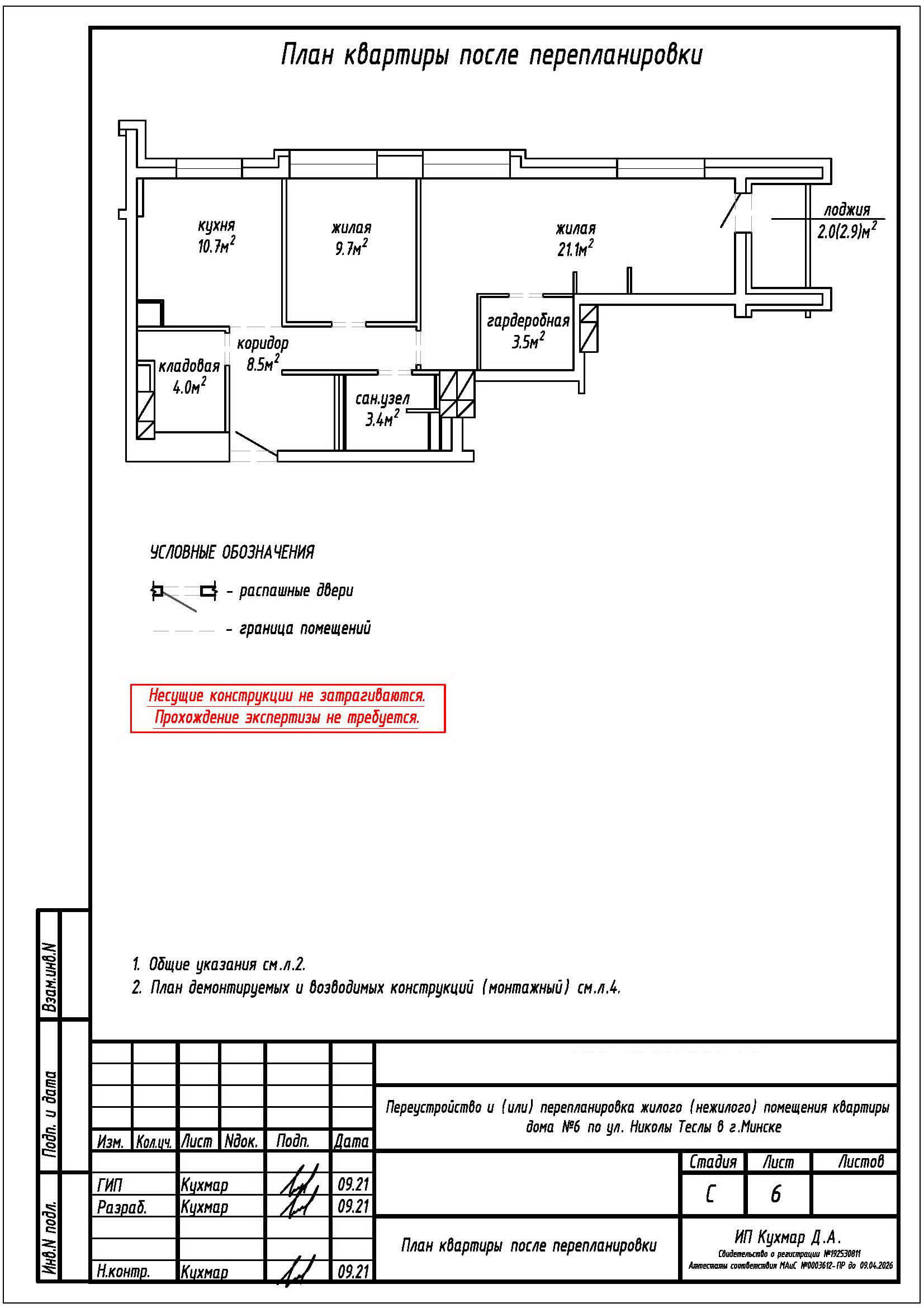 Перепланировка квартиры по ул. Николы Теслы, 6 в ЖК «Минск Мир»