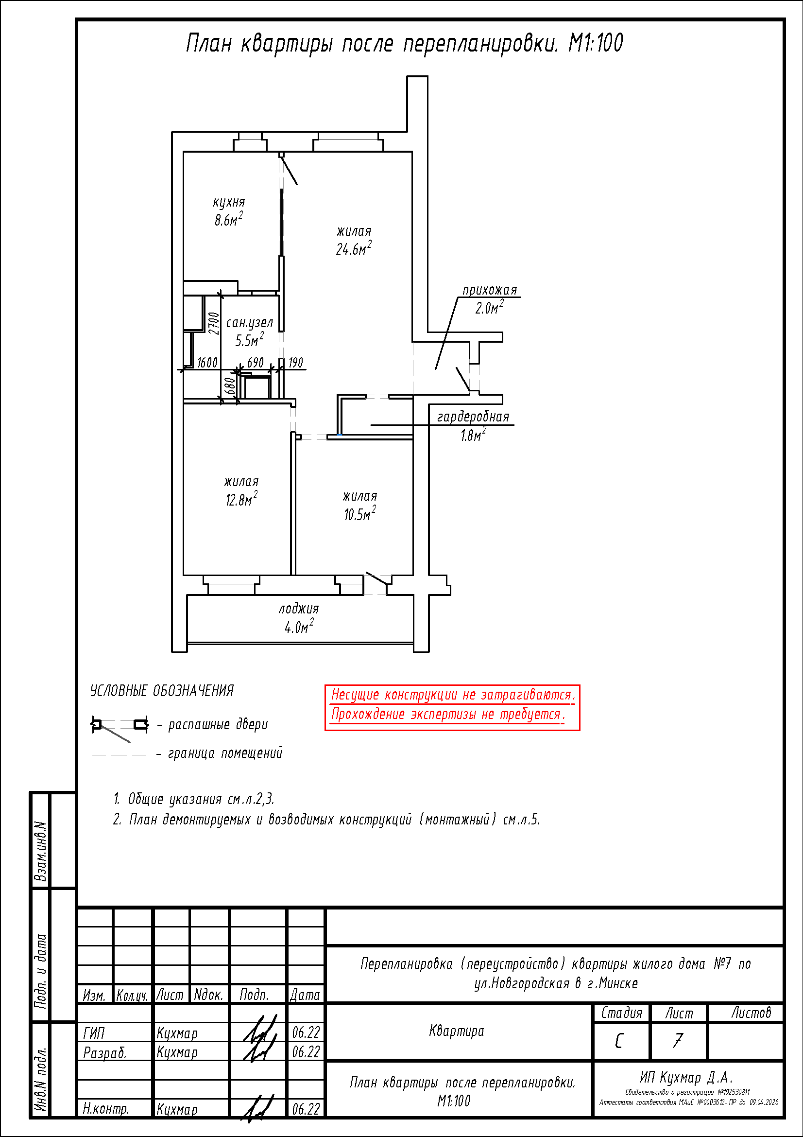 Перепланировка квартиры по ул. Новгородская, 7 в г. Минске