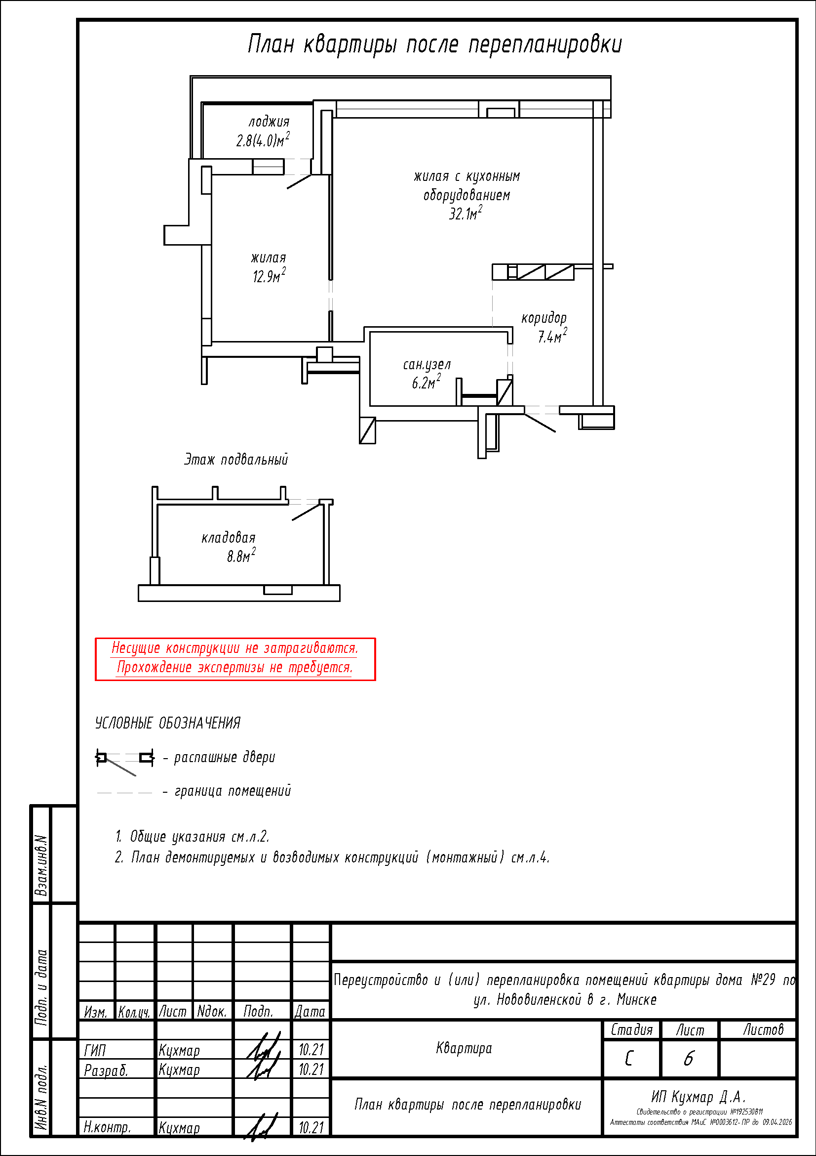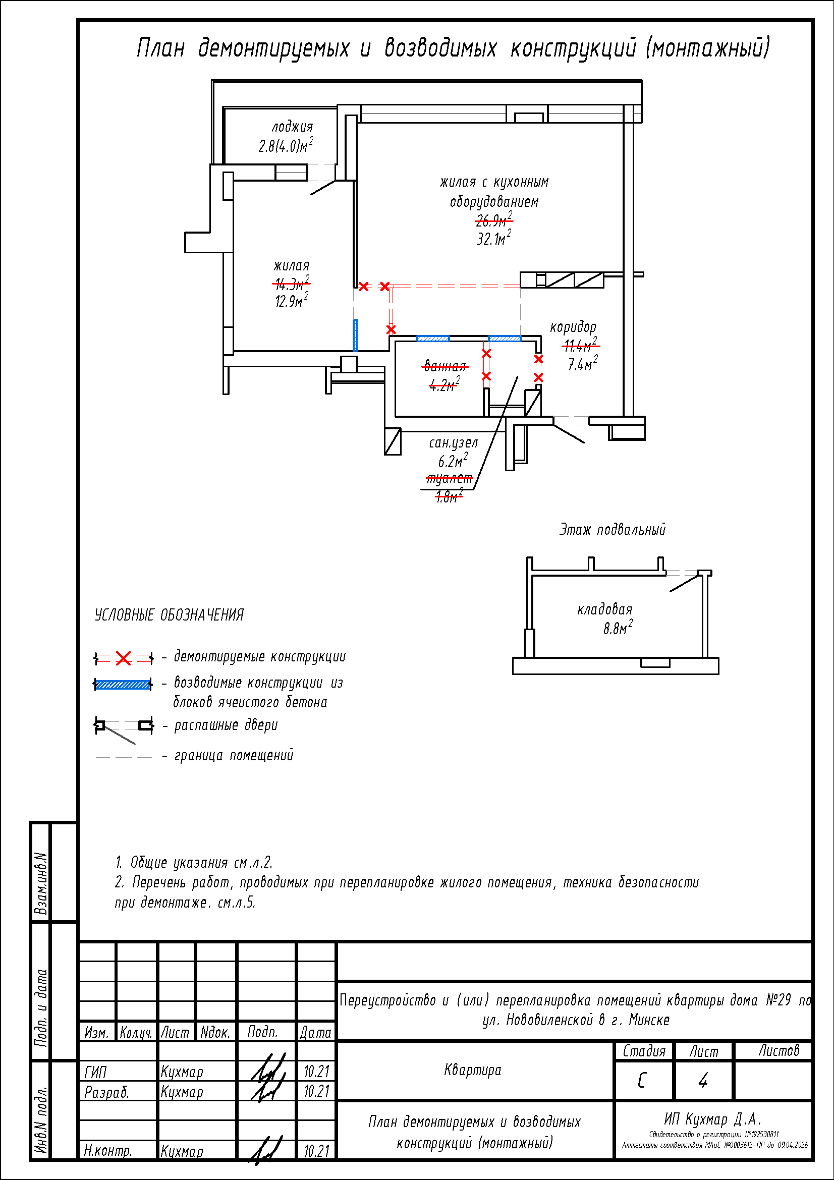 - Демонтаж частей перегородок между жилой с кухонным оборудованием и коридором;