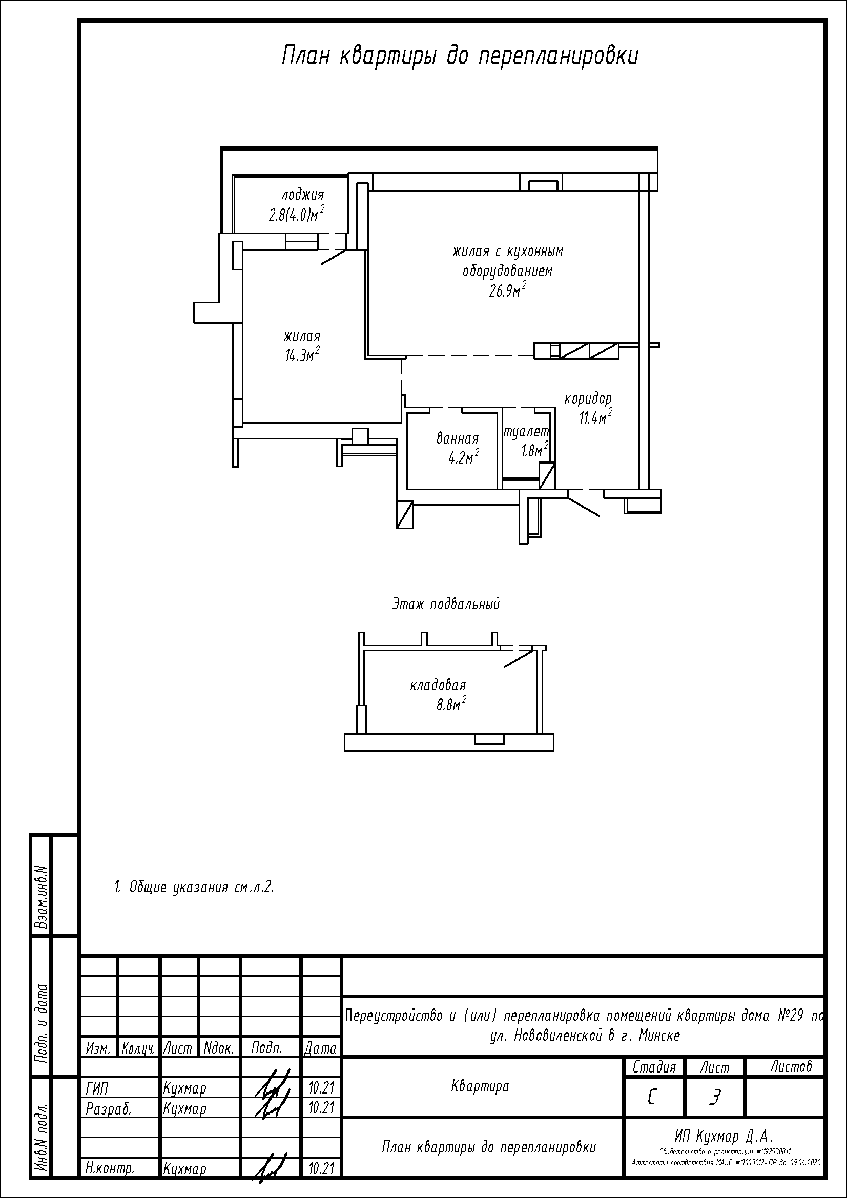 Перепланировка квартиры по ул. Нововиленская, 29 в ЖК «Левада»