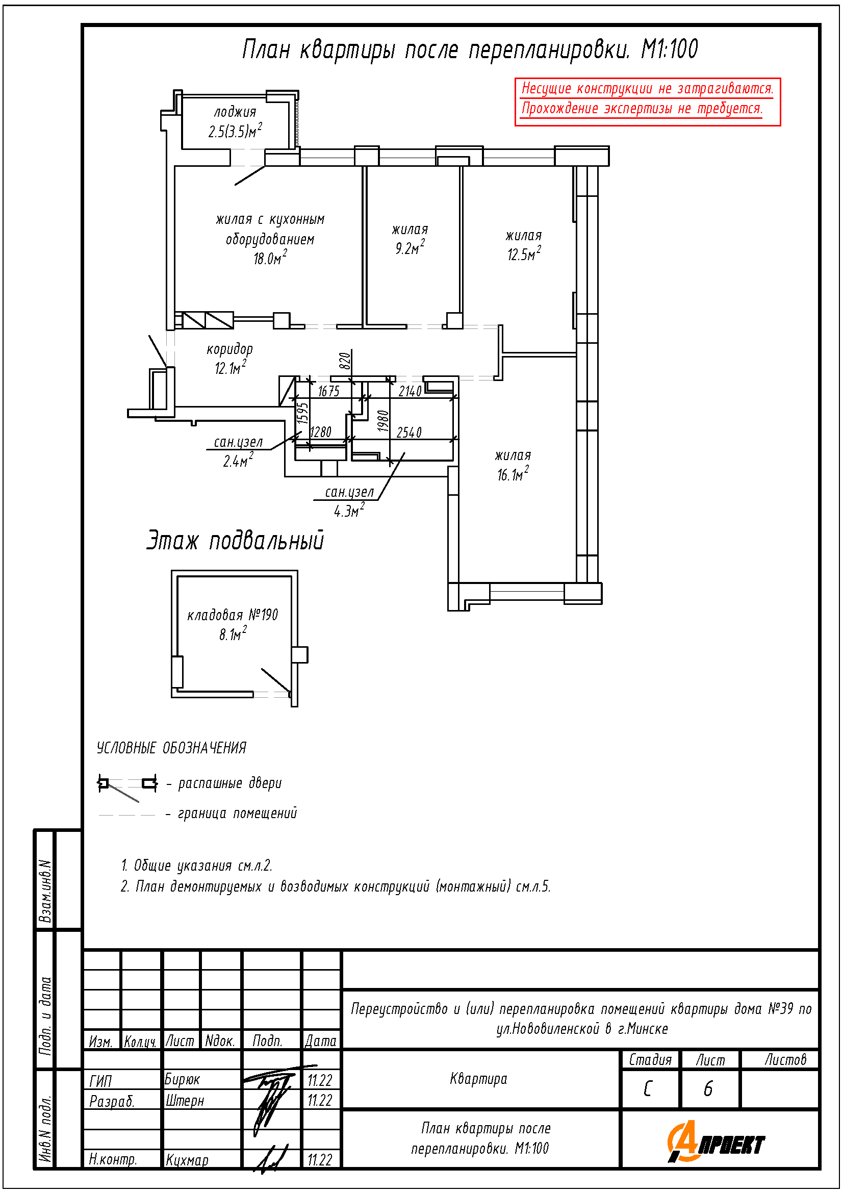 Перепланировка квартиры по ул. Нововиленская, 39 в ЖК «Левада»