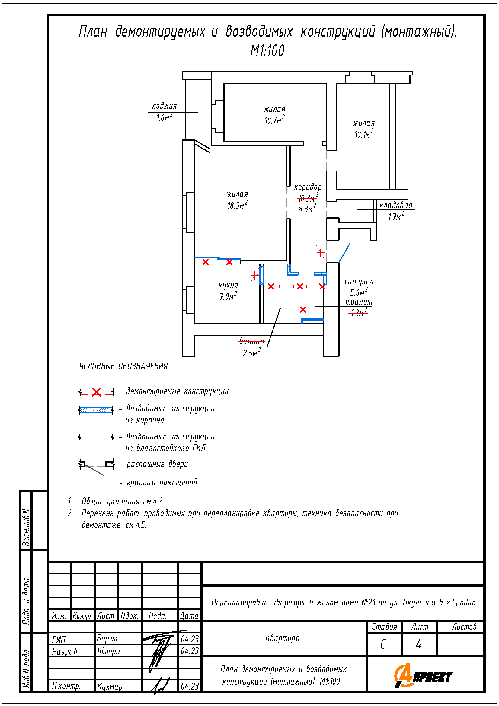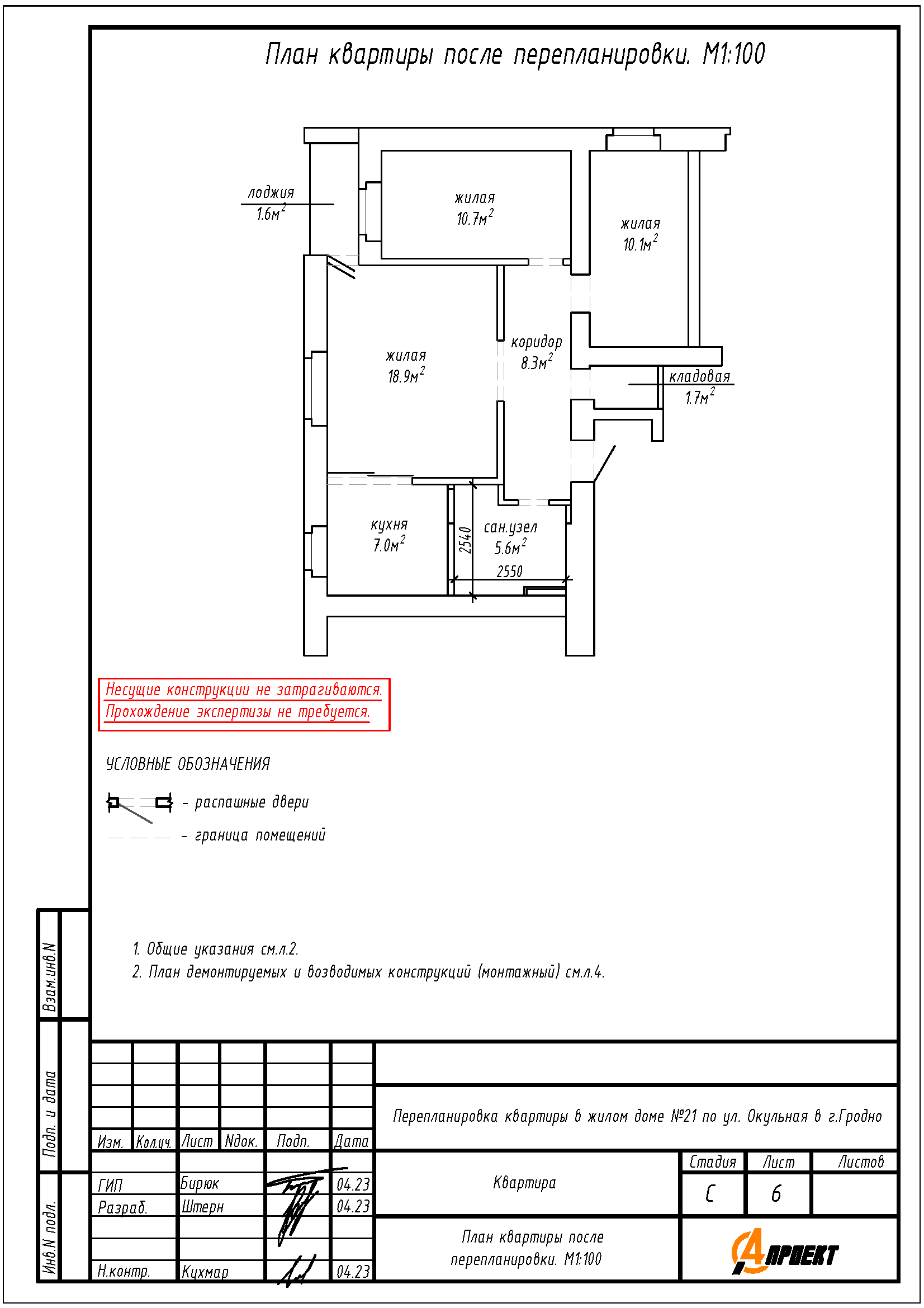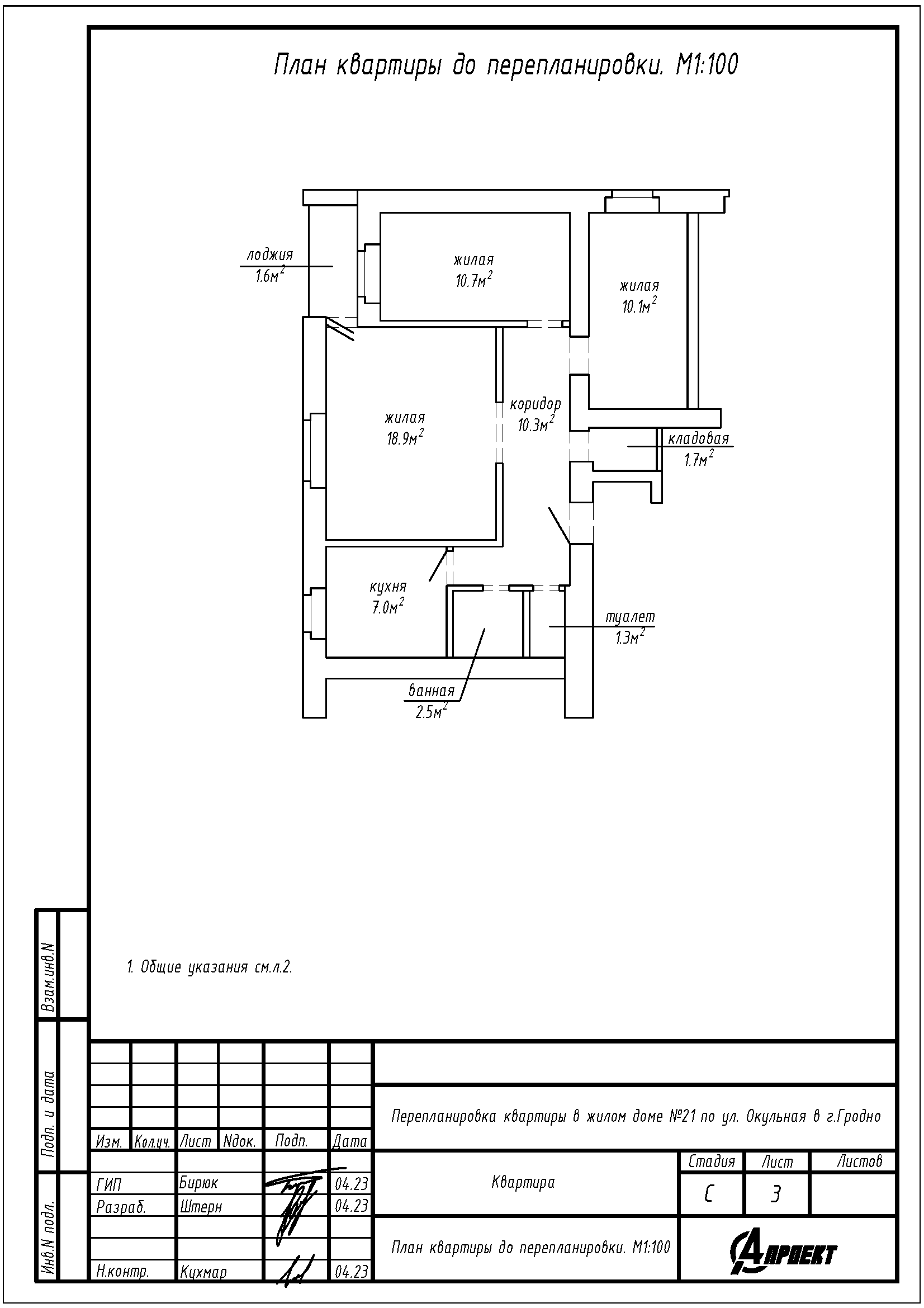 Перепланировка квартиры по ул. Окульная, 21 в г. Гродно