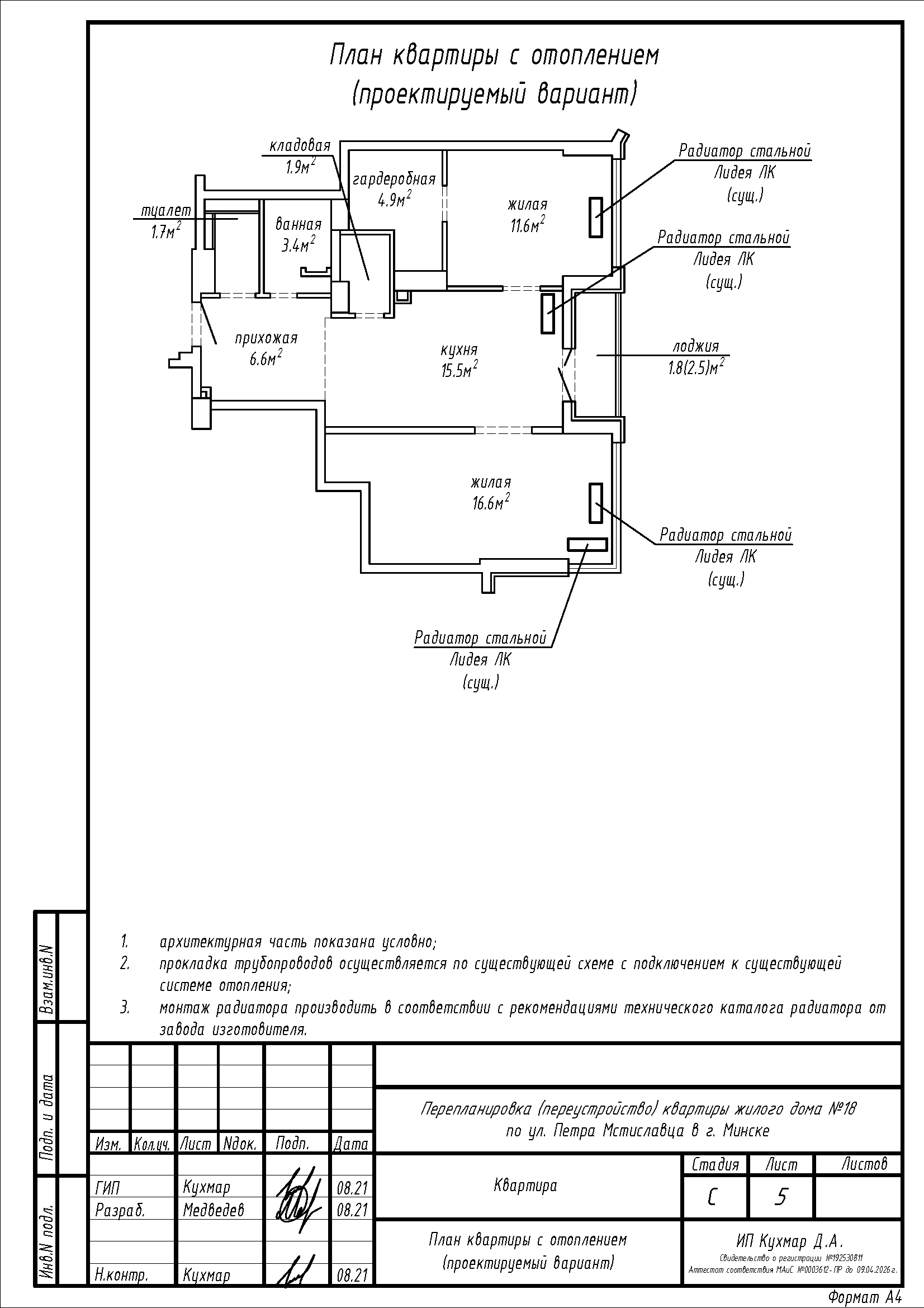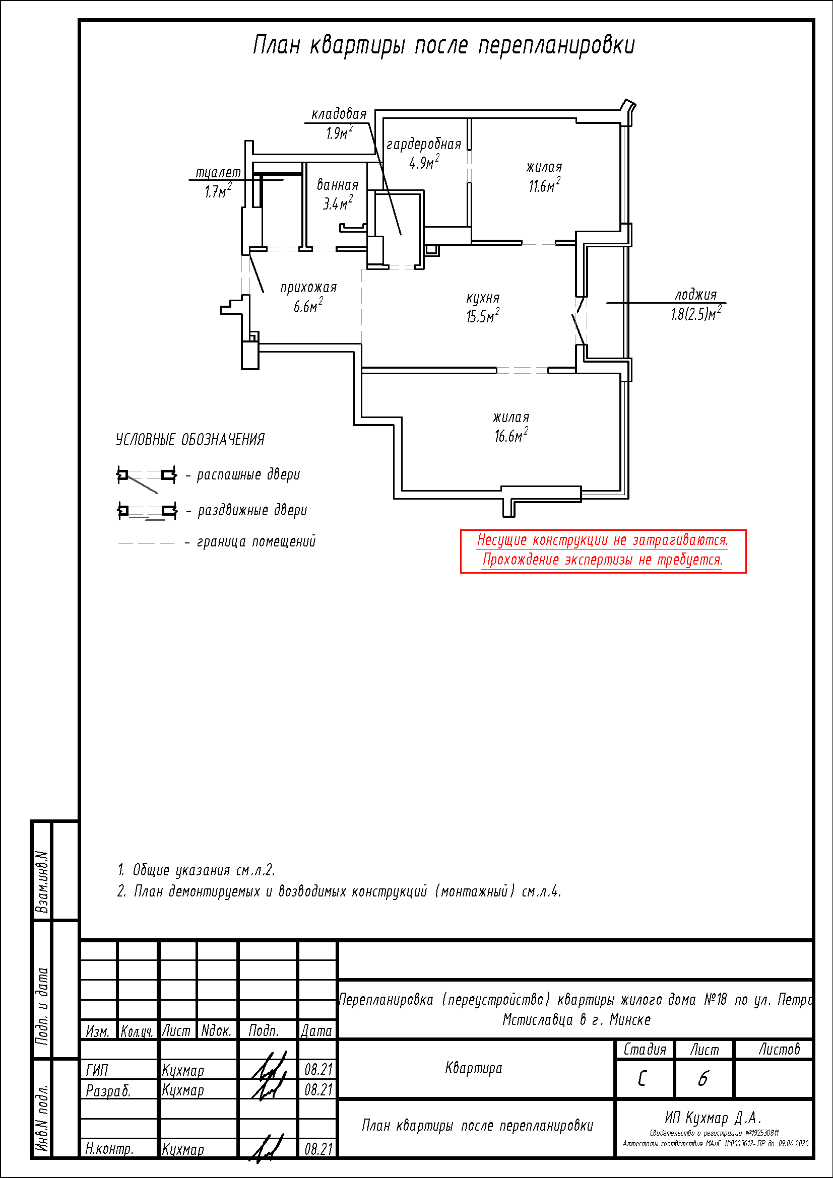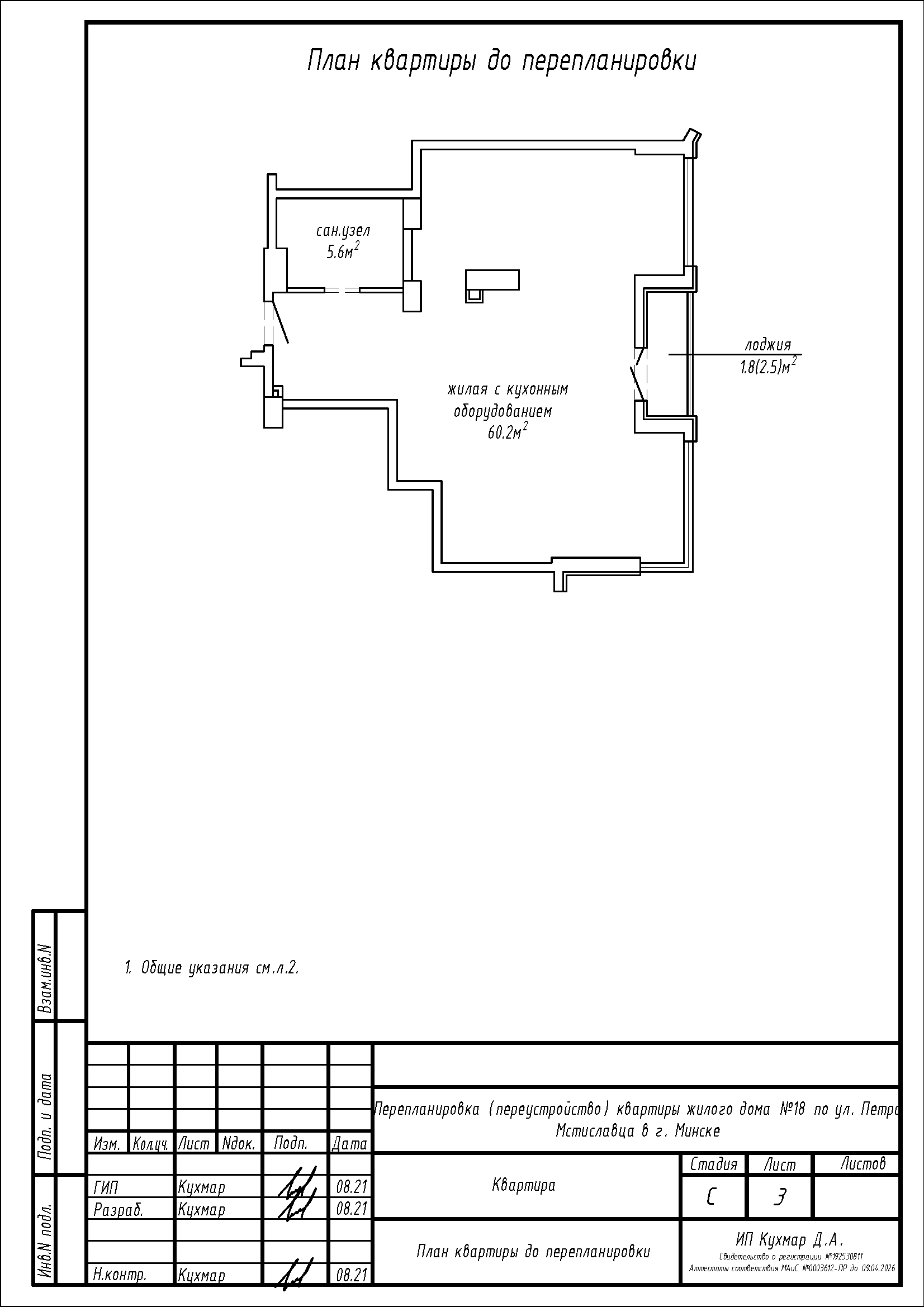 Перепланировка квартиры по ул. Петра Мстиславца, 18 в ЖК «Маяк Минска»