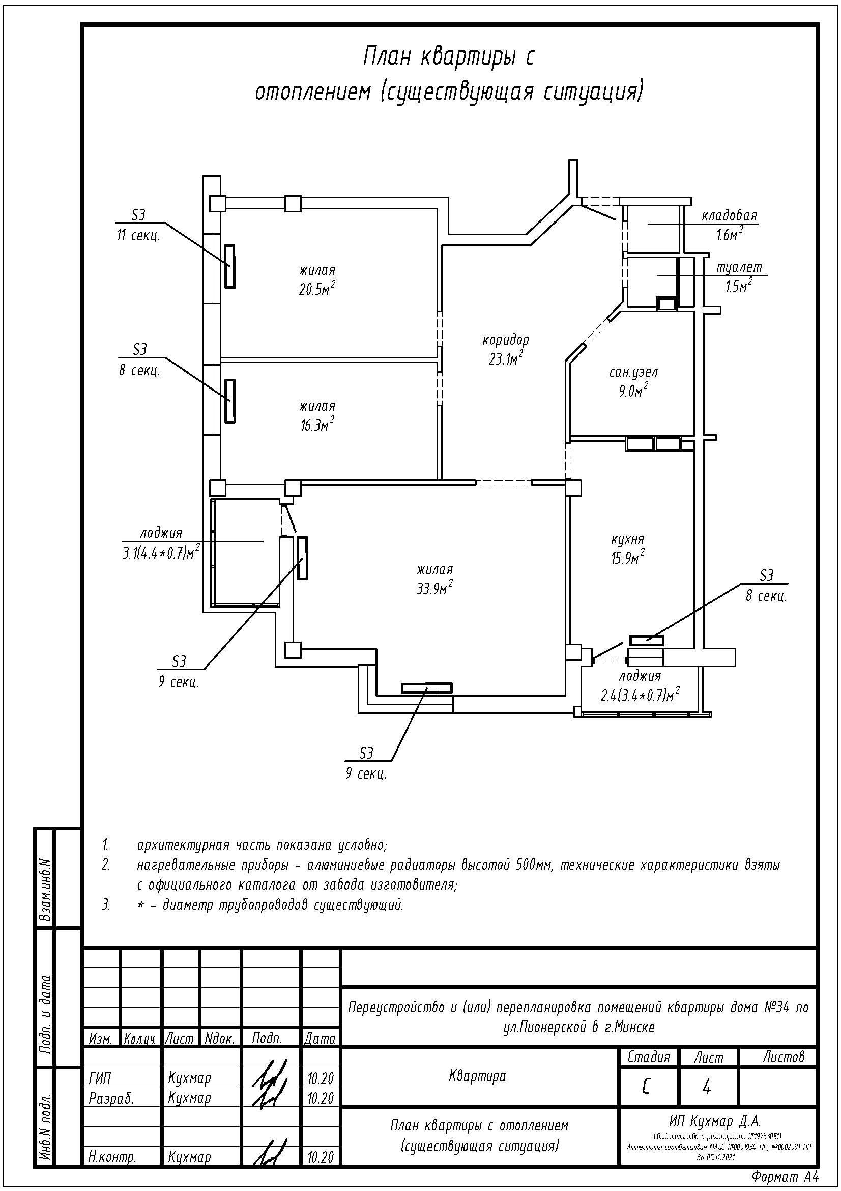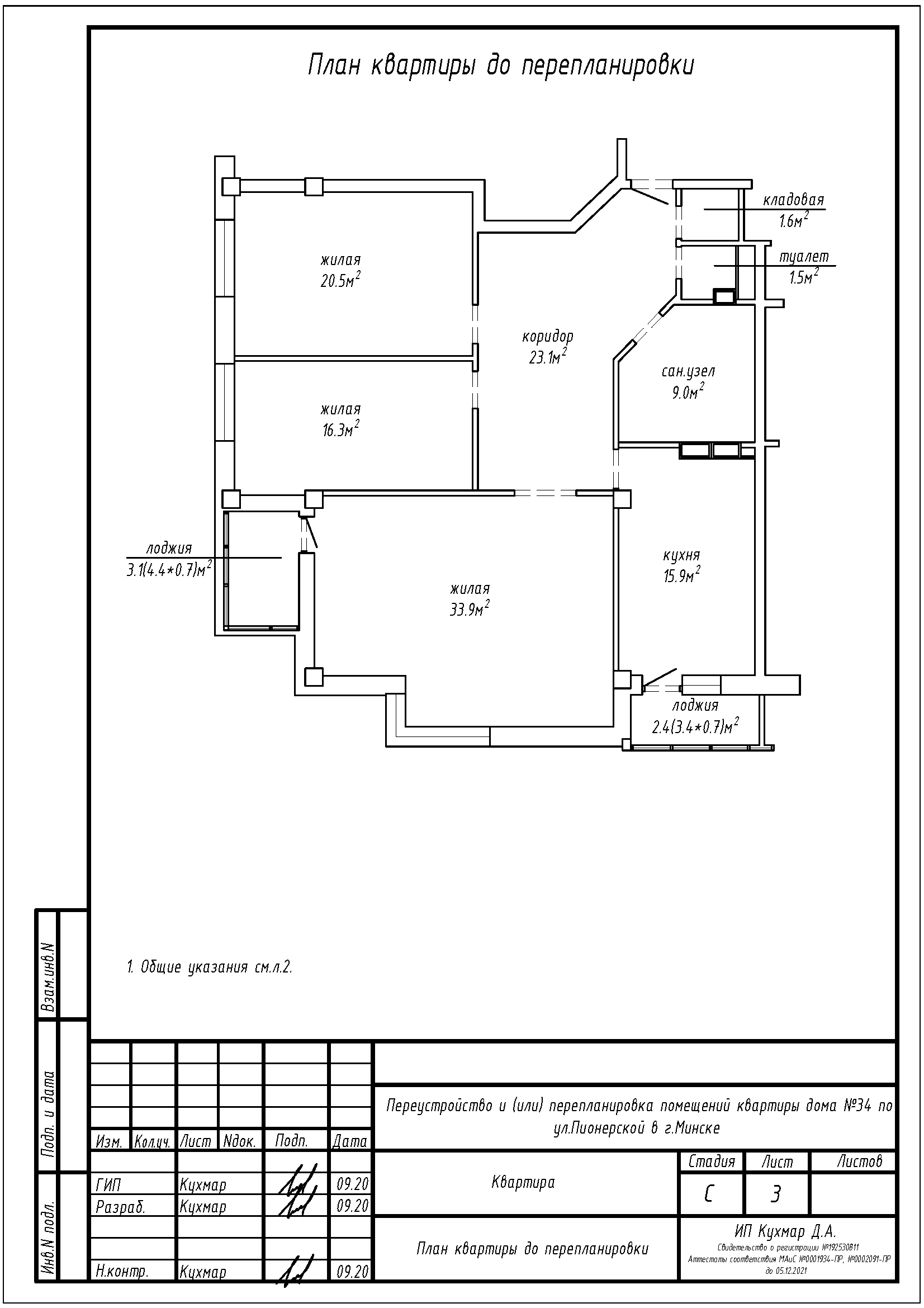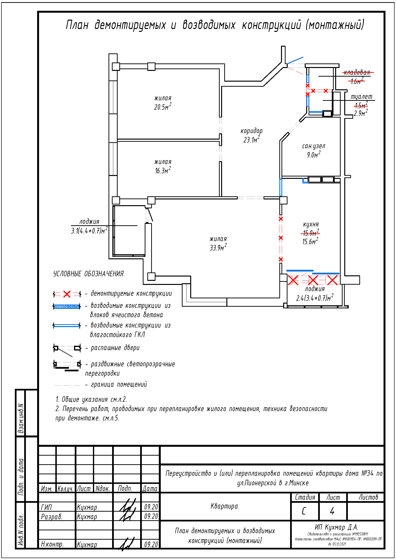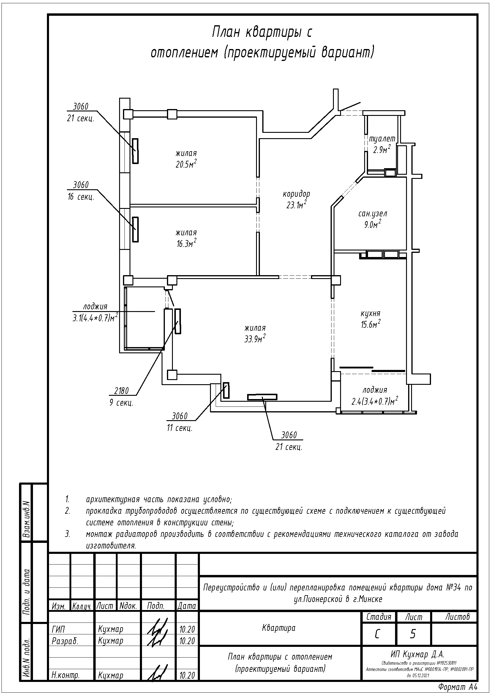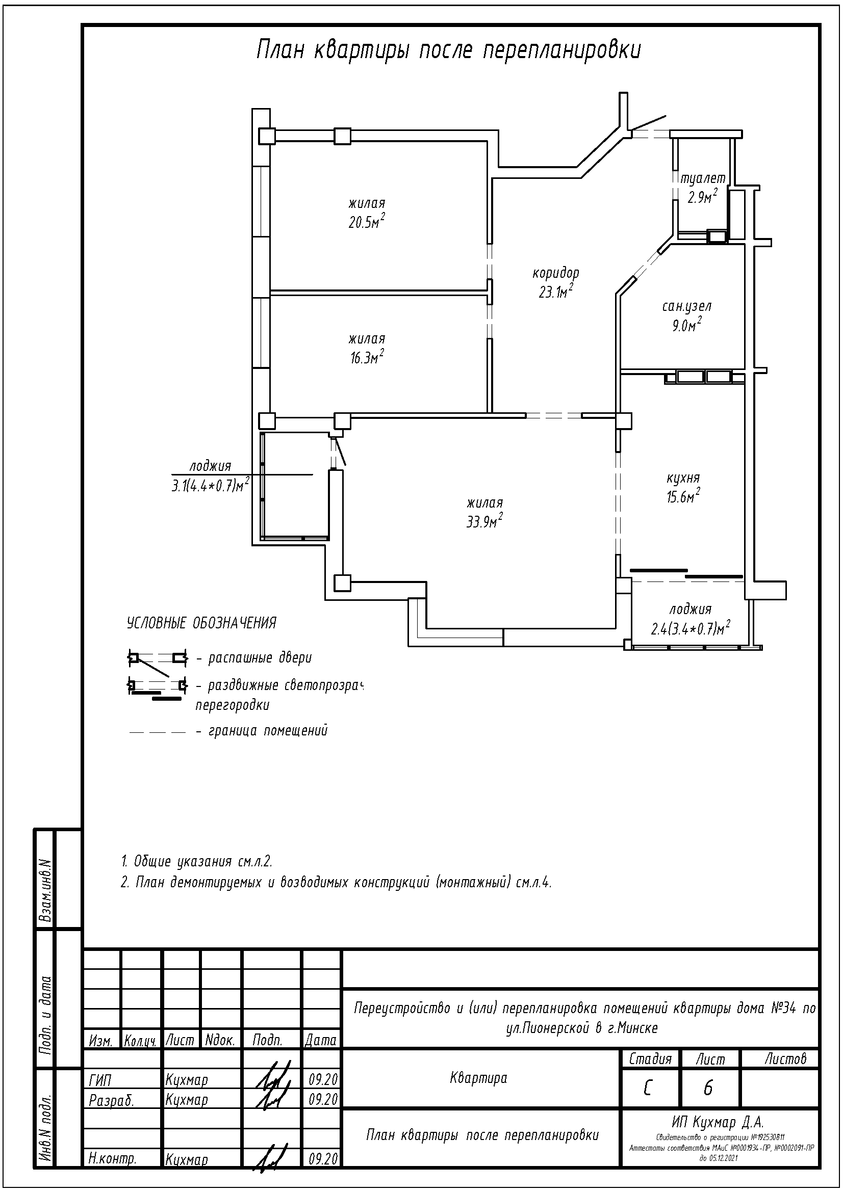 Перепланировка квартиры по ул. Пионерская, 34 в г. Минске